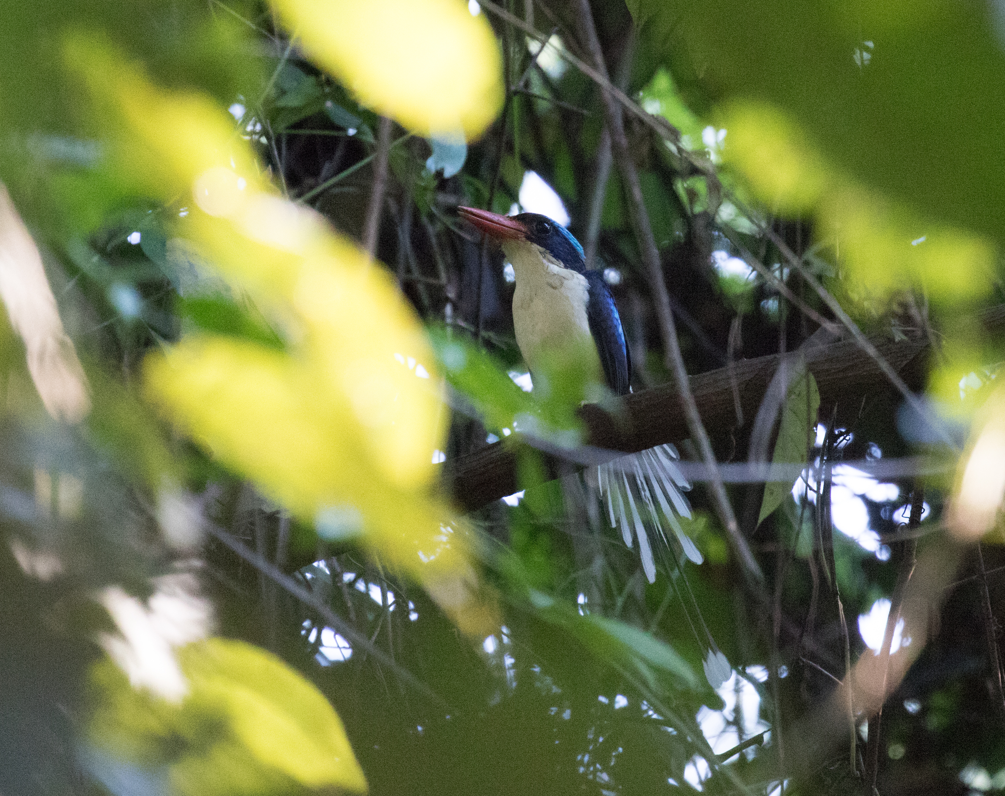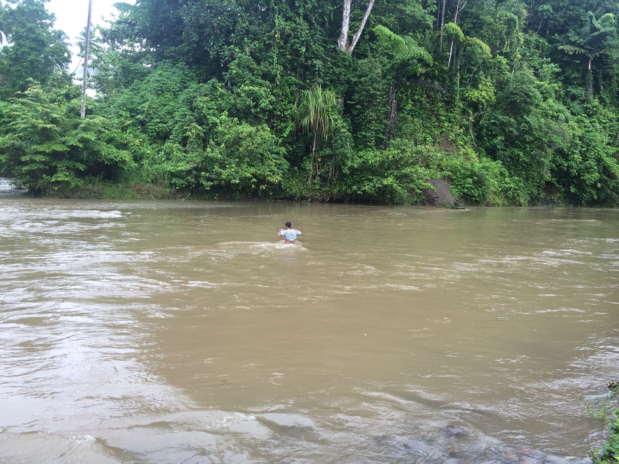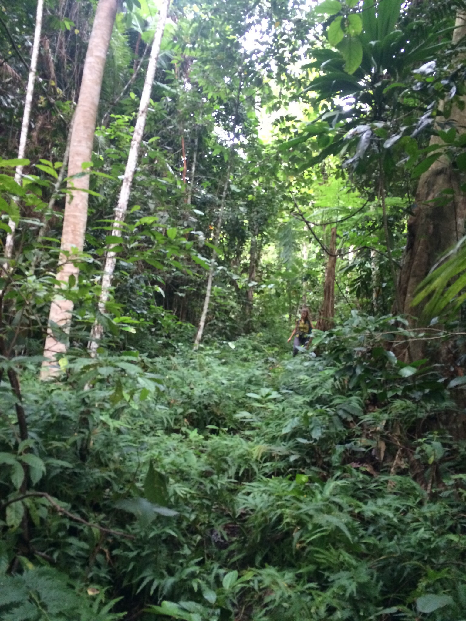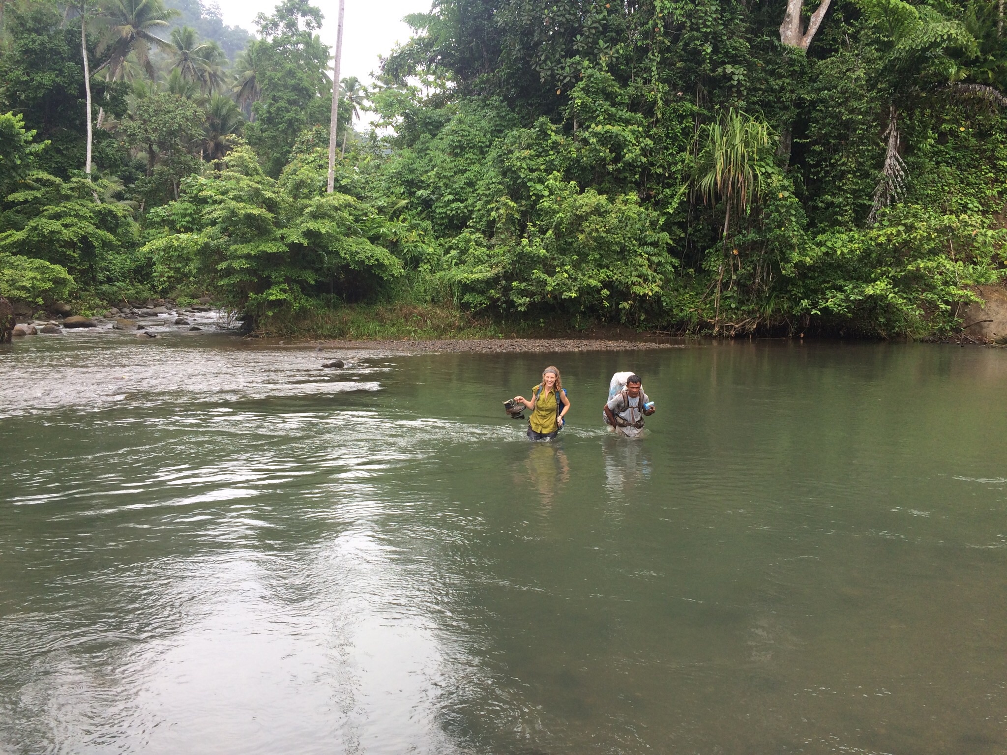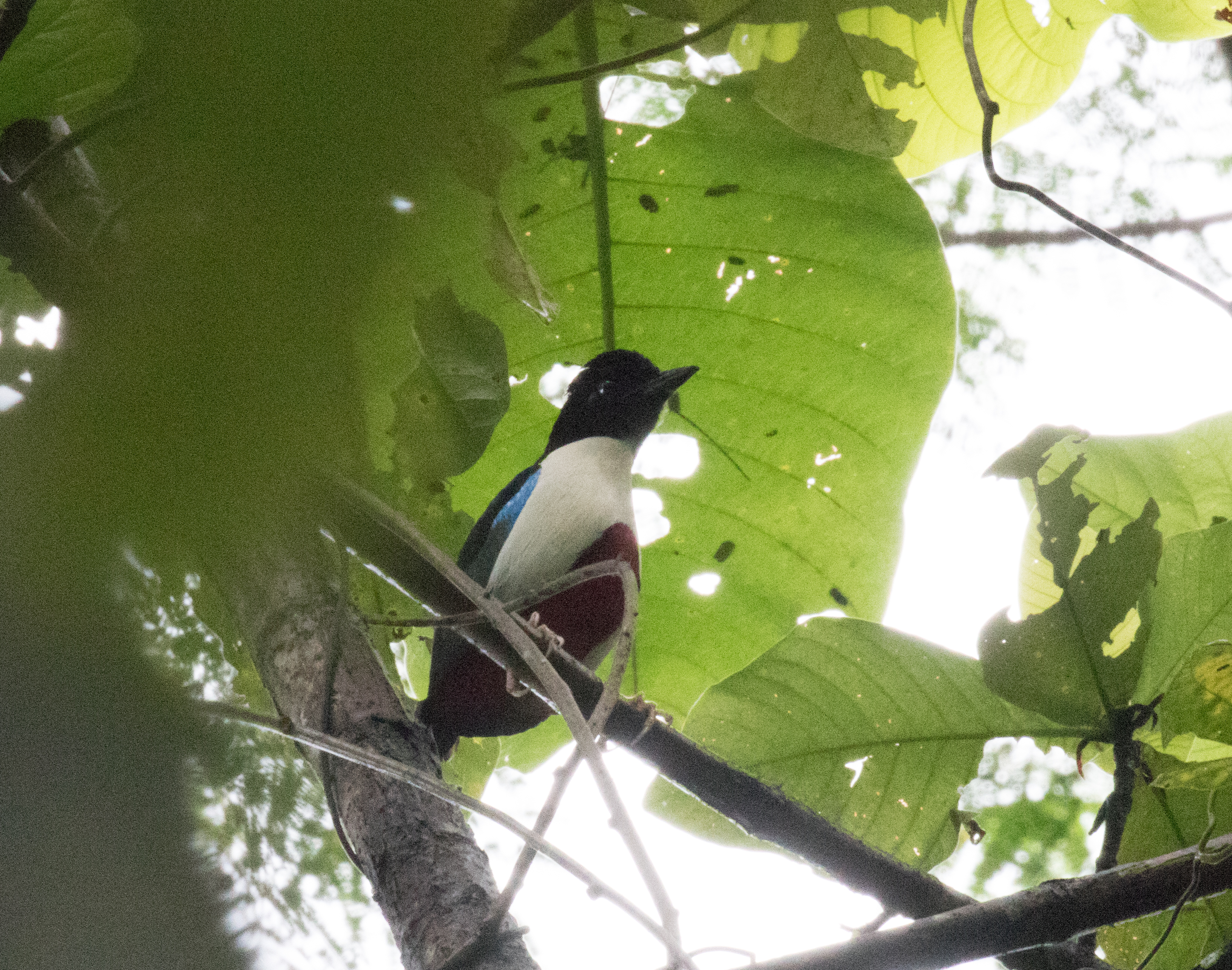 Apparently there had been quite a bit of rain because the river we were to be crossing was up and rising. The current looked strong and we questioned whether it was even doable. Thankfully it was, despite having to wade chest-deep through a really strong current. We crossed the river and hoped that we would begin to really ascend and not have to come back down again. Over the course of our hike up we did still manage a few birds despite the rain. We were happy that we stopped for the “Morotai” Ivory-breasted Pitta that was calling on the way up because it proved to not only be the only one we saw, but the only bird we heard on the entire walk up AND down, a bird that we thought would be commonly singing throughout the jungle. Perhaps it was the inadequate weather keeping them silent. By the time we finally reached the campsite at our goal of 500m elevation, it was 1200 and we were starving. Although the final report would say we reached 500m in elevation, it doesn’t actually show that we gained more like 900m over a distance of 13.7km, aka 8.5 miles!