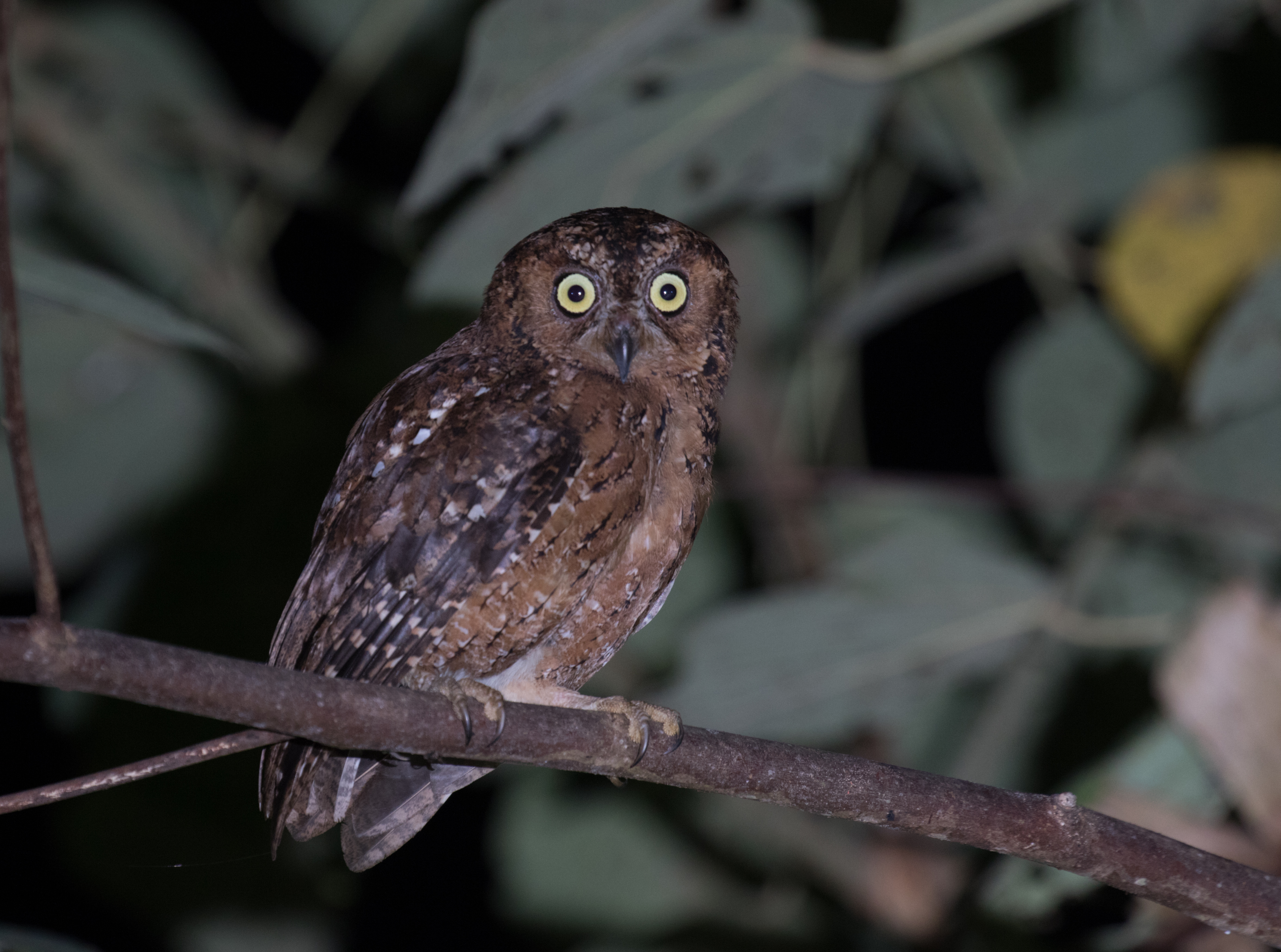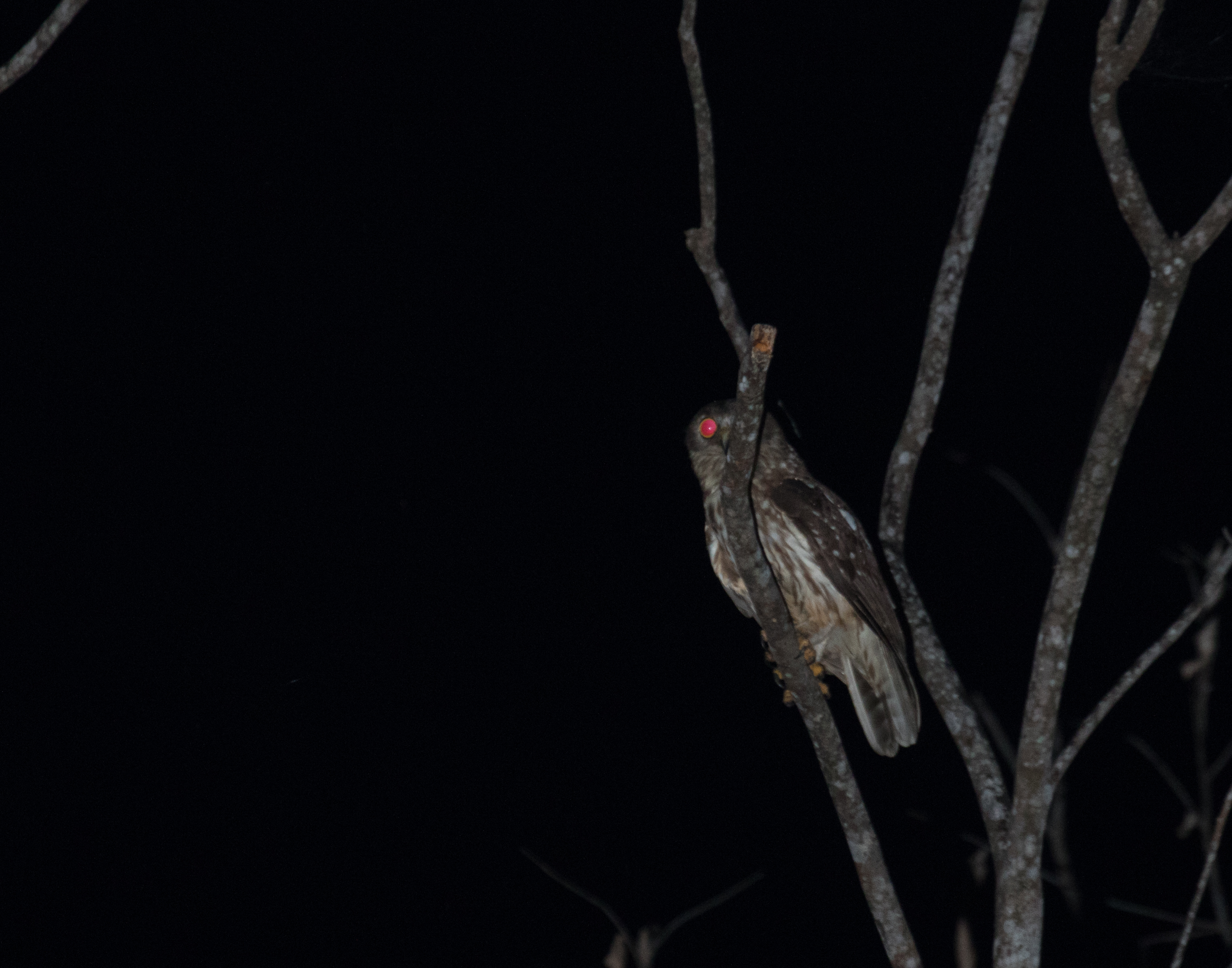 We headed back to camp and enjoyed a lovely dinner of white rice and ramen noodles. Eating healthy for sure! We decided to finish off the night with a little bit of owling and had excellent views of two Barking Owls perched in a tree (although, the photos were a bit subpar!). The Moluccan Scops-owl subspecies remained a heard-only for the night. We were exhausted when we finally went to bed that night since in total we had walked over 20km for the day with elevation gains of over 1000m. Definitely a bit more than we bargained for. We set up our trusty tent and had a few funny looks from our guides as they likely wondered why we needed such a monstrosity. They slept on nothing more than a bed of leaves under a tarp. I assume they thought we were “soft” Americans and have no idea how to “rough it”. I definitely didn’t show them the blow-up air mattress and sleeping bag that I had brought along with me to make my sleep more enjoyable. I slept like a baby while our guides were up half the night from the cold and had to build a fire. Nothing they weren’t used to doing before I’m sure. Ross woke up well before dawn determined to see and photograph that darn scops-owl so he could continue to say he hadn’t dipped a subspecies of it yet. Determination paid off and just before dawn he had a very responsive Moluccan Scops-owl, complete with pictures, sitting in a tree.