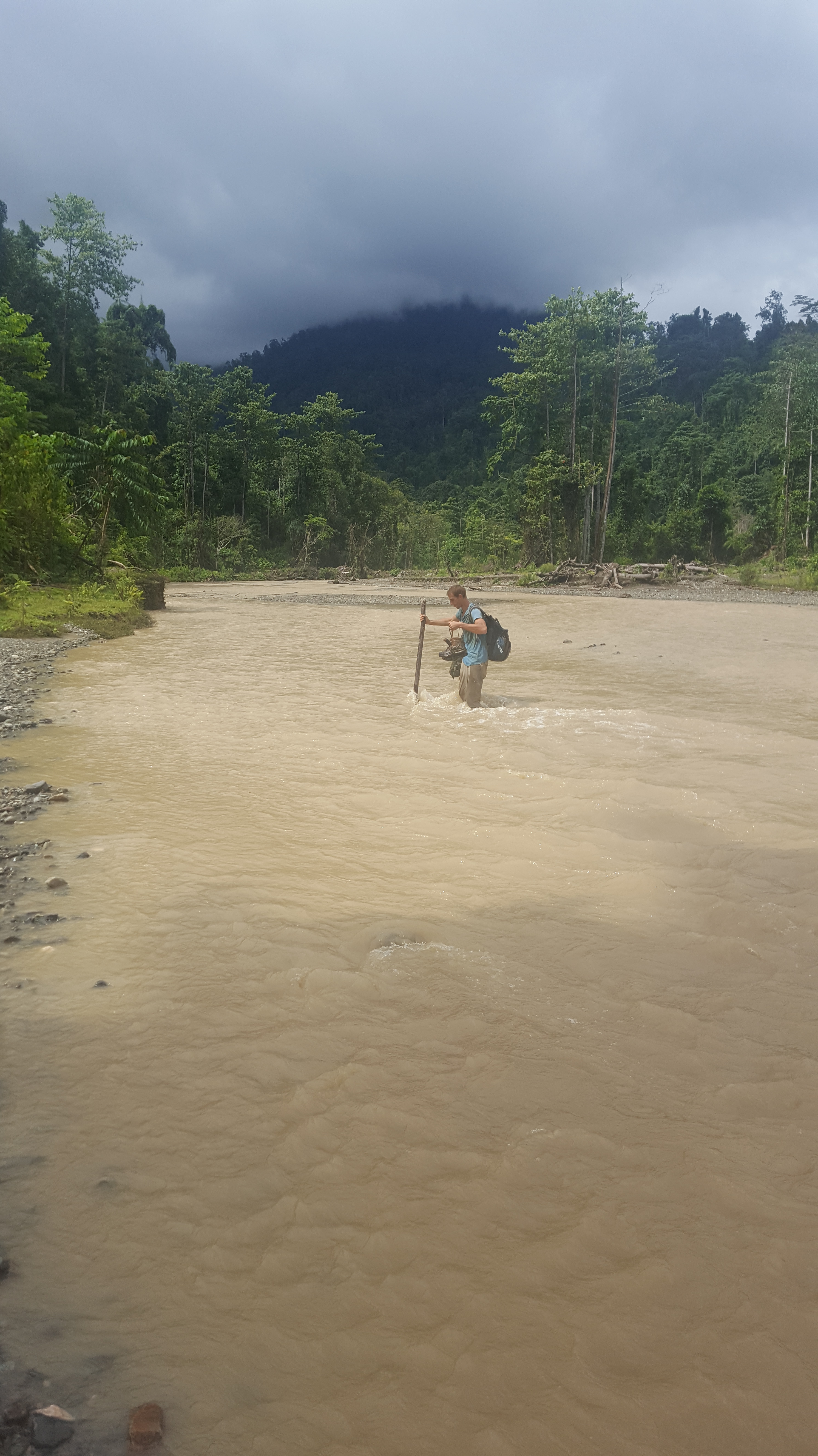 To get back to where we were the day before as we were planning required us traversing a river three times. We’d done it the day before and were planning to do it again but when we came to the second river crossing the current was still so strong from flooding the day before. We did make it across but not without some serious resistance. Ross had to go across and then come back and act as a support so I could even wade through it. Once we were on the other side we learned that what was a road the day we walked up, was now part of the river. Not cool. We decided again that going up was going to be too risky, especially if we were go to up the mountain and it rain more, we wouldn’t be able to get back across the river so we stayed down below. We at least were in the right area to finally try for those woodcocks we’d been trying to see since we got to Obi. We waited for sunrise and just before first light we heard our first Moluccan Woodcock call. Unfortunately we never managed to see one!! They were close but apparently not close enough. We crossed back over the river and birded the lower elevations.
