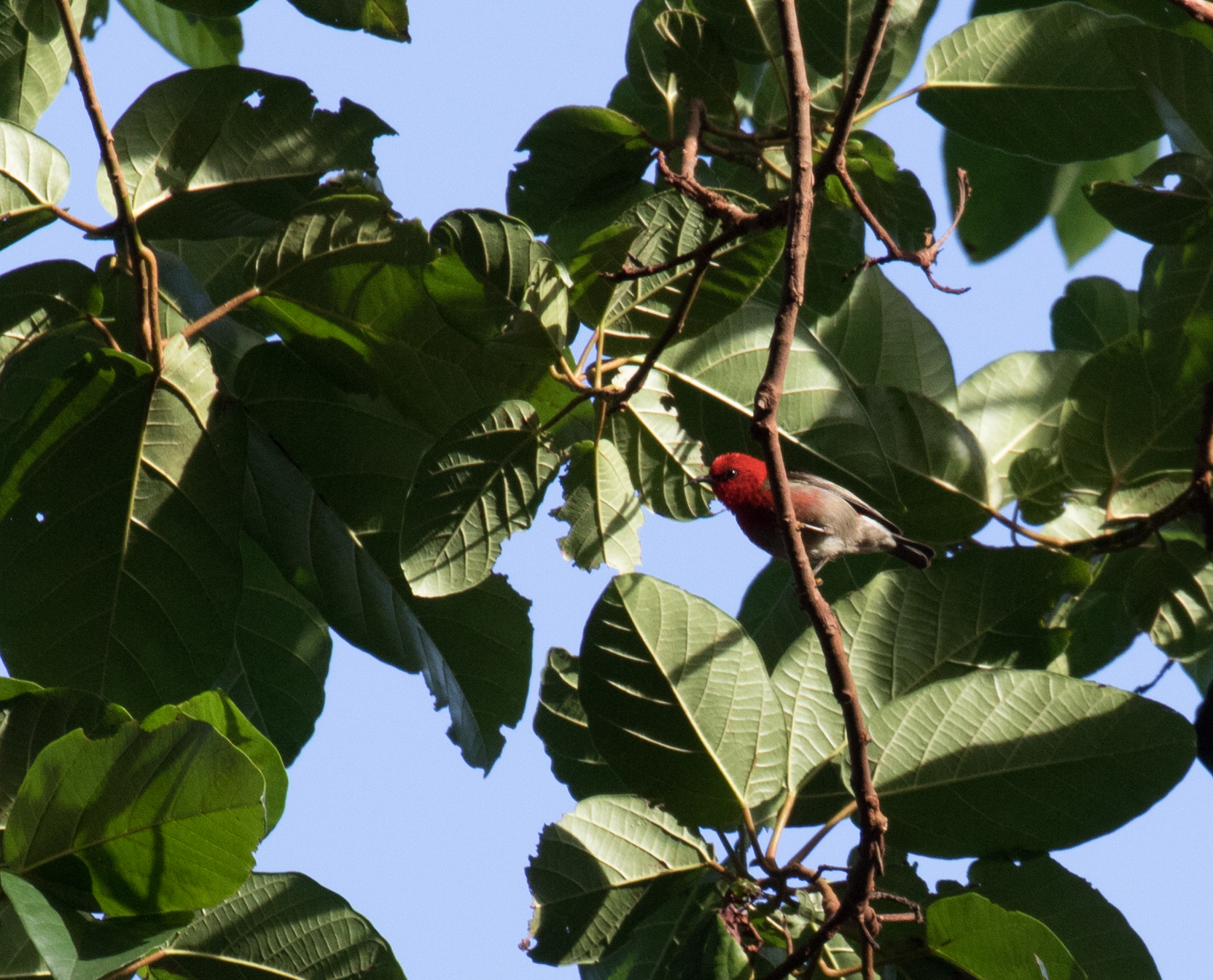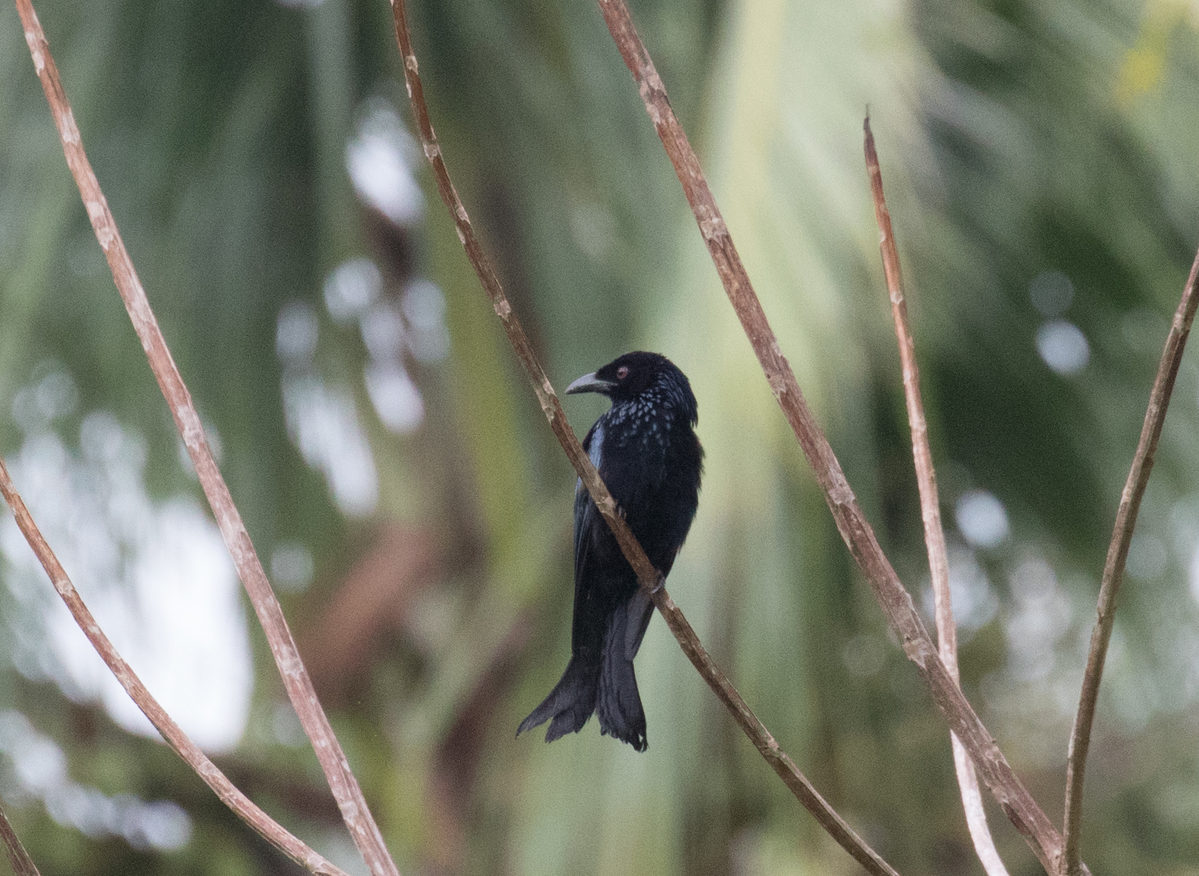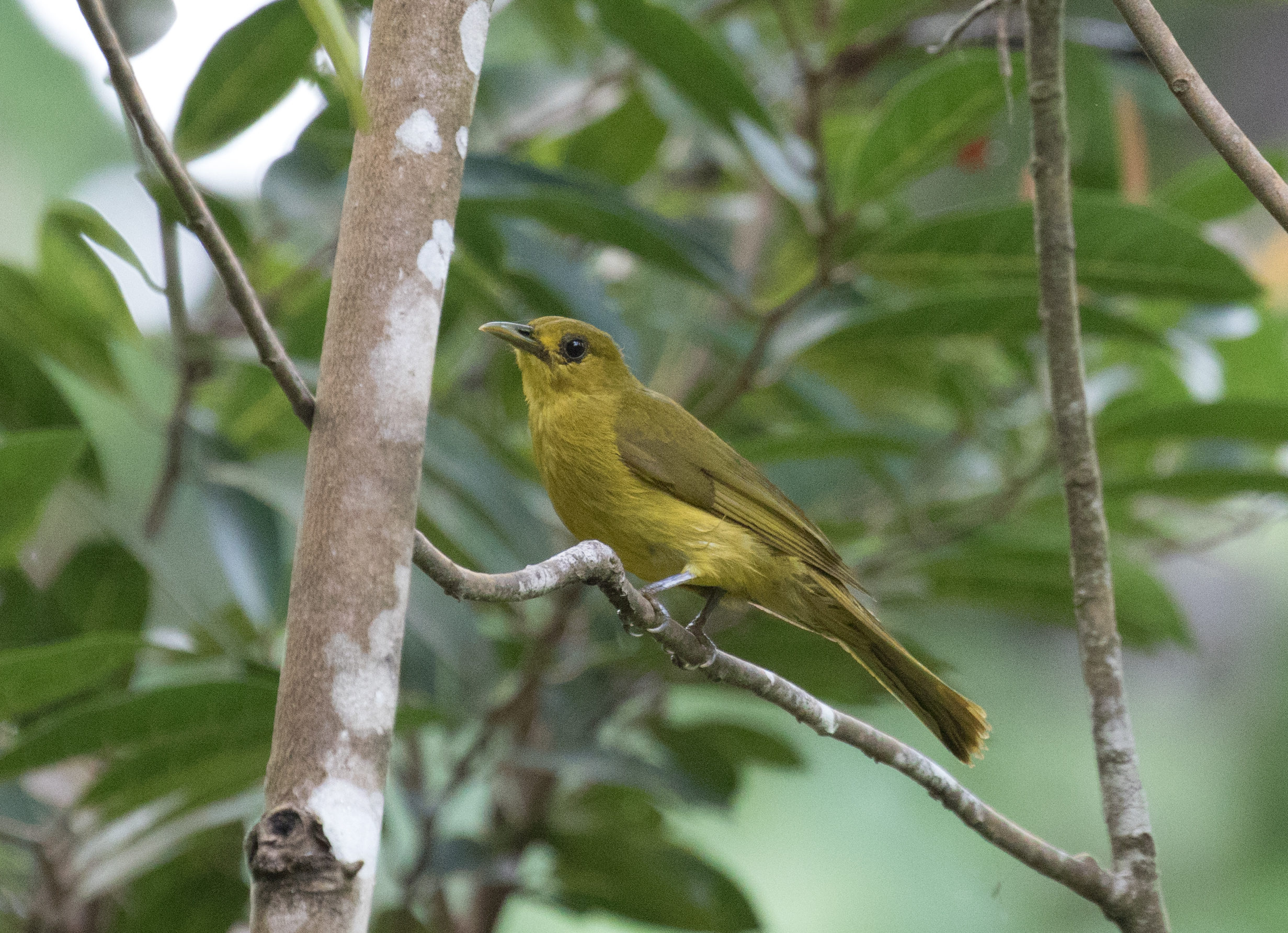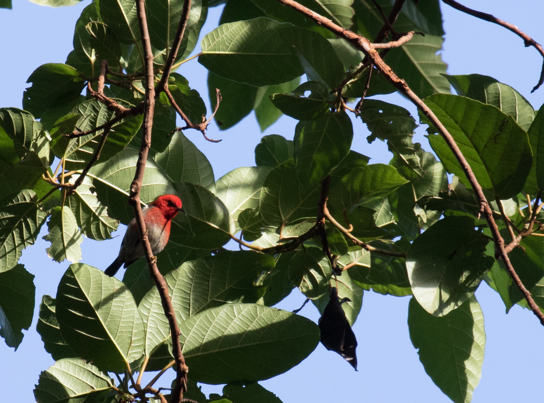 The next morning we headed to that area, but not without a little bit of a headache. People of Indonesia, while extremely nice, can agree to things they may not have any intentions on doing just to make you happy. Such was the case with the motorbike driver who told Ross he would pick us up at 4am and take us back to where he took Ross to scout the day prior. We gave him the benefit of the doubt at first as it was raining at 4am, but soon 5am rolled around and he was a no show. It was a mess. We didn’t actually find two motorbikes until 5:30am. (Word of advice for anyone planning to visit Obi, coordinate your motorbikes through the homestay as they are at least reliable.) We were up to 200m elevation when the motorbike I was on stopped working and Ross and I agreed to walk. We continued up the road following along with where we were on the topographical map but never knowing if the road would zig when we wanted it to zag. We made it as high as 400m elevation before topping off. The morning was unusually quiet and we didn’t hear any of our three main targets but did have views of Obi Paradise Crow, Scaled Lory, and Ross’s third (and my first) Obi Myzomela of the trip, a bird that is supposed to be rather difficult to find on Obi, certainly known to be trickier than the other three high-elevation species we were looking for. There was a Y in the road so we decided to hike back down and see if going the other way would take us up to the other mountain in the area. We walked for a ways up the valley before deciding it was just too far to go before we would even begin climbing in elevation again. We didn’t have the time to walk across the valley, up a mountain, do some birding and get back before the afternoon downpour that we’d come to expect so we started to walk back out. I had just finished complaining to Ross that I was going to dip Carunculated Fruit-dove when we flushed a dove out of a tree and into a nearby one. Unfortunately it was just a Black-naped Fruit-Dove, and not the one I was looking for. But thanks to it flushing we decided to spend some time in the area and before long noticed that a different tree in the back looked like it was fruiting and might have a few visitors. We walked up close and there it was, a Carunculated Fruit-dove with its namesake orange fleshy knobs at the base of the bill easily visible as the bird perched right in the open for us to see! We heard a few little calls but Ross was under the impression that the species was mute based on some of the information he had, so he had moved on to focus on photographing the silly-looking birds. I wasn’t convinced the species was mute so I was setting up the recording gear when I heard Ross tell me to bring him the stuff. Lucky for him it was already set up. He managed a few top-notch recordings of the low-pitched purr/growl they were making and a few photos when we decided to get a ride on the next available vehicle out. That vehicle turned out to be a large truck transporting coconuts. It got the job done and we made it back to the hotel just as the rain started. It really wasn’t raining like it had the past few days, but we were a bit annoyed so we opted to stay in and catch up on some rest.