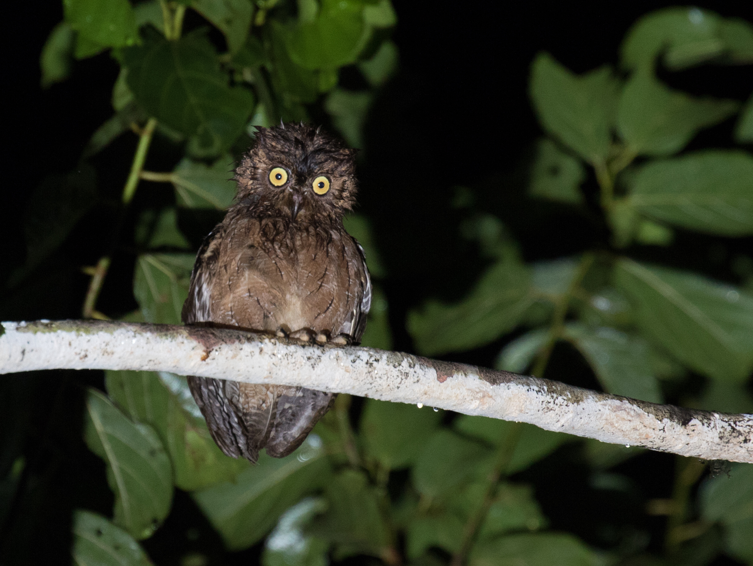 The morning wasn’t as productive as we would have liked and it seemed to quiet up early but we still managed a few goodies including Rufous-necked Sparrowhawk and North Moluccan Pitta. Then, as rain was approaching, we headed back to the homestay and hung there for the next SIX HOURS as we watched the rain come even harder than the day before and again watched as the river rose and flooded the area. Great, we were hoping to go up to higher elevation the next day but now the super strong current wouldn’t have receded. Ross and I were hanging out at the water plant when we heard the distinct call of a Moluccan Woodcock. It sounded close. Don’t you know that little bird flew directly over where we were sitting. We had great looks and were able to explain to the people there that this bird is only found here on Obi. They of course told us they hear it every night at 7pm. We showed them pictures in the book and I think they were very appreciative of this new knowledge. That night we finally managed to get out and try for the obi subspecies of Moluccan Scops-Owl. Ross was continuing on his quest to get a photo of every subspecies of this bird and I was finally going out to see one, something I hadn’t done up until this point (oops). We walked up only about 200 meters from where we were staying and despite a slight drizzle had a Moluccan Scops-Owl respond to playback and sit overhead. He was sopping wet but so absolutely adorable as he called back to us and posed for a photo. Before we went out we were sure to tell everyone we were going to go out and look for the “Buru Hantu”, the Indonesian word for owl. We went back to the homestay to show everyone a photo so they could put a face to the name of their Buru Hantu. Ross said “is this the face you want to show them, the bird is soaking wet.” I simply responded, “I don’t think there’s any better photo of this owl than that.” Naturally they loved it.