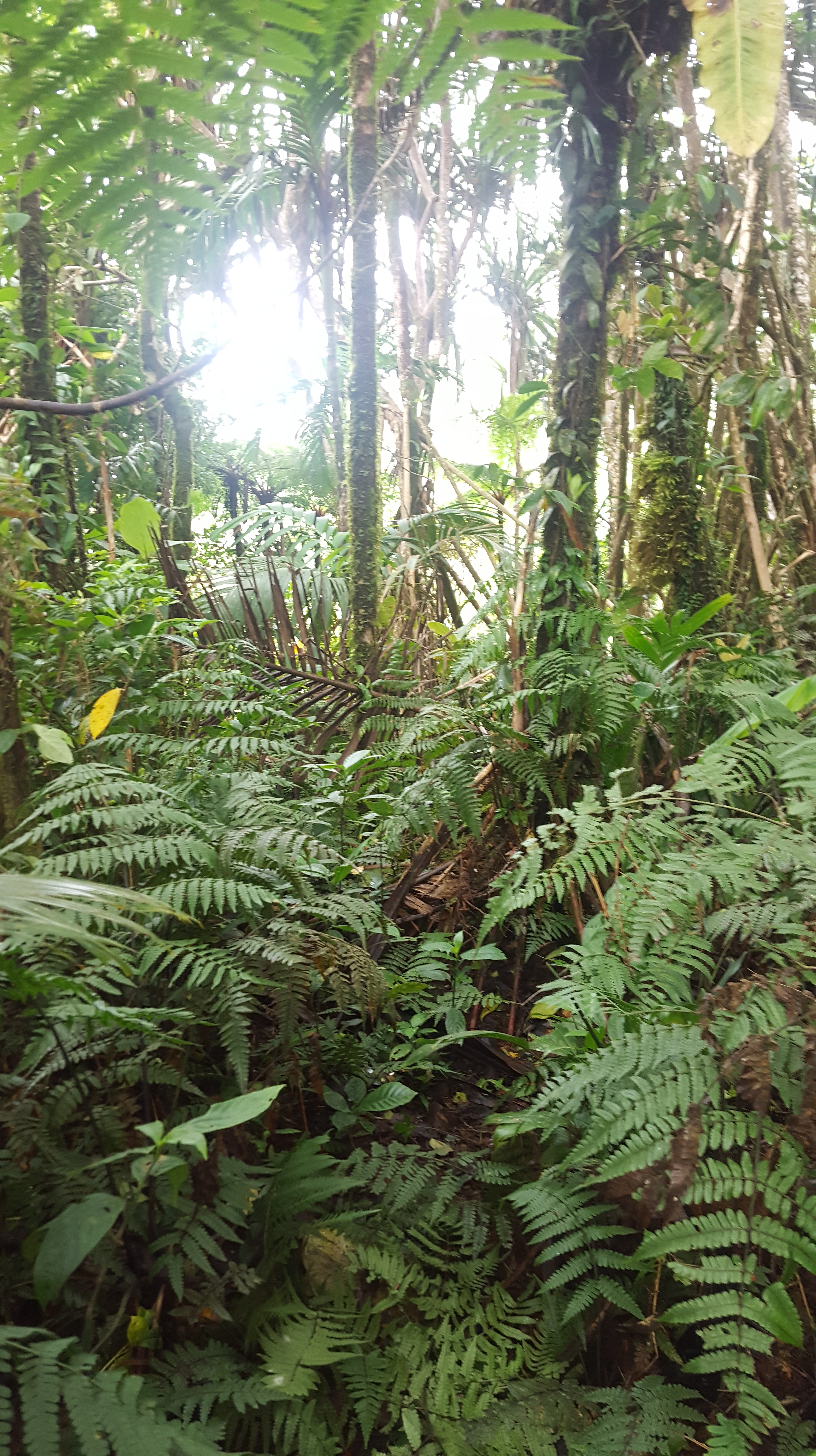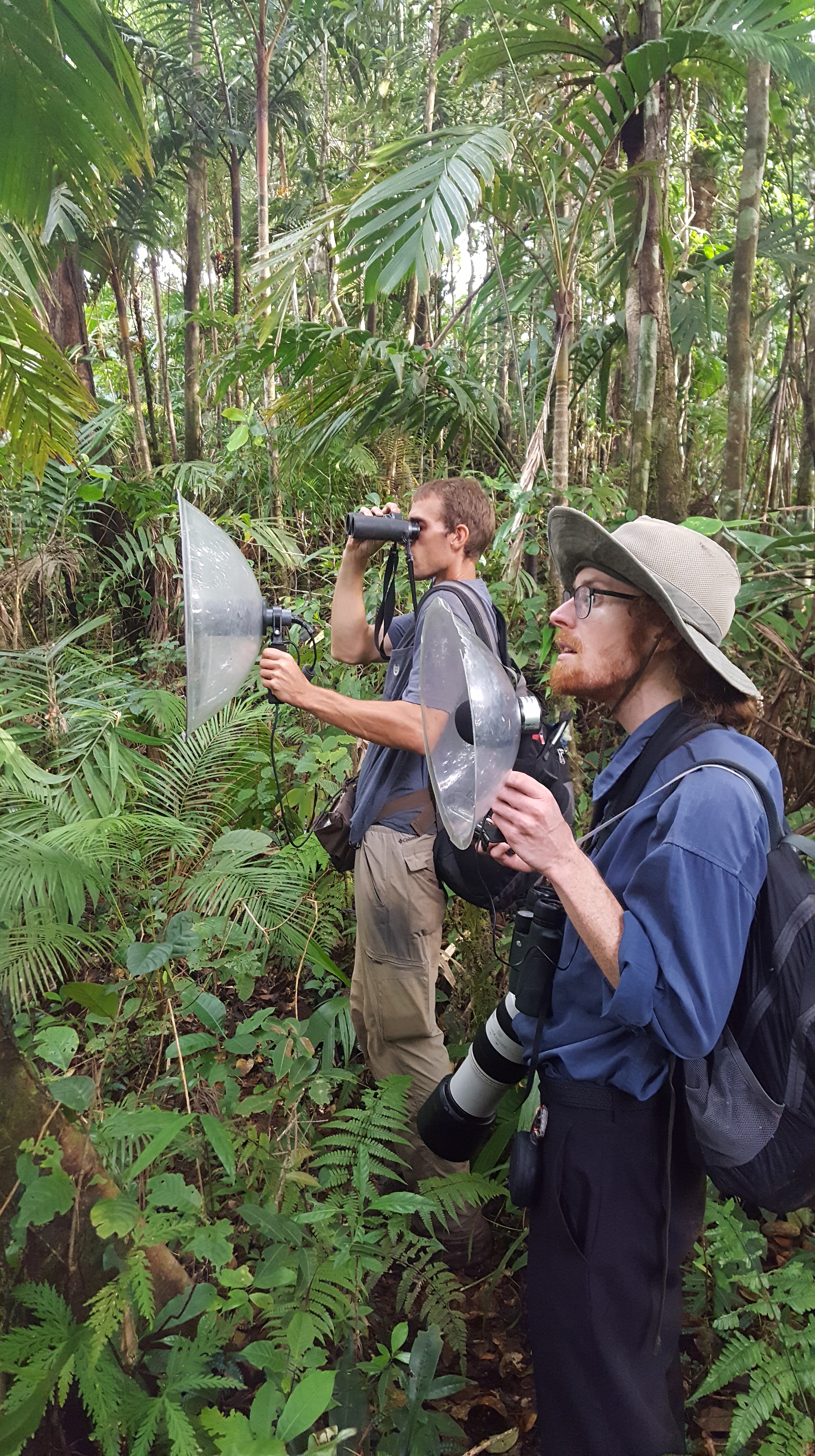 We arrived at Wesley’s house at 0600 and quickly packed a lunch so we could get on the trail early and possibly see some of our targets. Per several trip reports, the trail up the mountain is slippery limestone but the first part of the trail gave us no issues at all and in just an hour’s time we had climbed ~300m in elevation and arrived at the “Garden House” a small house/shack structure built as a stopping point while enroute up the mountain. Our first target of the morning was the critically endangered Cerulean Paradise Flycatcher, with only 60-100 birds remaining of the species. Getting to the garden house may have been easy, but it became more difficult from there when we took a precarious path down to the valley as these birds like to live along the mountain stream’s edge. It was tricky to navigate but the location wasn’t far and we soon were treated to views of two Cerulean Paradise Flycatchers high in the tree! Unfortunately we were near a stream so recording the birds was pointless. The birds quickly moved on but Ross and Michael followed and again were treated to even better views along a section of forest with minimal river noise so Ross was able to snag a really great recording of this extremely vulnerable species. We began the walk back and had nice views of Elegant Sunbird, Sangihe Hanging Parrots perched in a tree, Hooded Pitta, and Sangihe Lilac Kingfisher. We had several hanging parrots flyby earlier and considered ourselves quite lucky to have decent sightings of this tricky endemic. We quickly returned back to the “Garden House” after our 1.4km detour and started on the hike up the mountain. Perhaps this is the section of the hike that the trip reports were referring to when they said “slippery.” Slippery was an understatement, but not of limestone rock like we were expecting, and instead just a steep, narrow path of mud up to the ridge. I’ve never seen Ross, who wants to be able to see something at a moments notice, have to put his binoculars in his bag because they were getting in his way and making it hard to climb up. That’s how slippery this mud was.