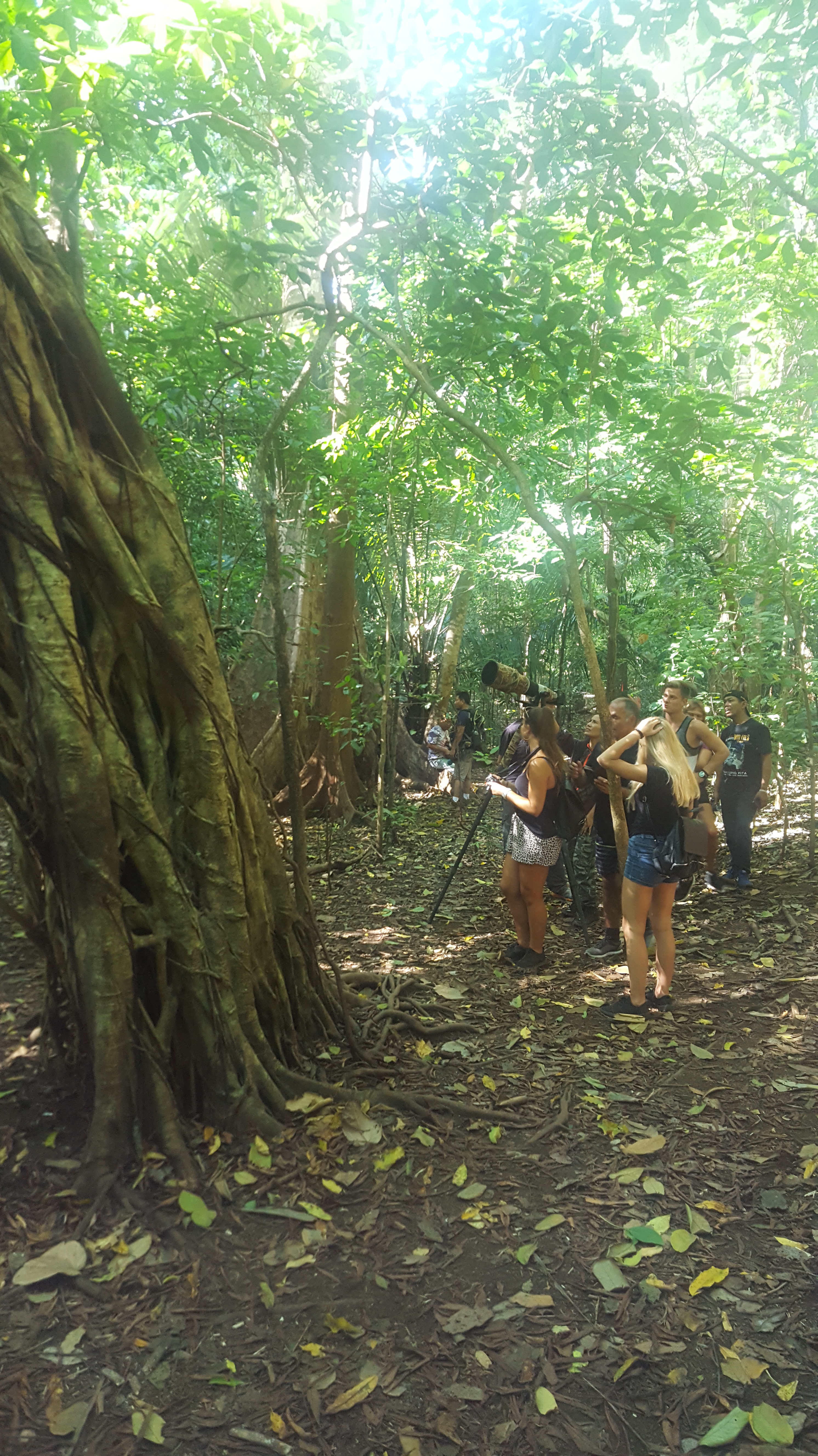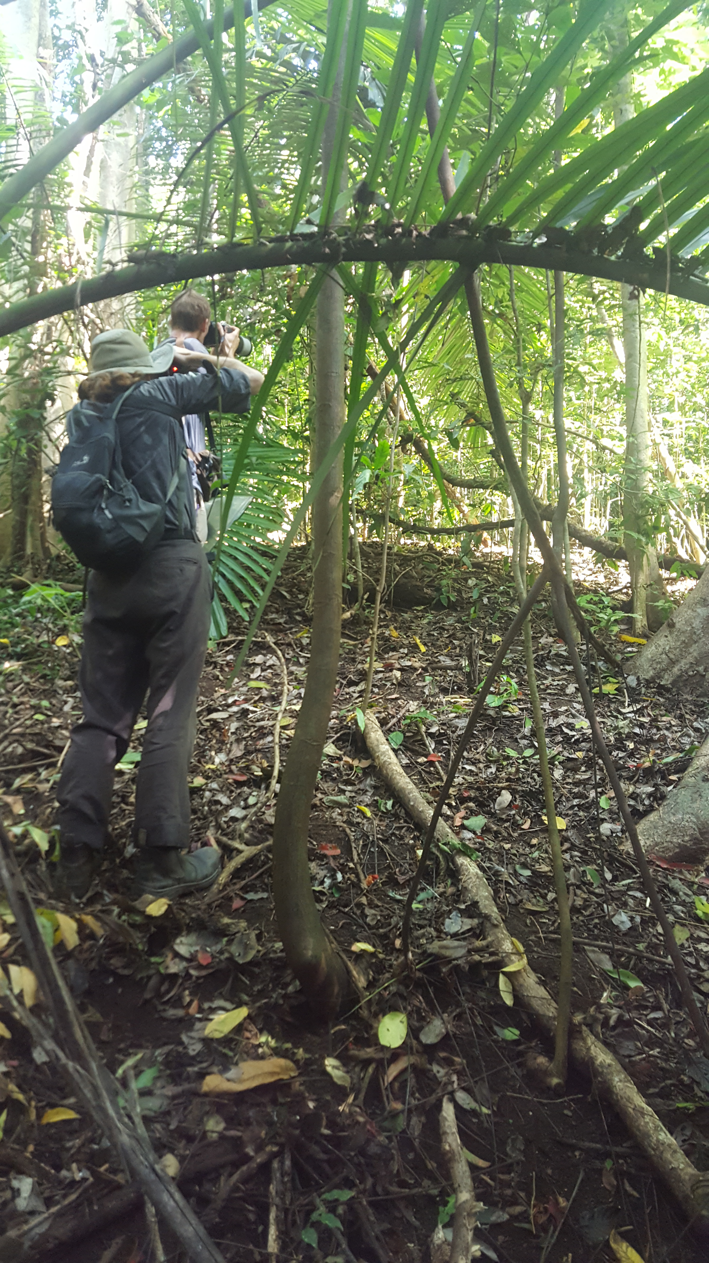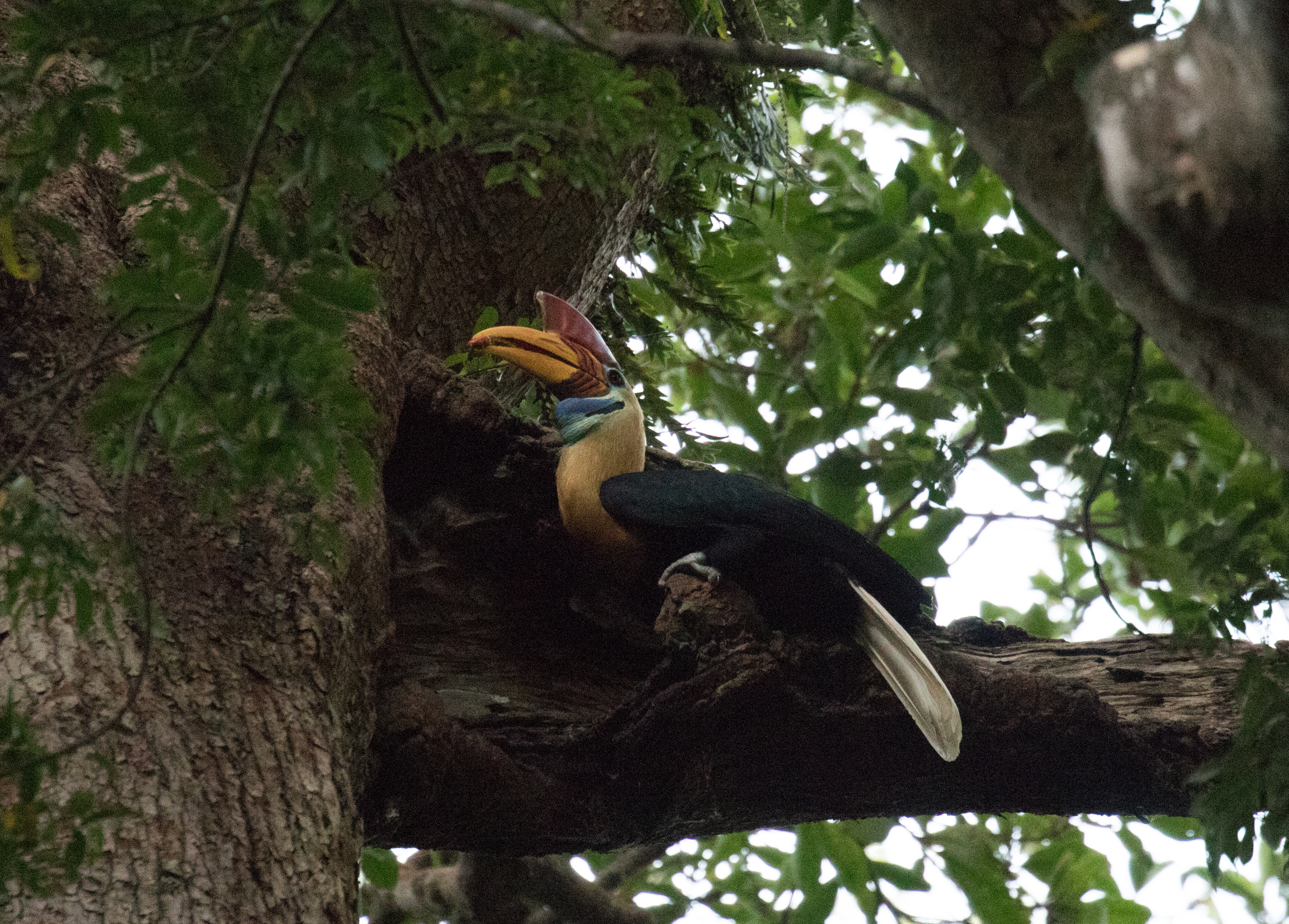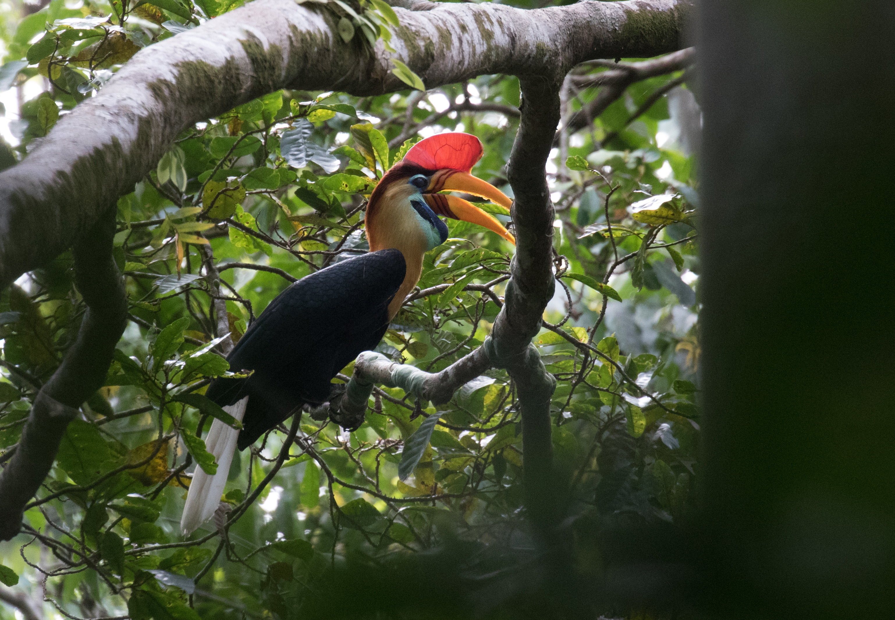 If only we had birded with Julien that day, because while they were hanging out around the Knobbed Hornbill nest, an area we were very familiar with, one simply came to them! So not fair but at least we knew where to look the next day! That night we tried again for Minahasa Masked-Owl and, as had become custom, failed. Julien and Samuel however had success in finding a Minahasa Masked-Owl, and although we were already back in our homestay we quickly got back out to the trail when we received Julien’s Facebook message that they had the bird! We passed them on the trail and Julien gave us directions while Samuel shared his recording of Sulawesi Dwarf Kingfisher when he learned of our mishap at Mama Roo’s. Turns out the spot they had the owl was much further into the forest than we had been up until this point. I went back to the homestay knowing I needed sleep if I was going to go birding the next day while Ross and Michael hiked up in the dark. Ross returned around 2AM and informed me that Michael decided he would just sleep up there on the ground under a tree. Ross and I woke up at 4AM to head back to try again for this owl. It wasn’t exactly close and each time we went to this spot we would have to hike nearly an hour! Surely after 5 tries we could find it right? Wrong. We heard the owl super close but never got on it. At this point we were very familiar with the ins and outs of the trails at Tangkoko and decided we would hang out up at a spot known as “the hornbill’s nest” and hope we might come across an accipiter or run into that dwarf-kingfisher that we know was seen in the area just the day prior. Guides were bringing tourists up to the hornbill nest so they could watch as the colorfully adorned male Knobbed Hornbill would come to feed the female who had locked herself up in a cavity of the tree until their eggs hatch. The guides all knew what we were looking for and at one point mid-morning after Ross, Michael and I had split up to cover more ground when a guide came up to Ross saying they had found a Sulawesi Dwarf Kingfisher! Unfortunately they know how to play the game with tourists and refused to take us until we paid them 400,000 Rp! Yes, it’s a lot but we were desperate. I think there comes a time after you’ve dedicated so much time to finding a single bird that really you’ll do anything to just tick it off and be done with it. That’s basically what happened. Although we wanted to tell him “don’t you want to do it out of the kindness of your heart, you already have a tour group over there that is paying you??” we were pressed for time and wanted to be sure we saw the kingfisher before it flew off so we….. agreed. The guide showed us to a nearby gully, one we didn’t immediately recognize and there we saw it, the small bird with big colors, Sulawesi Dwarf Kingfisher! Finally.