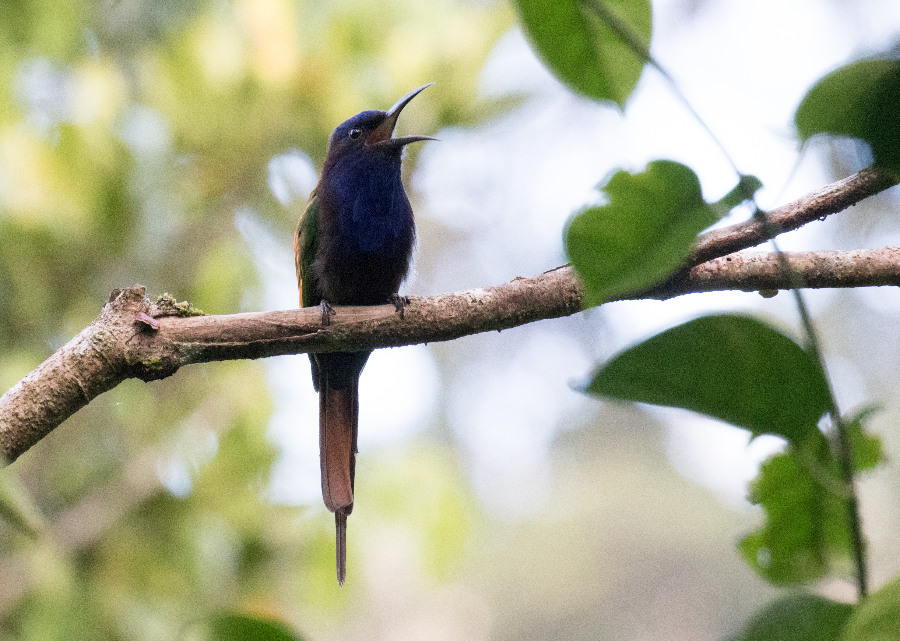 Our next destination is known among birders as Gunung Ambang and we made our way to “Julius’s Homestay” where Julius knows the birds of the forest and often acts as a guide to the trails for visiting birders. We made it to town for only 15,000 Rp via public bemo and found that Julius wasn’t home, but truthfully the trails were straight forward and Ross, who likes to do things entirely himself, was happy to not have the extra company. We dropped our bags at the homestay and spent the afternoon getting a feel for the area. We quickly picked up Purple-bearded Bee-eater and Red-eared Fruit-Dove while walking the trail and just before dark Michael and Ross managed to get great views of a Scaly-breasted Kingfisher while I stayed behind to read my book (luckily I had seen that one at Mahawu!). That night we stayed until after dark to try for Cinnabar Boobook but no such luck. We did have great looks at a Sulawesi Masked-Owl which was seen flying through the fields on the walk down and had another one perch on a snag providing nice views. We were fed a delicious meal by the ladies of the homestay and were off to sleep!