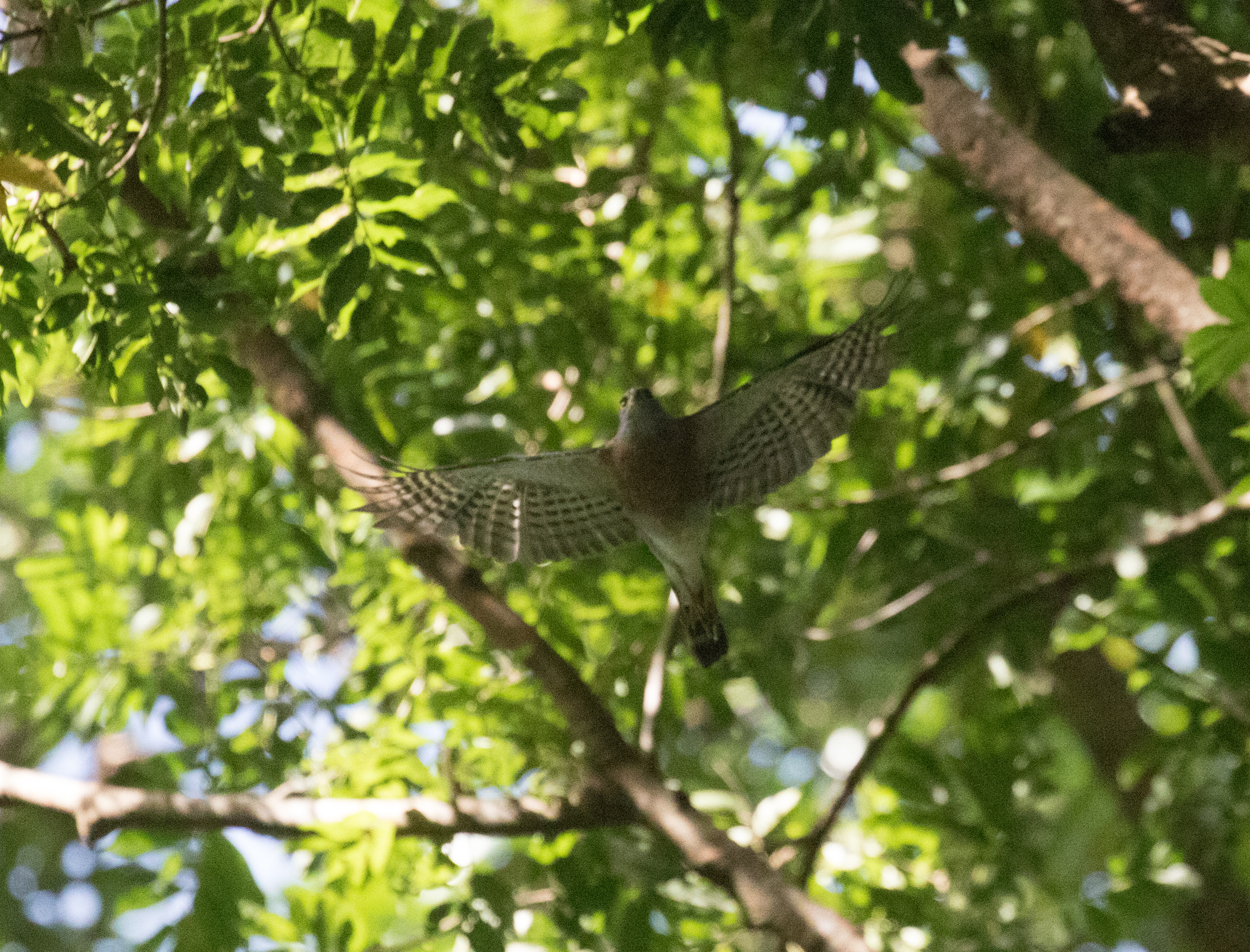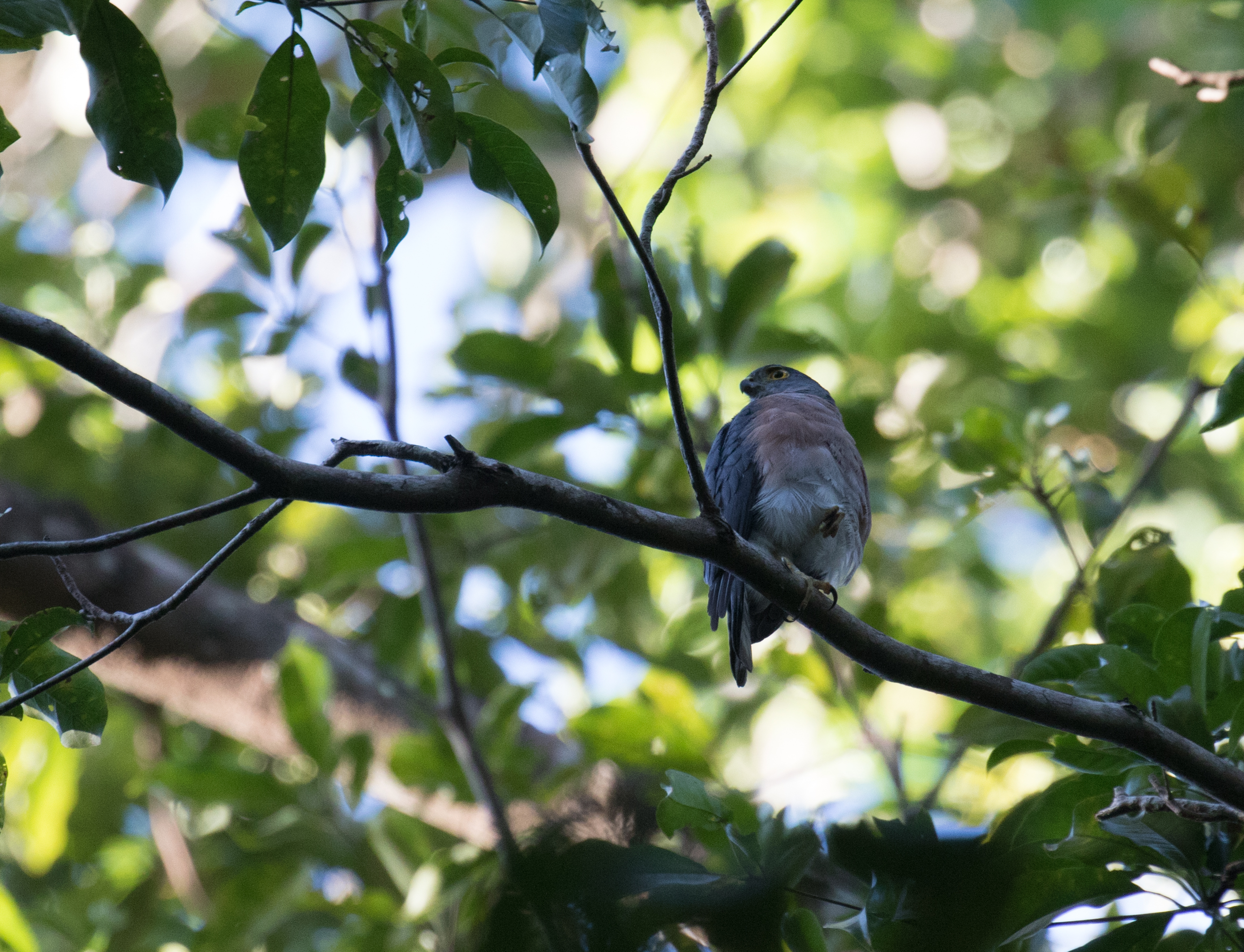 We didn’t have many possible targets in the area but knew that a sparrowhawk was recently seen in the area when Samual identified a raptor that he and Julien saw as a Small Sparrowhawk, so we stuck around until mid-afternoon to see what the morning would have in store. We did come across a sparrowhawk, but were unsure of what species it was given that the book description was contradicting with the drawing depiction and the sound description wasn’t quite matching up either. We figured it was the same bird that Samual had called a Small but Ross really wasn’t convinced, mainly because of the sound description. Ross managed audio recordings as well as a photo of the bird perched and in flight and planned to ask people who are more familiar with the species. (Update: BirdForum users (i.e. James Eaton) have concluded that the bird we had was Vinous-breasted Sparrowhawk! If only there were information made pubic so that we could have nailed this ID ourselves…) We went back to town by 10am to catch up with some much-needed sleep.