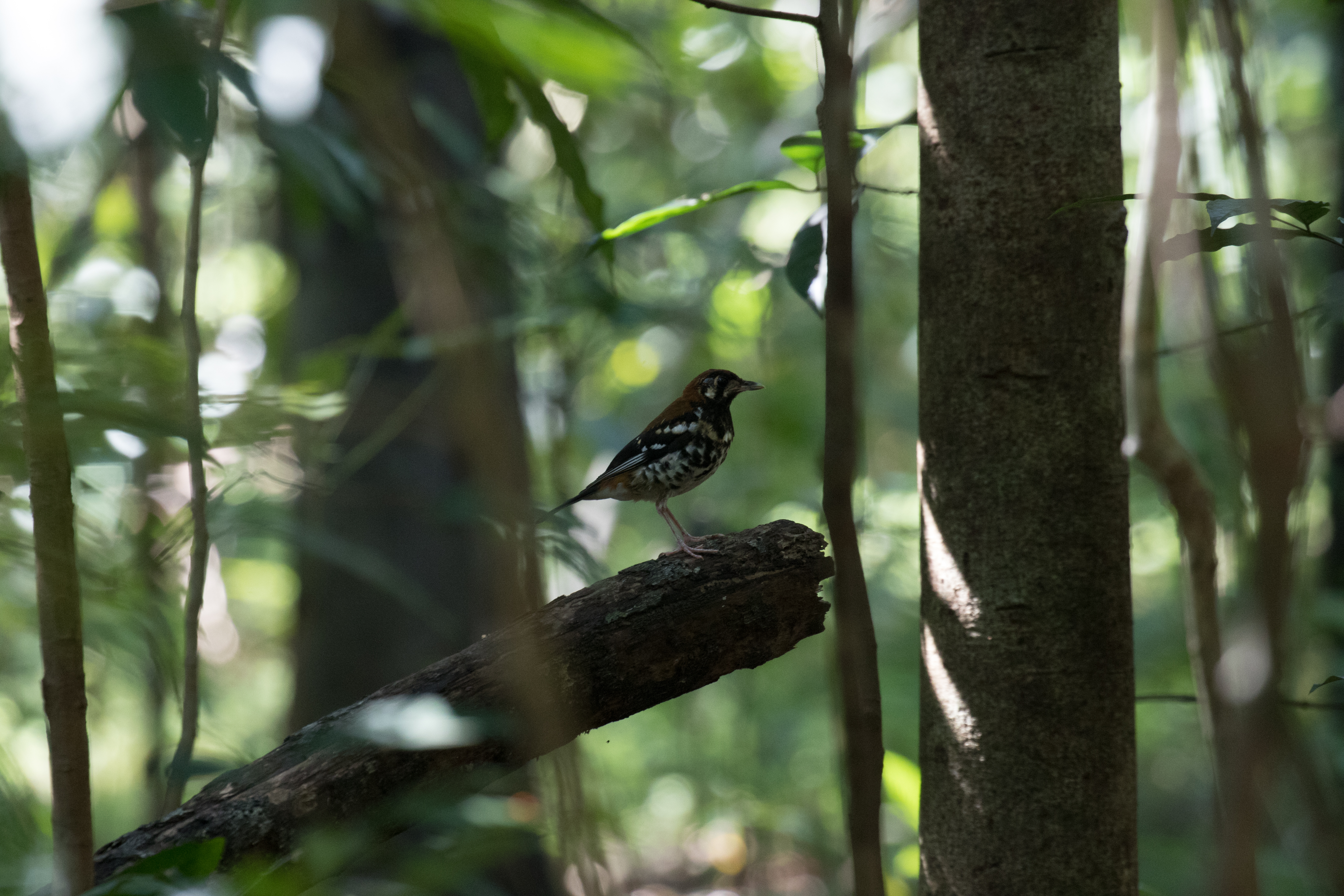 From Tambon we made our way to Torout which is actually a different side of the same national park. We acquired a room there and made our way to a nearby road to look for Ivory-breasted Woodswallow. After reaching the crest of the hill, we got out of the taxi we had hired and started walking down the road and scanning the open areas. It didn’t take long before we saw our first target fly by, an adult Sulawesi Hawk-eagle. In fact there were a lot of raptors around including Sualwesi Honey-Buzzard and Black Eagle. Next up was the main target, Ivory-breasted Woodswallow which we saw several of as they flew above the forest hawking insects. Since it was still early afternoon and we had seen our main targets, we made the decision to return to Torout and spend the late afternoon on the trail system. Although we didn’t see too much of interest, after dark we had nice looks at Speckled Boobook. That night we also attempted to see Sulawesi Masked-Owl, but no such luck despite hearing it call several times. Darn those masked-owls. We woke up early the next morning to the sounds of the masked owl calling but again couldn’t see the bird. Ross and Michael went birding that morning while I wisely stayed behind as they didn’t see a single new bird, the only real highlight was having much better views of Pied Cuckooshrike.