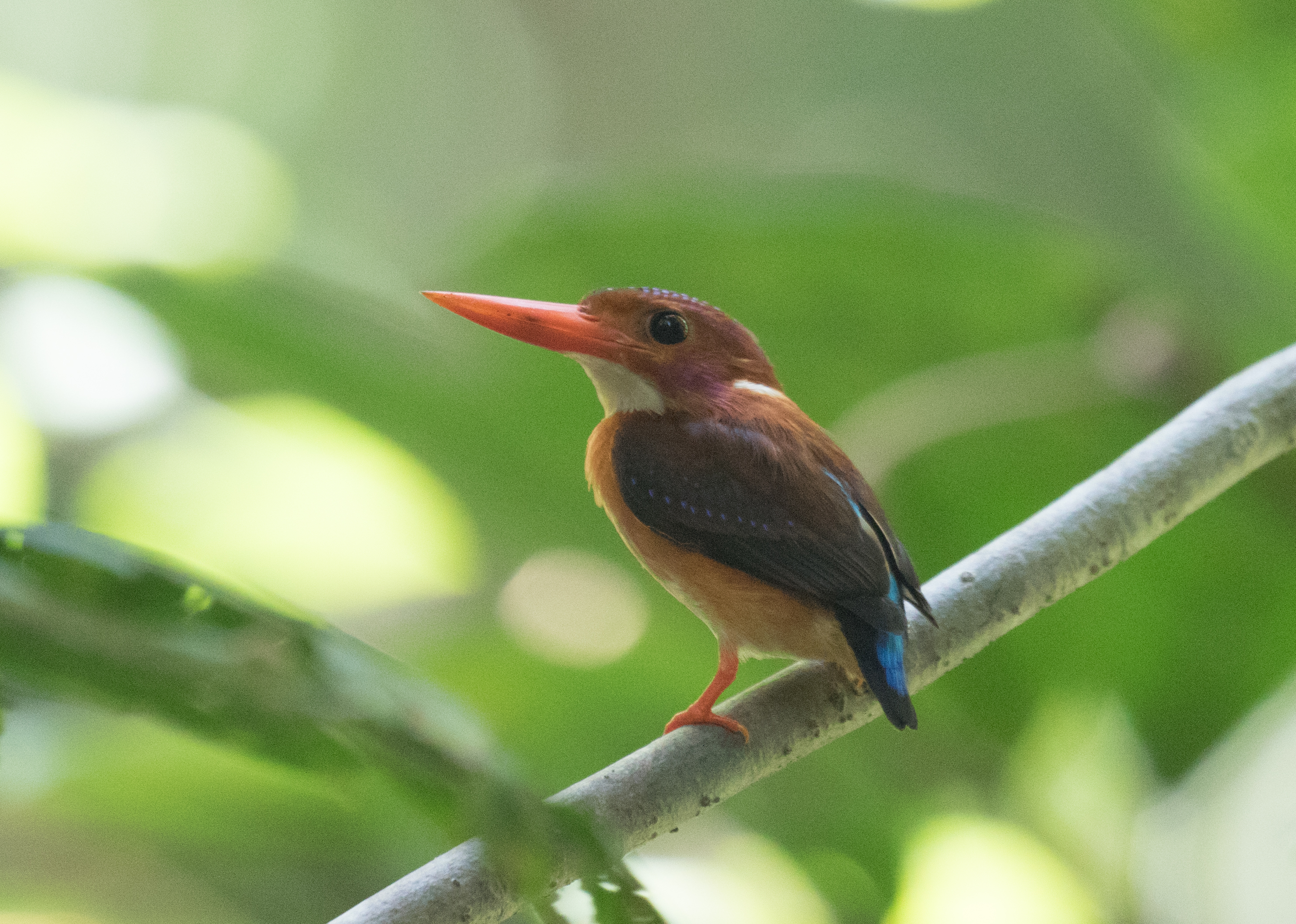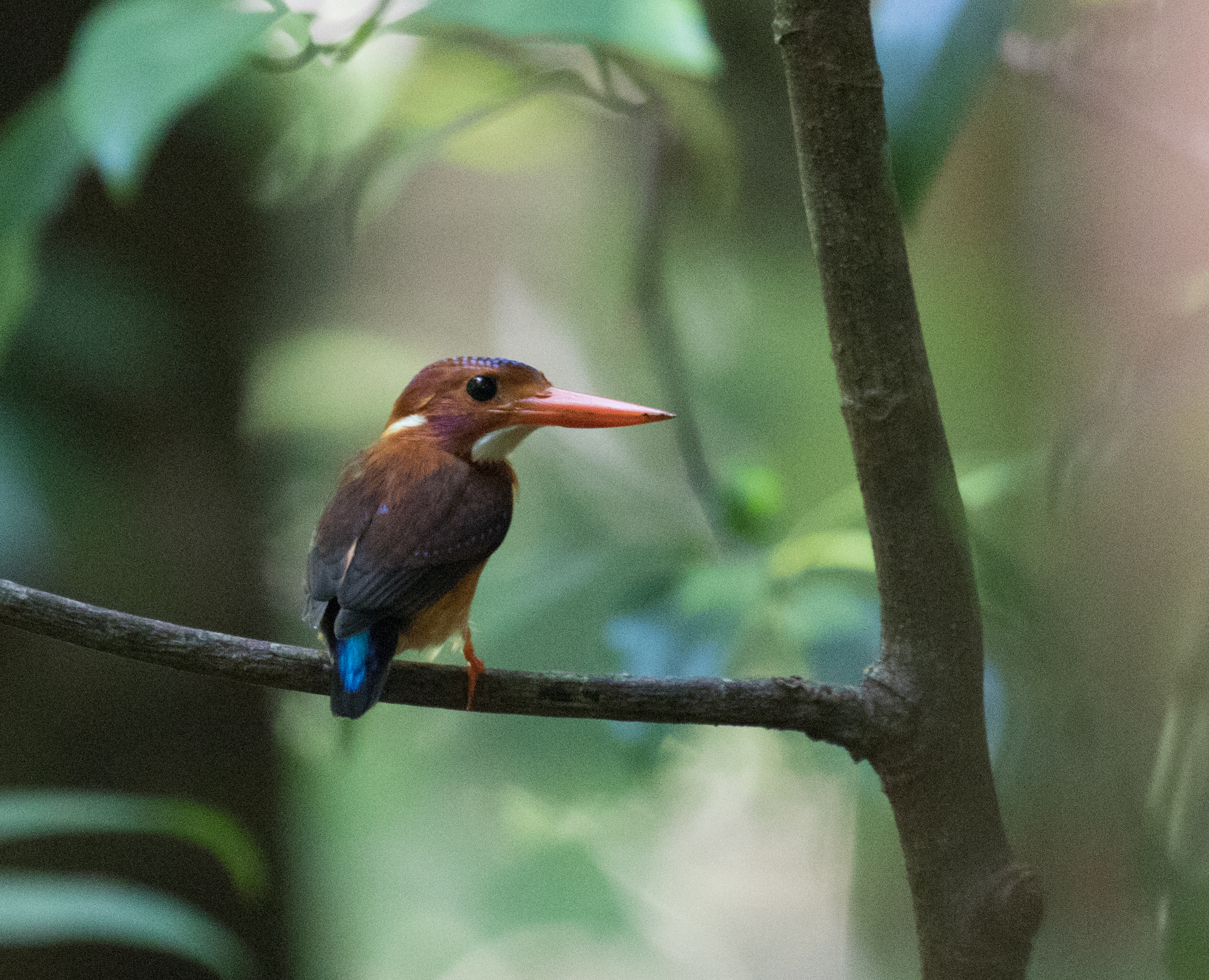 We had to rush back to the harbor and got on a small boat up to the mangroves. Tide was still a bit too low for our boat to make it in with us riding in it, so we had to walk along the beach while our driver managed to get the boat into the canal. We hopped back in and quickly had excellent views of a Great-billed Kingfisher! We continued up the canal looking for more kingfishers and just as we were about to have to turn around as the canal dead ends, Michael noticed a bird fly across the river and another bird perched up over the canal. This time the Great-billed Kingfisher perched over the water let us get extremely close and both Ross and Michael managed excellent photos! We happened to do extremely well when it came to kingfishers that afternoon as we also had views of Collared, Sacred, and Common Kingfishers in addition to our three Great-billed.