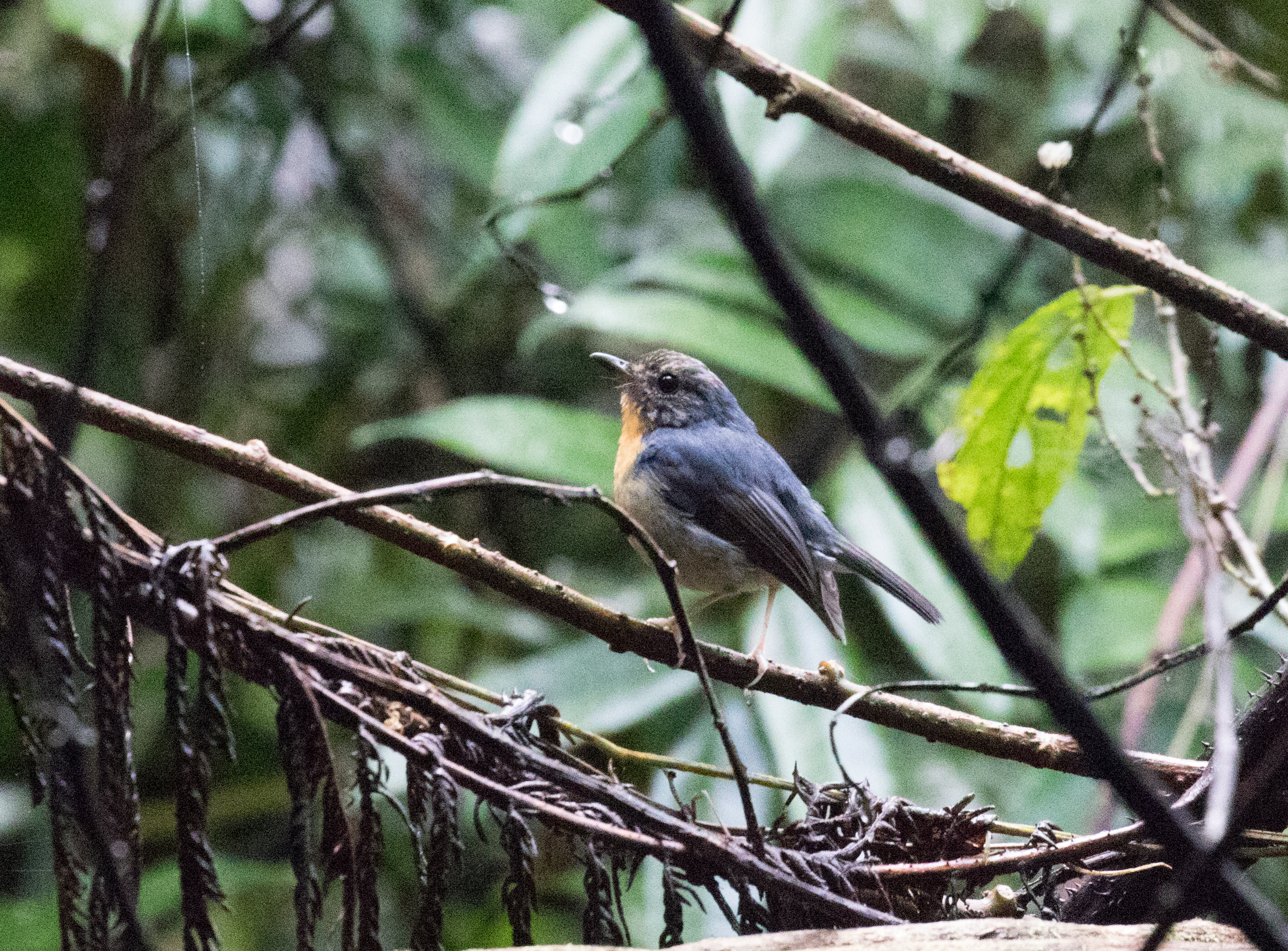 We left Tangkoko that night and drove a few hours to Tomohon where we spent the “night” (aka we arrived at midnight and left at 0400) in a resort-style hotel. The following morning we were taken to a birding location known as Gunung Mahawu well before first light so we could search for another kingfisher! If you aren’t searching for Scaly-breasted Kingfisher before light you probably aren’t going to see the bird as it only calls in the early morning and late evening and remains virtually silent and inactive during the other hours of the day. I feel like I’ve been super long-winded lately so I’ll be brief, but the fact that we found a trail into the forest is a minor miracle that I can’t gloss over. When we arrived on the mountain it was still very much dark and the air was thick with fog. We were searching for a small trail using the light of our headlamps hoping that the vegetation and fog wouldn’t obscure it. Ross is some kind of wizard though and has inconceivable insight into maps and trails, that he found one and said we should take it. We did and then made several rights and lefts and a small stream crossing somewhere in the middle before we found our way to the GPS coordinates we had for where someone else had seen the bird. Crazy that we made it there considering we did not have GPS coordinates for the start of the trail and Ross simply found the point by guessing trail directions! It was before first light when the bird started to call and Ross and I managed to tape it in and had great looks of a bird up-close. Unfortunately Michael was down the trail and missed seeing the bird before it flew off. We walked up the trail a bit searching for a few other species and ran into a few Sulawesi Jungle-Flycatchers. One bird, a female Sulawesi Jungle-Flycatcher, at first glance looks very similar to the much rarer Rufous-throated Flycatcher which is sometimes reported from the site, although the book notes that the bird is found below 600m elevation and this location is well above that. We scoured google images after we got back to town and found that even some sites online have the bird misidentified! (Also after some correspondence afterwards, it appears no one has actually confirmed Rufous-throated Flycatcher at Mahawu despite a number of eBird reports. So be careful with your flycatchers and if you actually do see a Rufous-throated there, take a picture!)