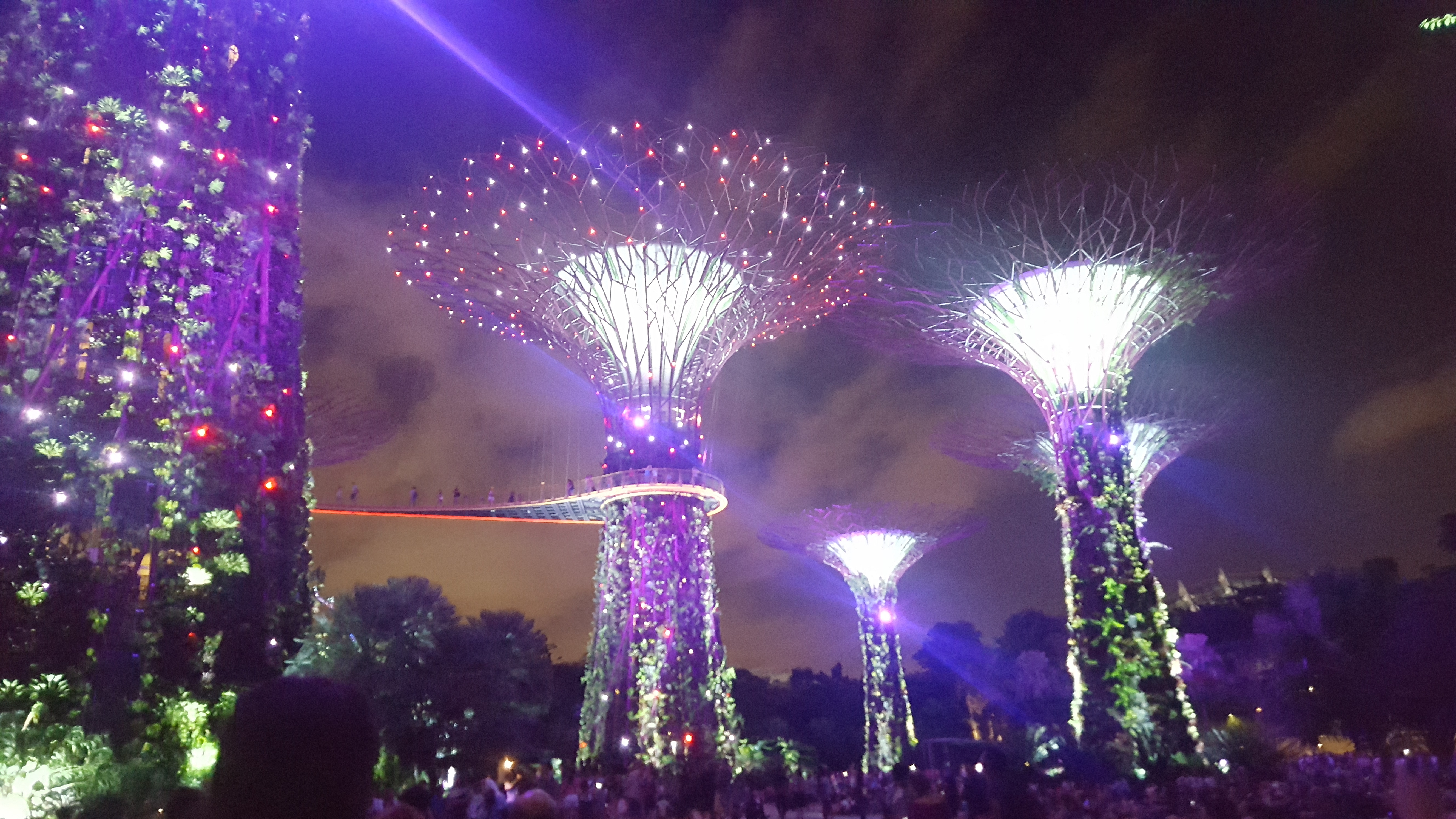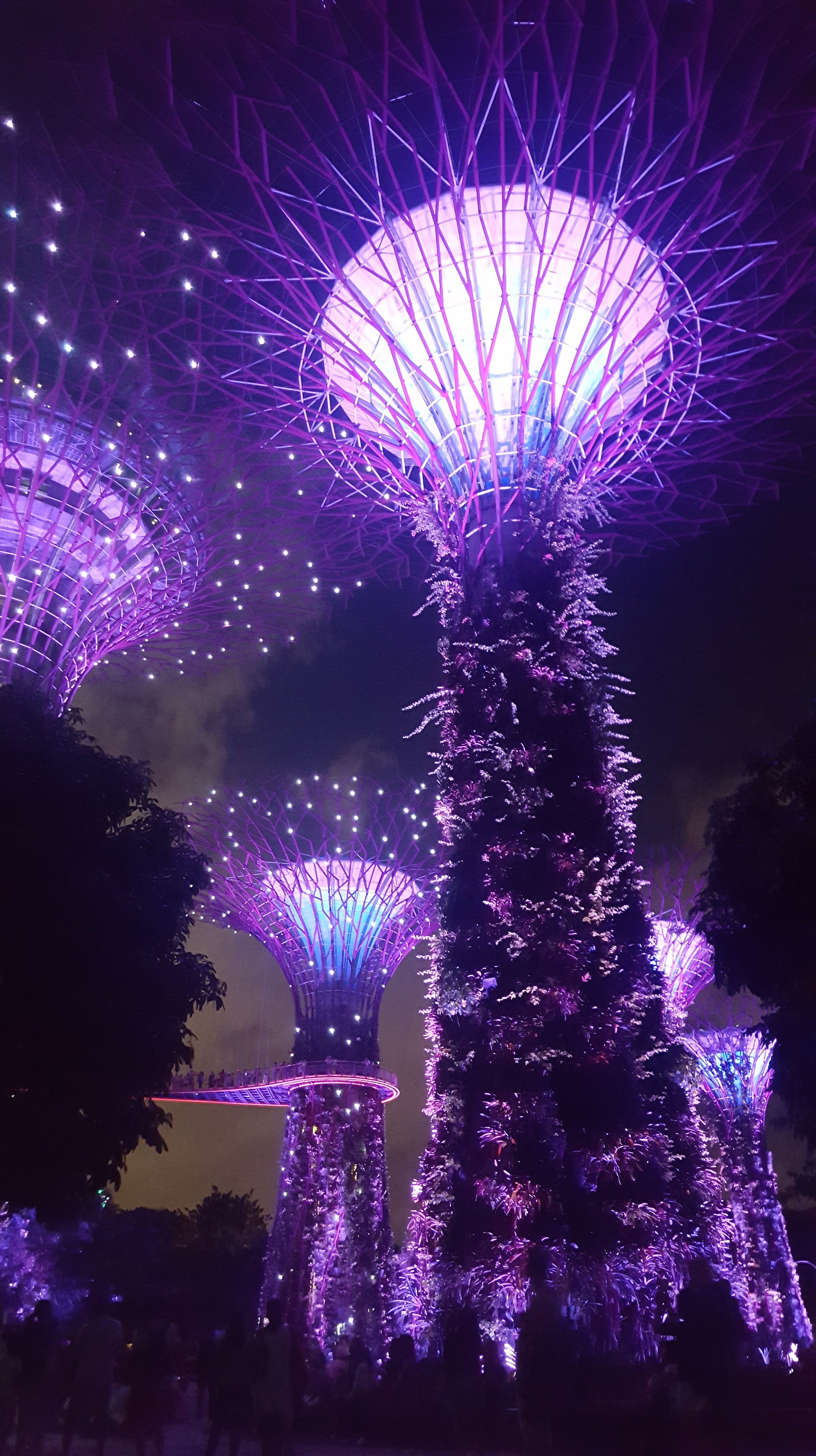 We ended our day at Gardens by the Bay seeing the solar-powered ‘supertrees’ and watched two amazing light shows, one where the supertrees lit up and then running back over to the bay to catch then end of the water laser light show. It was pretty rad. They have these light shows every night of the week and they are totally free!
