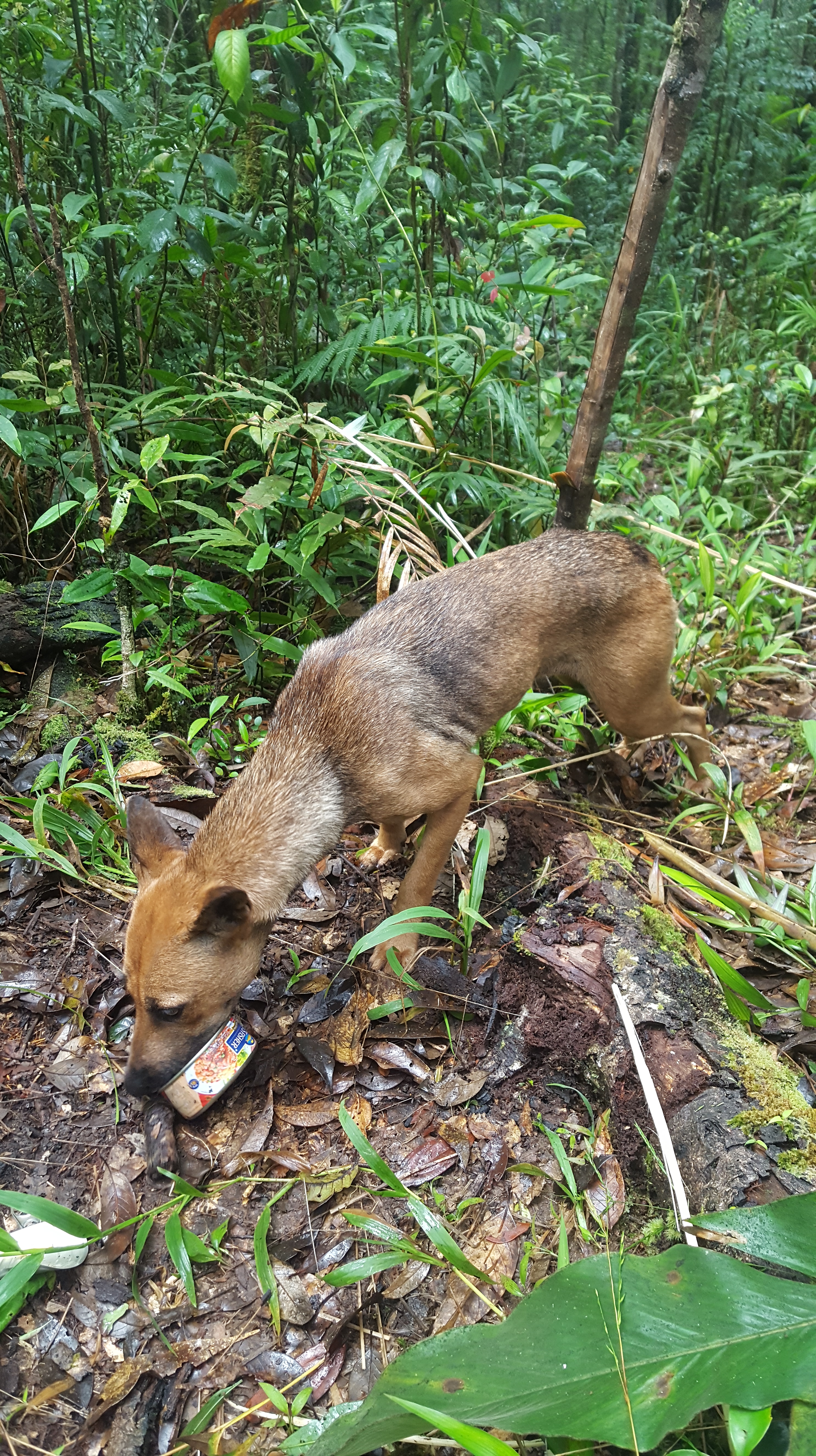 Anyway, we had a few Moluccan Scops-owls come in, but no boobook, although we were completely confused because the birds in front of us were clearly dueting, a practice known to occur among boobook pairs. The following morning we woke up and started birding our way back down. Up until this point I haven’t mentioned the dog that found us during our hike up. I’m not sure if she “belonged” to one of our guides or simply saw us walking, but she must have been bored because she decided to tag along. She was scrawny and underfed, and completely wary of Ross and myself, but even though the guides would kick her and push her when she was in the way and Ross and I were only ever trying to feed her, she only ever growled at us. She had followed us for the entirety of our journey until this point (including up that super steep ridge!), but at about the same time she joined us on our hike, she left us and we never did see her again. Funny how these abused animals still make for good company.