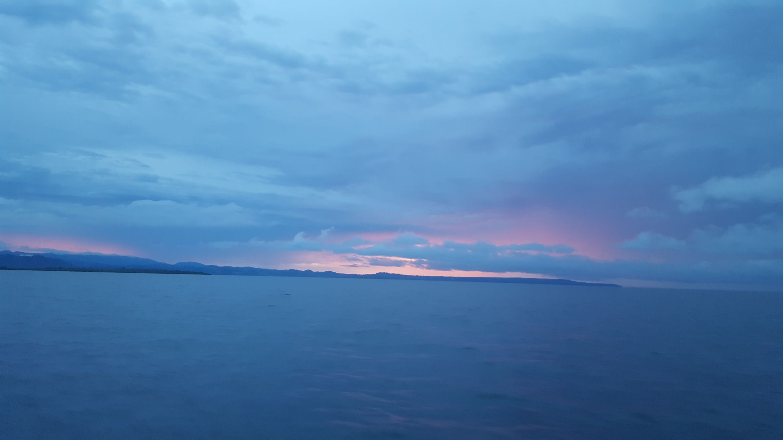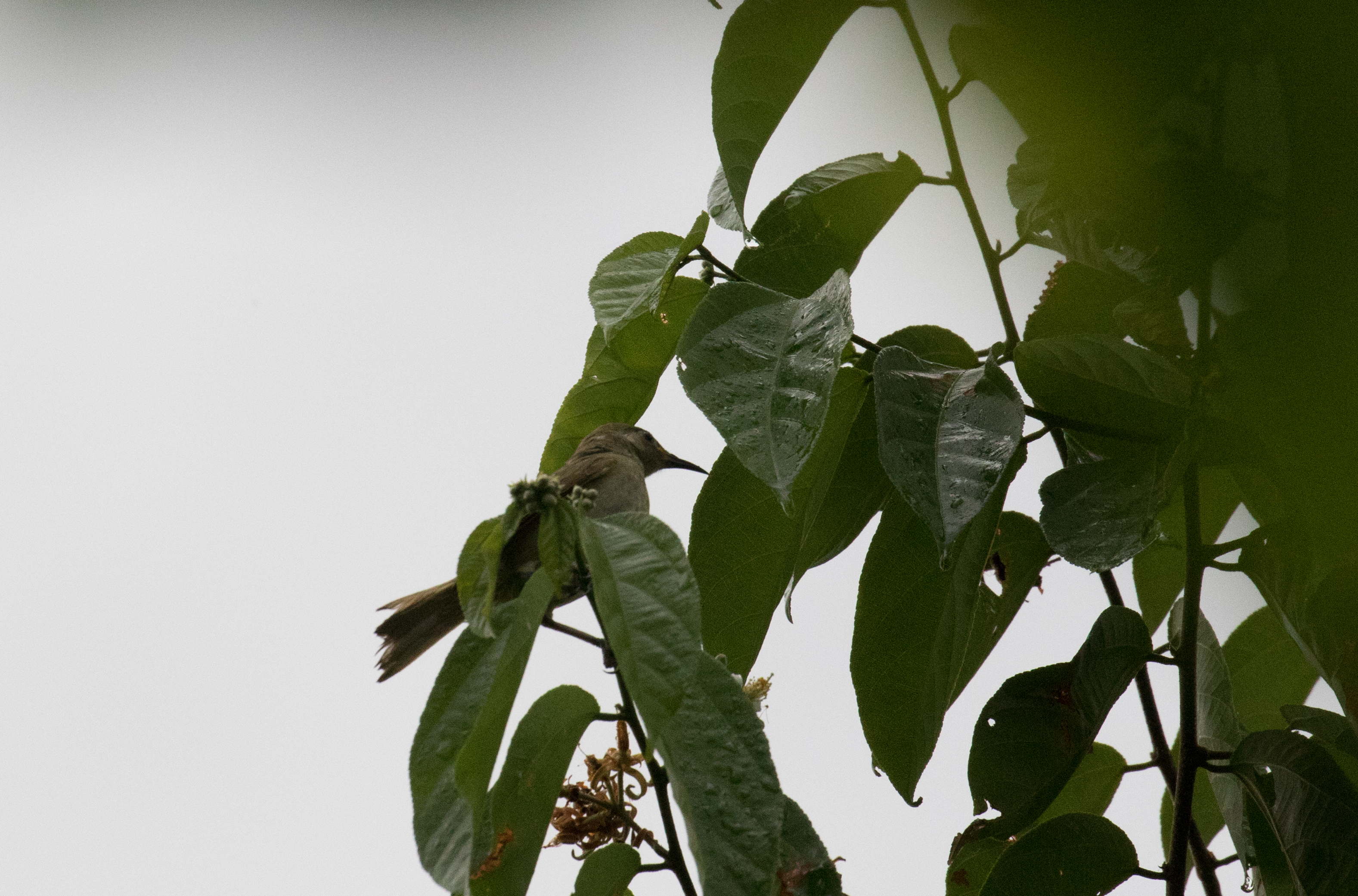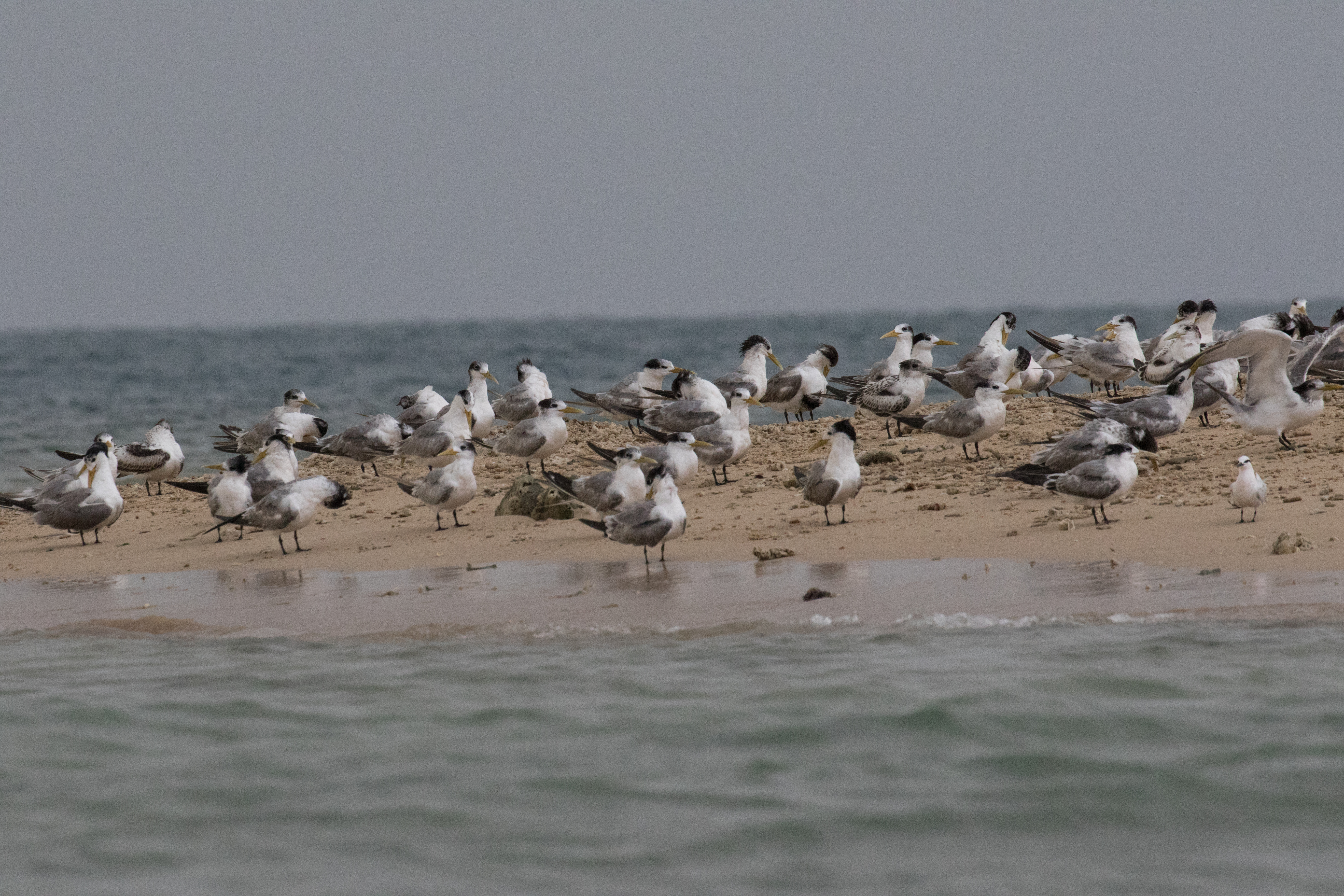 We underestimated how slow our little fishing boat would be and when we were halfway there we were laughing at all of the ways we had screwed this up. We weren’t going to get to the island until it was practically dark. It was raining. Most importantly, we didn’t even know if the Olive Honeyeaters would be there considering they were seasonal. What else could go wrong?! Surely this was a recipe for disaster. We rode the whole way there underneath our umbrellas trying to stay dry. By some miracle the rain subsided just as we were arriving and it appeared it wasn’t too dark to give it a shot. Unfortunately as we were walking around we couldn’t seem to find any of our target birds. The island is only 200m from end to end and very easy to walk the length of in a short amount of time. These birds were supposed to be conspicuous! If they were here, we would have seen/heard them by now! Two out of three in our trifecta of wrongs had worked out in our favor but perhaps the birds just weren’t here at this time of year. We had no idea what their ‘season’ was. Just as we were about to leave and give up Ross heard a sound and eventually located the source as an Olive Honeyeater! We had nice looks at 6 individuals but only managed a sub-par recording and sub-par photo. It wasn’t until we had decided we would leave that the birds started calling loudly and posing in the open. No clue where they were when we first arrived but our little getaway went from the worst possible scenario to pretty close to perfect. We had the whole island to ourselves. The sky went from rain to a miriad of shades of blue. Seriously, the only way our visit out to the island of Loesaolat Island could have gotten any better was if one of the many Greater Crested Terns that we passed on a nearby sandbar had a wintering Chinese Tern among them (but sadly it didn’t, a bit too early in the season I guess). Regardless, what we thought was going to turn out to be a total disaster was very enjoyable and we had views of a neon orange and pink sunset behind a blue mountain backdrop to keep us company for the ride back.