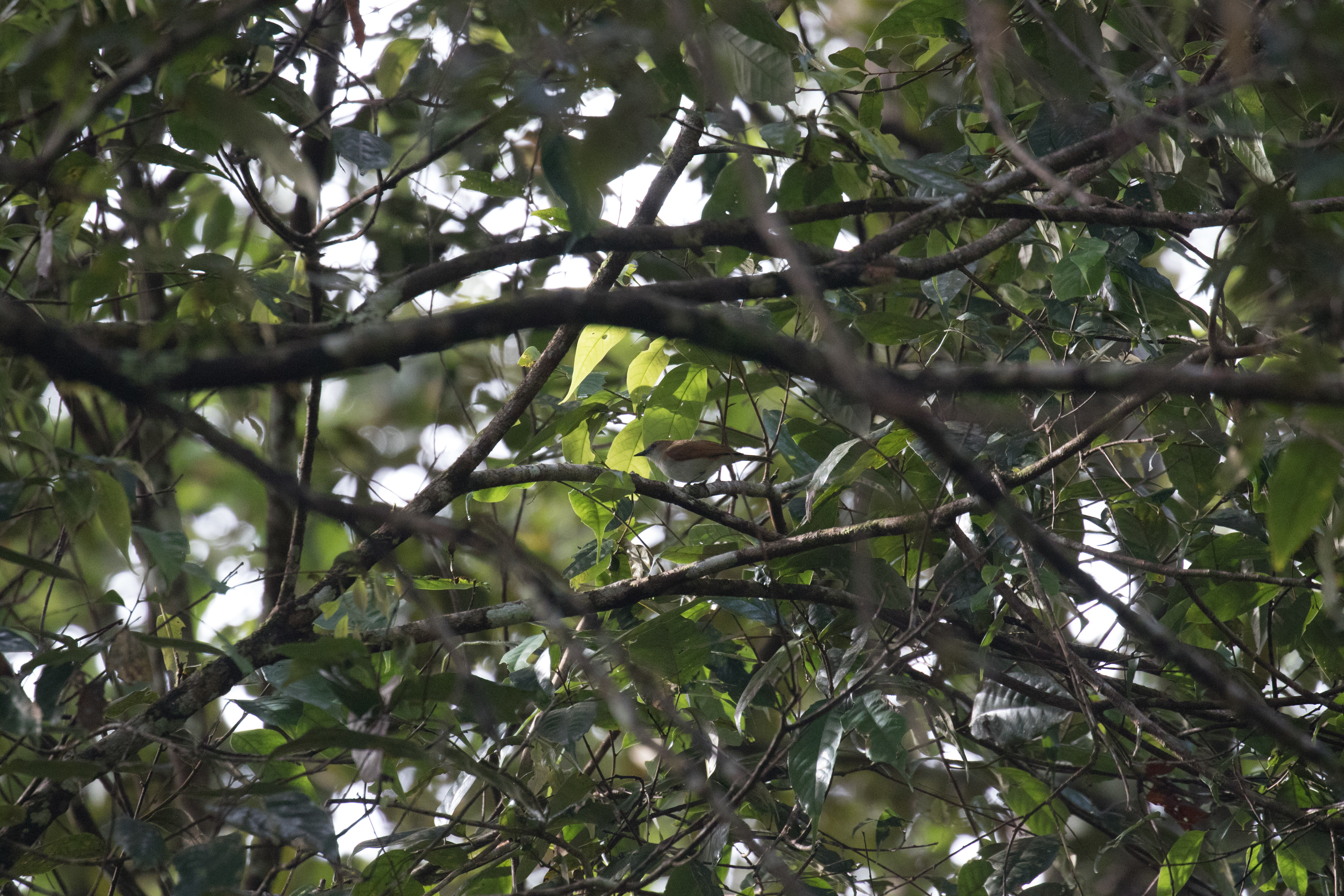 We only had one final morning before we had to be back to town to catch the ferry. We coordinated with the taxi driver who dropped us off nearly a week ago to come pick us up and be there at 5AM so we could get up the mountain and walk the road before actually getting on our way. We had put pretty much zero faith that he would be there at 5AM like we asked so we were preparing to ask around for another ride by 5:10 if he hadn’t arrived. I was blown away when the driver pulled up at our homestay doorstep ready to go and we didn’t have to resort to our backup protocol! We made it to the top of the first pass at dawn and had plenty of bird activity to keep us company. We were kicking ourselves for not having gotten up here earlier the day before. Darn those ojeks! Again we had done so well that we really only had a few targets. I was hoping for Purple-naped Lory and Ross was looking for Bicolored White-eye. The Seram Dwarf Kingfisher that we were both missing we had already written off because if we hadn’t seen one amongst the many little gullies we had passed while on our trek we certainly weren’t going to see one along the road! We immediately had a flock of Mountain and Seram White-eyes, but the Bicolored was no where to be found. Our morning looked a lot like the morning before, only with slightly better weather and a driver to follow a bit behind us and pick us up when we wanted to go back to the top. We walked up and down the road a few times focusing on the elevation that we felt would give Ross the best chance for this darn white-eye. It was a nice morning but the closer we got to our deadline of 9AM, the time we told ourselves we would officially leave by, the more frustrated Ross was getting that he had missed this bird. I kid you not, it wasn’t until all of the gear was put away and we had officially decided we would leave as soon as our drivers pulled up that I yelled to Ross “I have it!” The bird flew off before he could get on it and all we saw were some Streak-breasted Fantails. He then was sure that I had misidentified a fantail to the point where I doubted whether I had seen the bird or not! We scanned the flock of fantails and sure enough I relocated the bird that I had and knew it was not mis-ID’d. I managed to get him on it and we both just started laughing. I don’t think you can make something like that up. Or I guess you could, but Ross said “I had better get a photo or no one is going to believe this” and we watched a single Bicolored White-eye from the exact same spot as I had it from the day before.