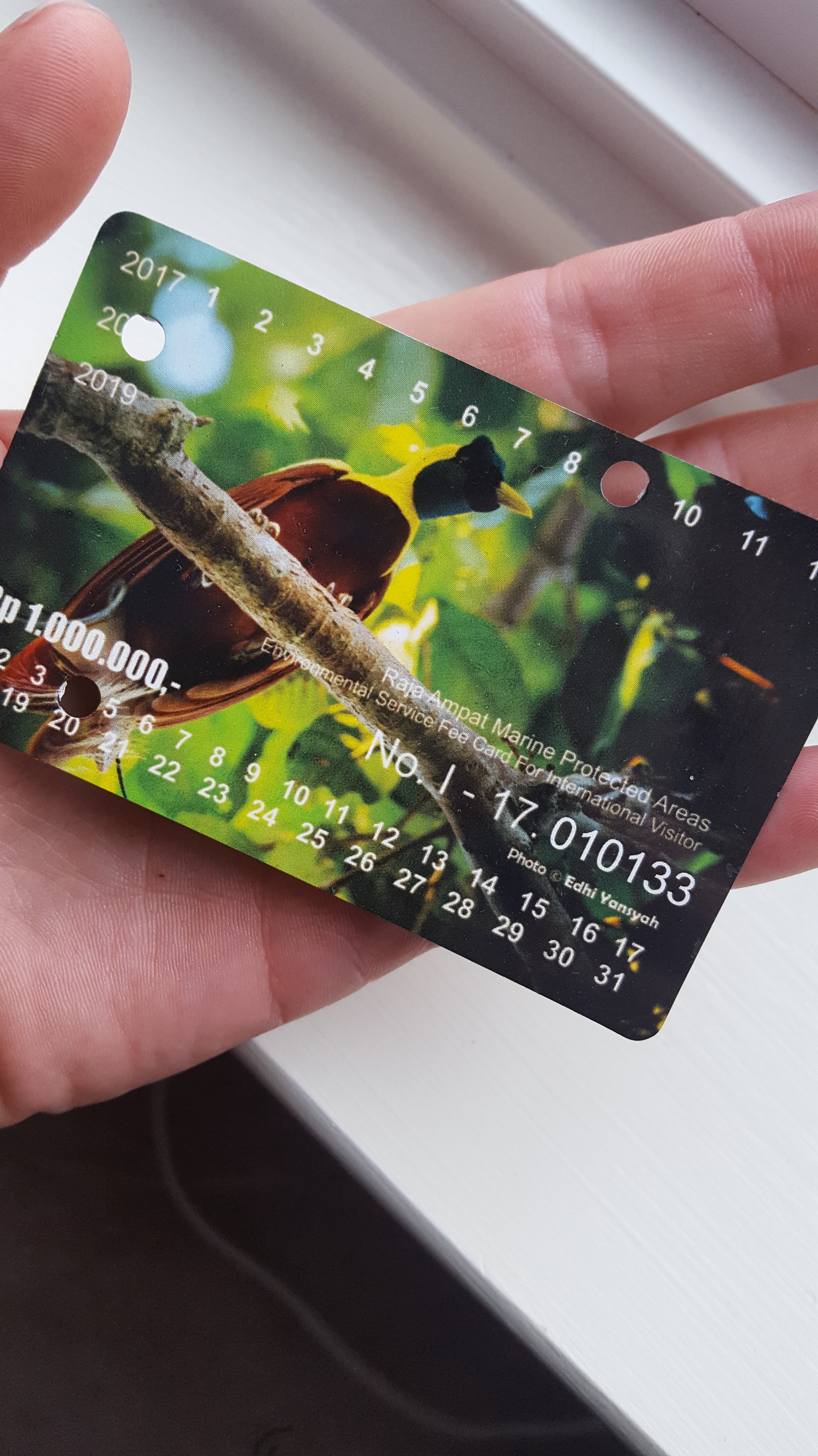 From Sorong we took a ferry to Raja Ampat and were immediately scooped up by local officials to make sure that we paid our 1,000,000 IDR ($75 USD) fee to enter. This money is supposed to go towards conservation, but like many bureaucratic ventures in Indonesia, we were very skeptical when the office didn’t have a single detail about the forest or the birds found in the area. After we paid our ‘entrance fee’ we received a plastic entry card valid for one year of entry into Raja Ampat, but if that wasn’t enough, we also received a full-sheet invoice receipt and then plastic tags to put on our luggage, so we inquired why all of this redundancy was necessary. We received a response to the effect of “so that people know that you paid your entrance fee.” I’m still not sure why anyone would need a card, an 8″x11″ invoice AND a plastic luggage tag just to prove they paid entrance so we only took the card. The ‘point’ we were making on how wasteful it all was, was surely lost on the local officials. From the ferry terminal we moved onwards to find someone to take us to our pre-arranged accommodation, Yangkankane’s Homestay. Apparently the homestay had arranged for our transportation, but still the fee was a bit ridiculous – 200,000 IDR (15 USD) to go 3 miles, but at least we could split this cost in half because there was another guy who was on the same ferry as us going to the same place. The accommodation was basic but what the sleeping arrangements lacked in luxury was more than made up for by the outstanding view overlooking the water and the delicious food cooked for us by the lady at the homestay. Robin, the man we met from the ferry, made for good company as we shared the balcony overlooking the ocean for meals and good conversation. He also joined us on a few birding excursions splitting some other costs as well.