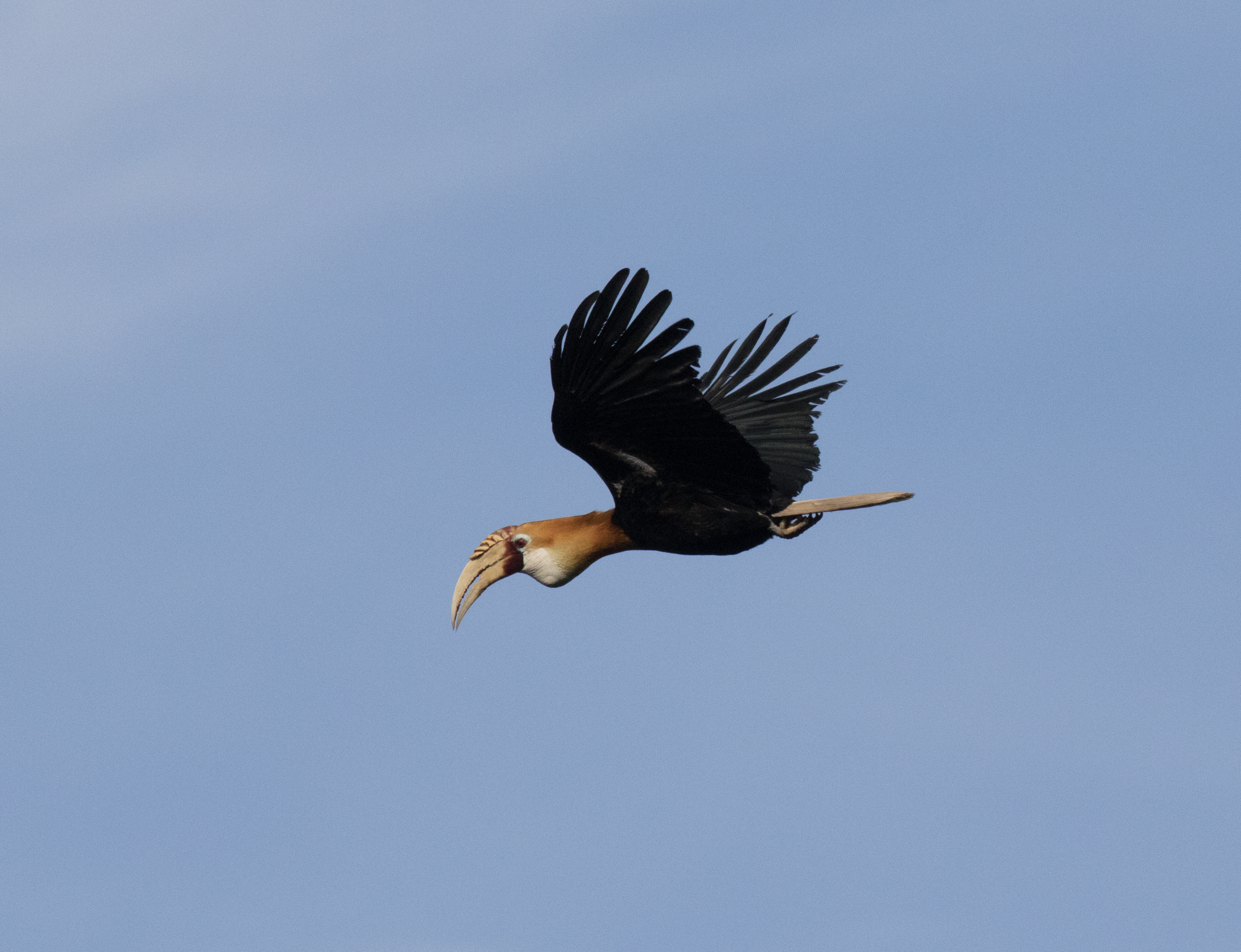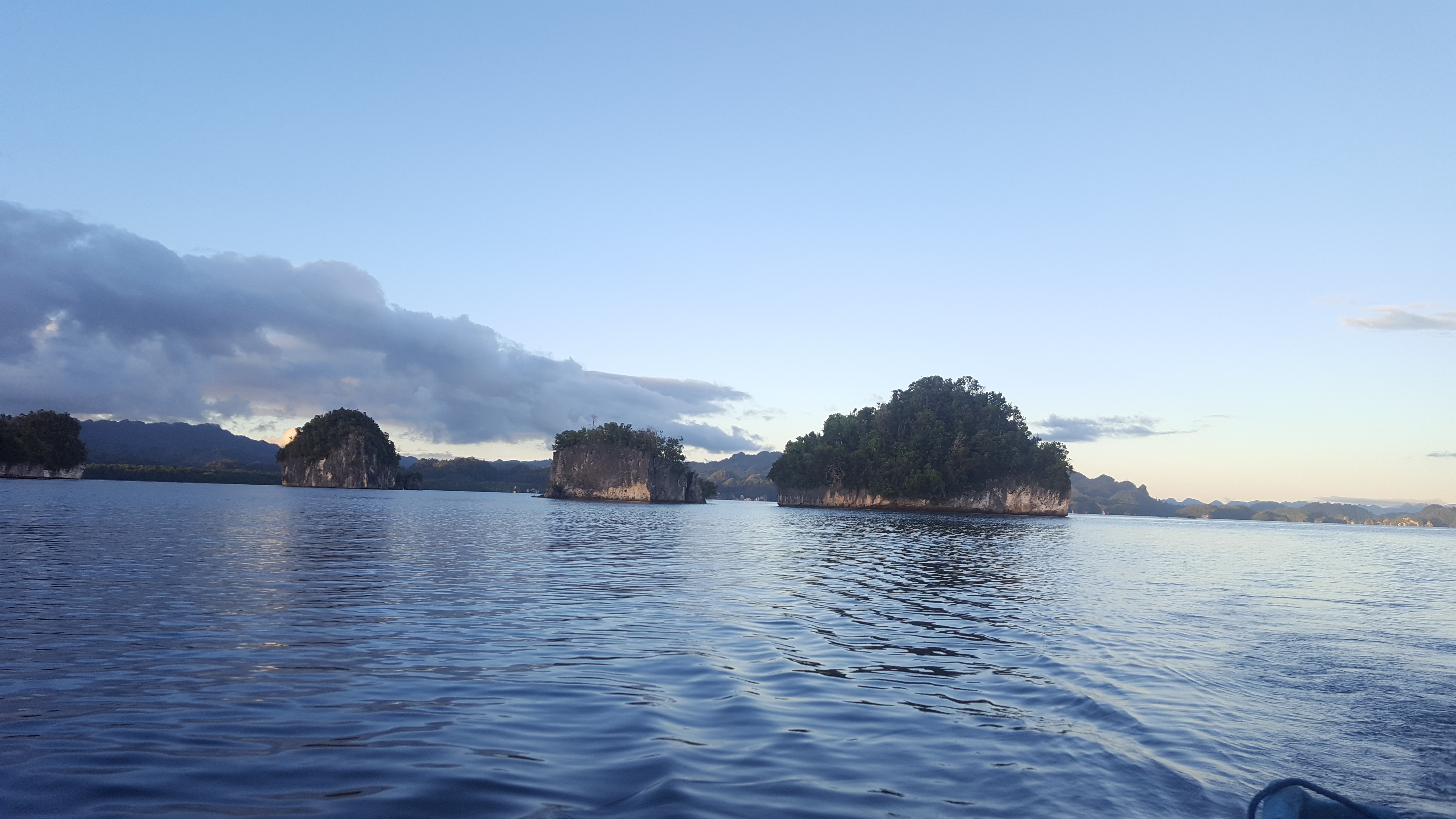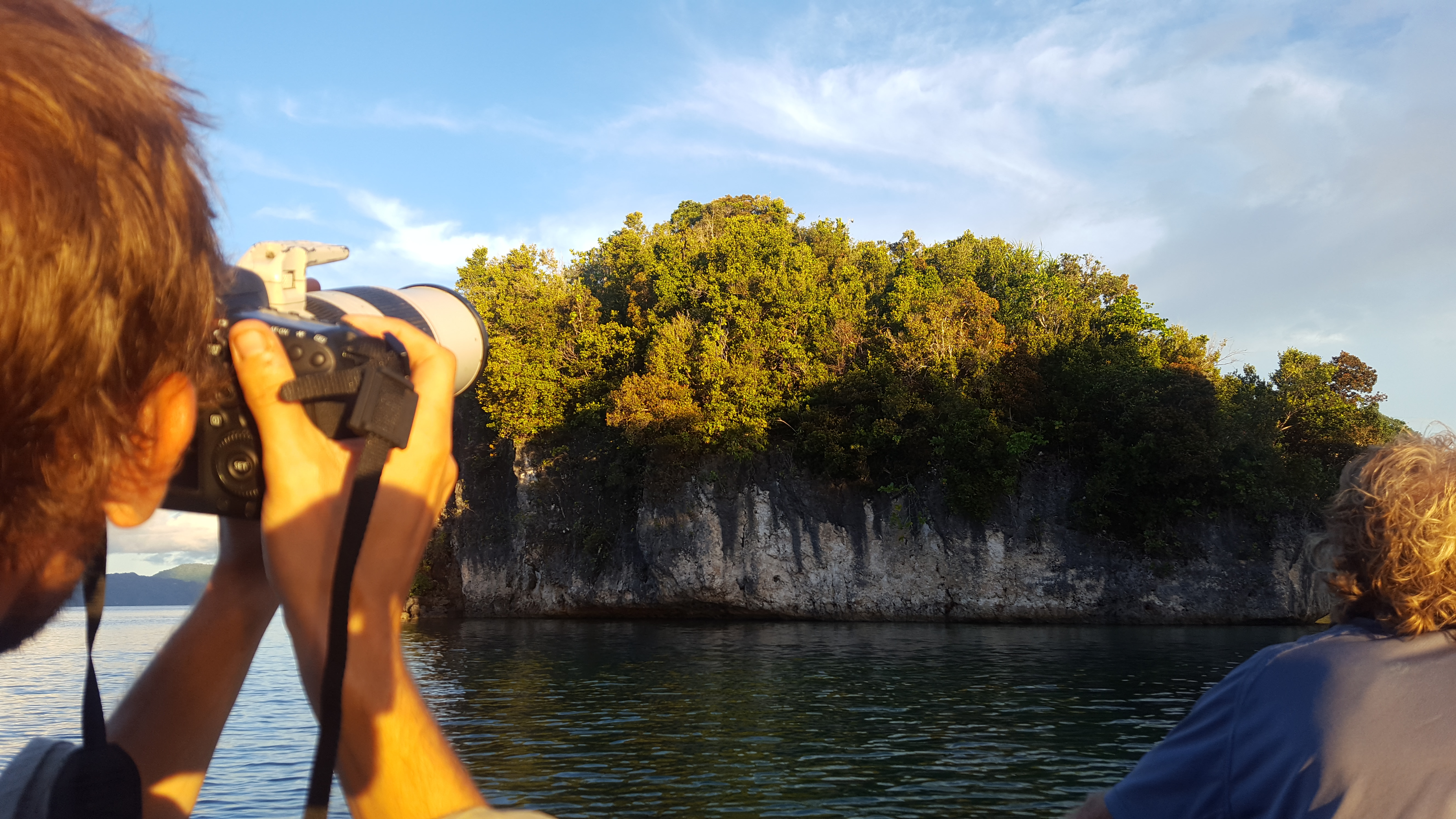 Our boat deceivingly looked stable but once we hit open water every little bump became a threat to the safety of our expensive gear. Luckily the water was calm and we hardly had to fight any bumps or waves. Had it been rough seas I would be singing a completely different tune! It was an hour-long boat ride out to our known site and soon we were soaking in views of breathtakingly beautiful small rock islands jutting straight out of the ocean, green with vegetation and polished rock edges. Raja Ampat certainly contributes to the 17,000+ islands that Indonesia boasts. Most of the islands we saw that night were the size of your living room (or smaller) and this was where we waited for dusk when Spice Pigeons and Great-billed Parrots come in to roost. A few Spice Imperial Pigeons started trickling in but the 300+ parrots that supposedly roosted here were nowhere to be found. We were wondering if their roost site had changed because if the parrots were around they would have been noisy and we hadn’t heard even a peep. From our little boat on the water overlooking the islands we watched the sun set and saw as beautiful colors were thrown across the sky and then we watched as a full moon rose over the horizon replacing one light in the sky with another. You definitely don’t have to like birds to want to experience something like that. It wasn’t until well after sunset that the first group of Great-billed Parrots came in to roost and it wasn’t until the moon was already high in the sky that larger numbers began flying over our heads. The full moon clearly had something to do with their late arrival! We took our hour-long boat ride back with nothing but the light of the moon lighting the way.