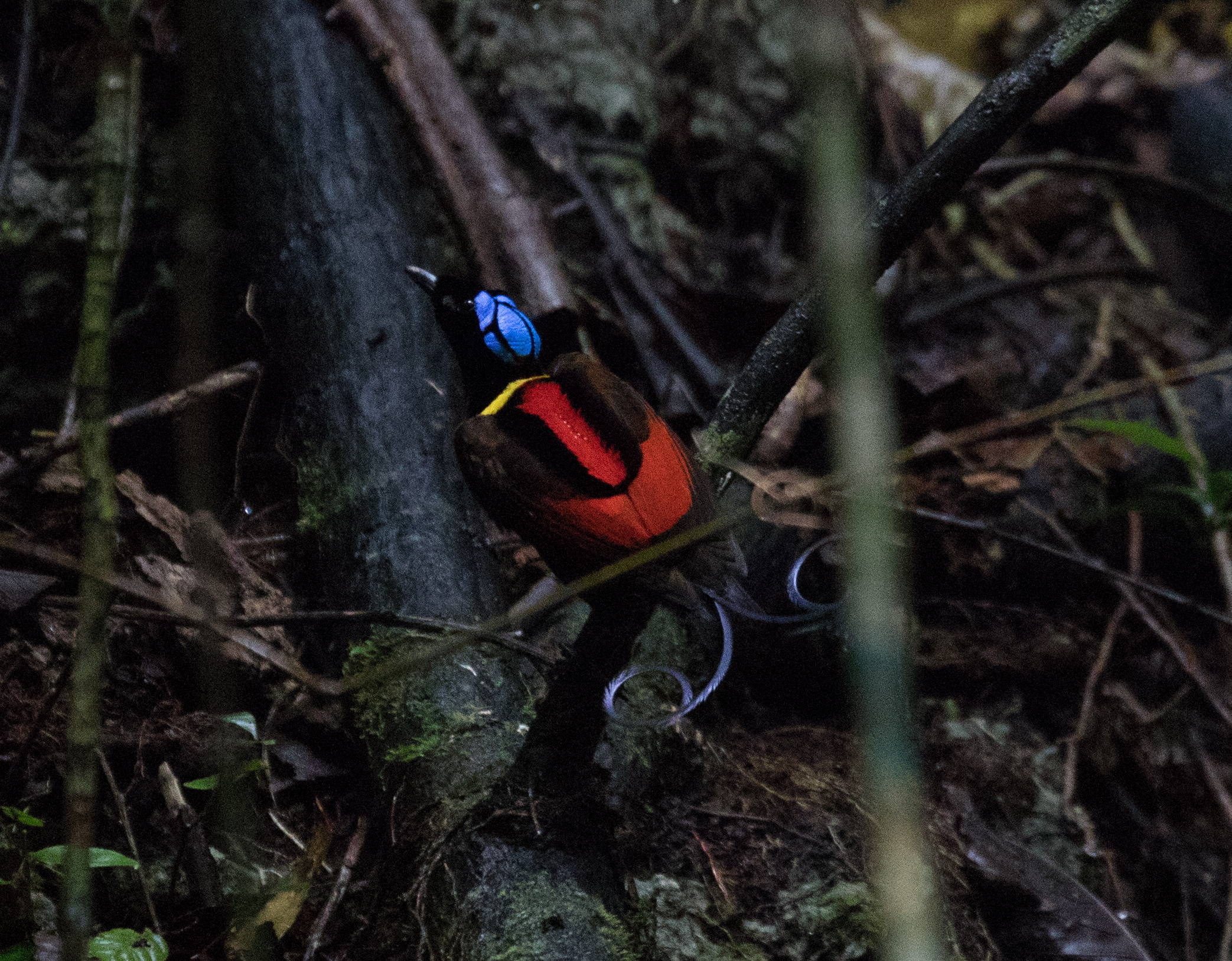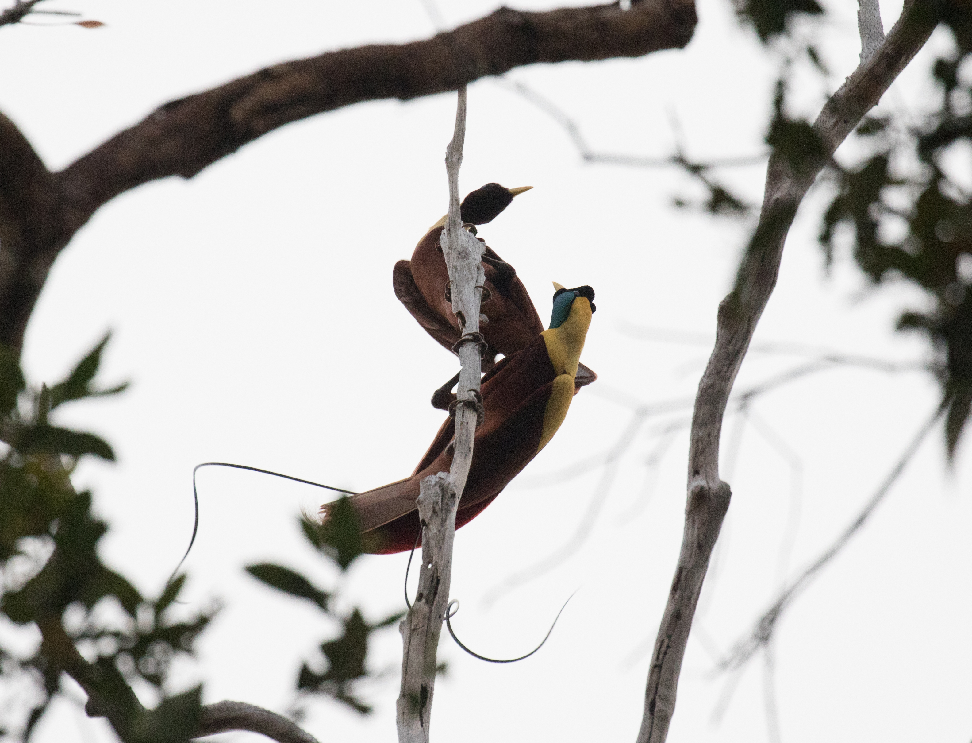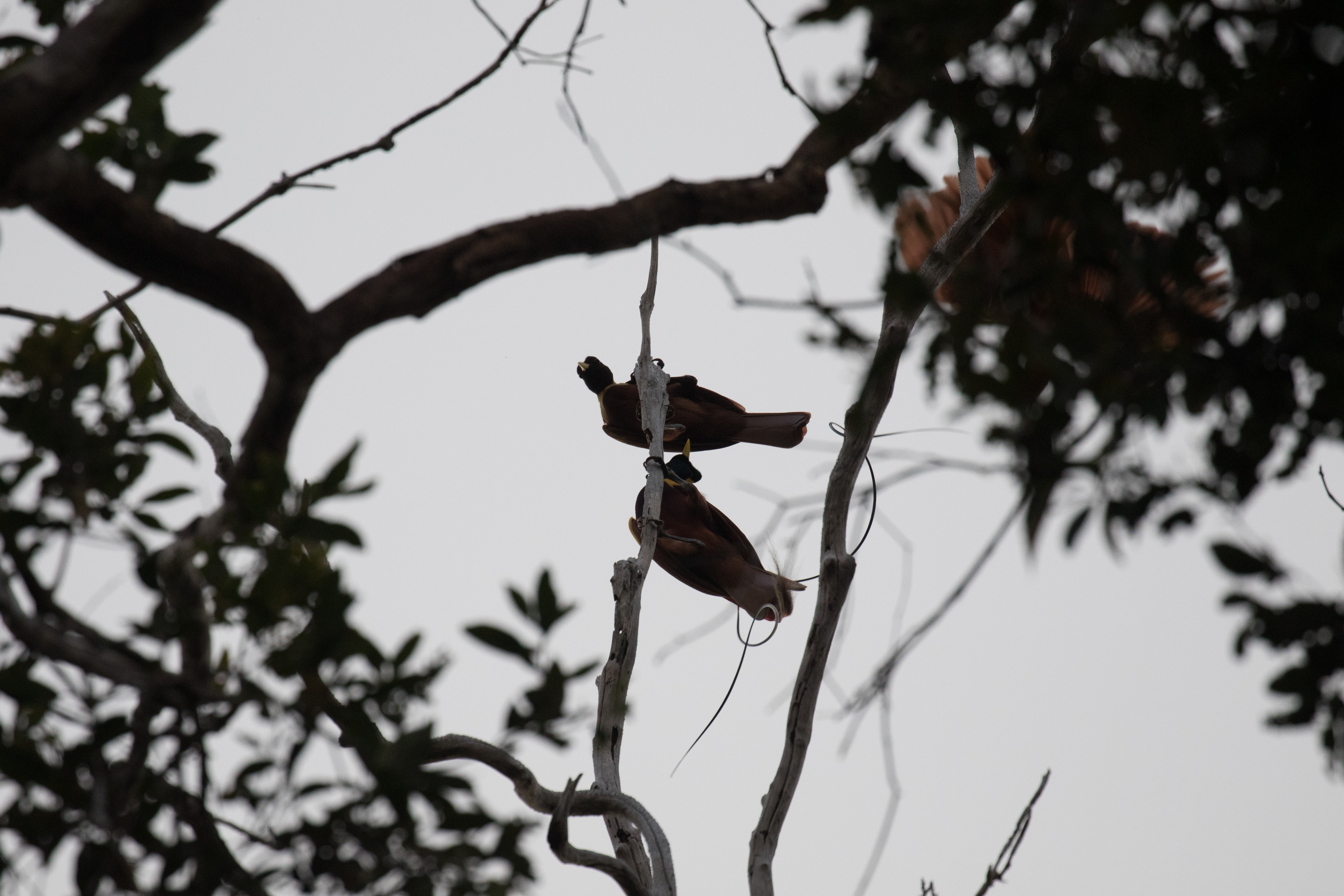 The next morning we woke up early and started the walk up to our first bird-of-paradise hide, because if there’s one thing that is standard about birding West Papua, it is that in order to get close views of birds of paradise, one visits staked out hides. Just outside of the trail to the Red BOP hide we had views of Papuan Boobook. Before first light we made our way up the trail to the viewing area clearly made for visitors to watch male Red BOPs display to the females. As dawn broke we immediately saw a single male Red Bird of Paradise sitting in the tree. He was looking nice, yes, but he was all alone. He called a few times and three females came in and along with them an entourage of a few more males. We were very fortunate to watch as the four males went absolutely crazy shaking their tail feathers trying to impress the females. The females were very interested and we watched as they sifted through tail feathers to see who would make the best mate. The males had success that day and copulation occurred in the tree right before our eyes! To see these ornate birds display like this really was an impressive show. These photos can’t remotely do the experience justice!