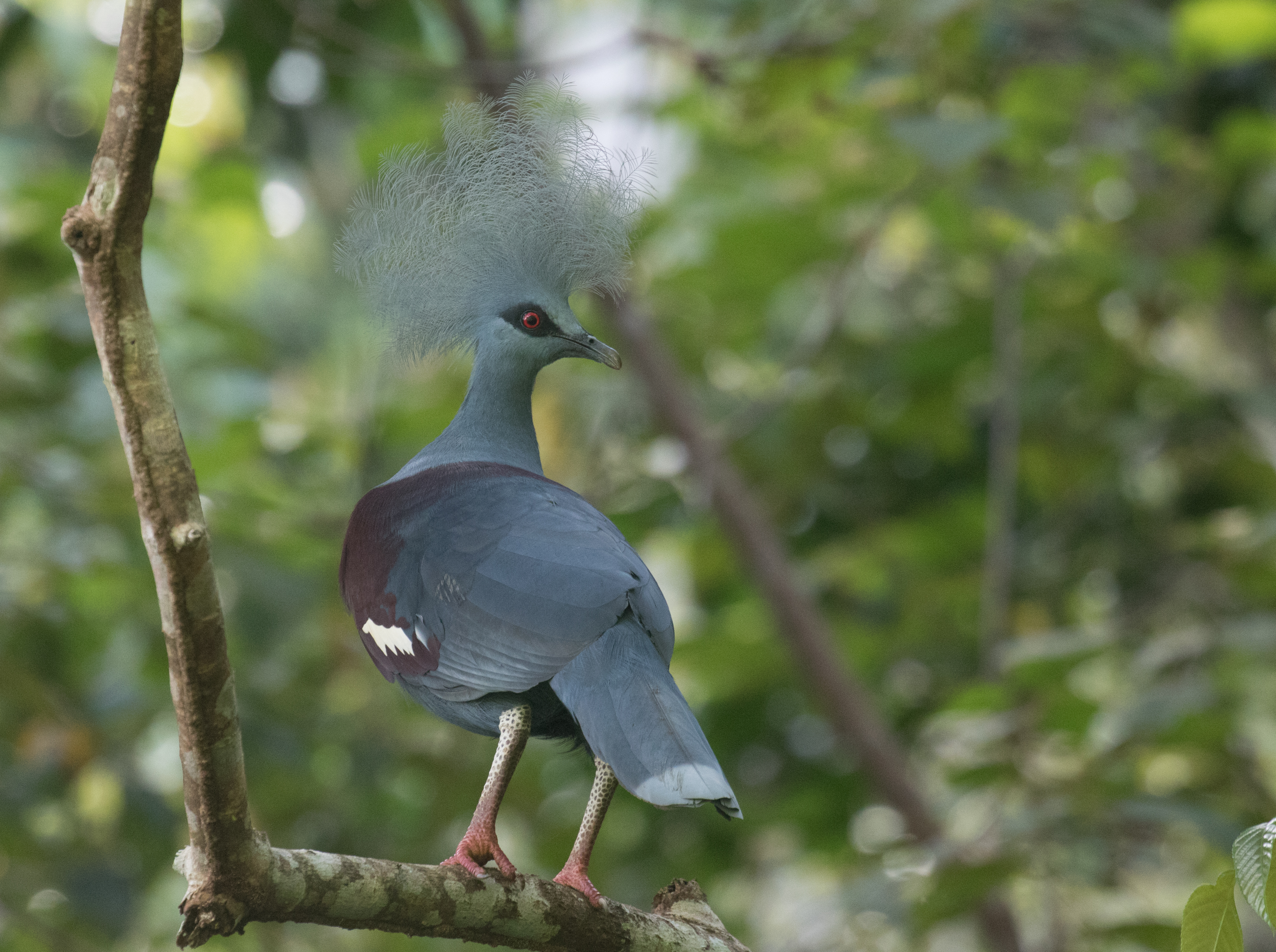 From that hide we made our way to ‘the second’ Wilson’s Bird of Paradise hide but it started to rain so not much was seen there. When the rain let up we made our way to ‘the third’ Wilson’s hide and were treated to views of a brightly colored male Wilson’s Bird of Paradise who came in to make sure his court was in tip top shape should a female be interested in him. No female came in so we didn’t get to see him display but we were very lucky when our guide spotted two Western Crowned Pigeons in the trail nearby the hide. These pigeons are enormous, weighing in at almost 5 lbs, but also enormously shy and can be very difficult to see well so we considered ourselves very fortunate and the morning a huge success. Other noteworthy birds seen along the main track were Puff-backed Honeyeater, Green-backed Honeyeater, Yellow-bellied and Pygmy Longbills, Yellow-breasted Boatbill, Spot-winged Monarch, and Olive-crowned Flowerpecker. I opted to leave Ross early with our local guide and on the walk back to the homestay had views of a Papuan Pitta and Brown-headed Crow that we still needed for our target list. Ross too had a productive walk, also seeing Brown-headed Crow and stumbling upon more Western Crown Pigeons – this time they stopped long enough that he could take a photo!