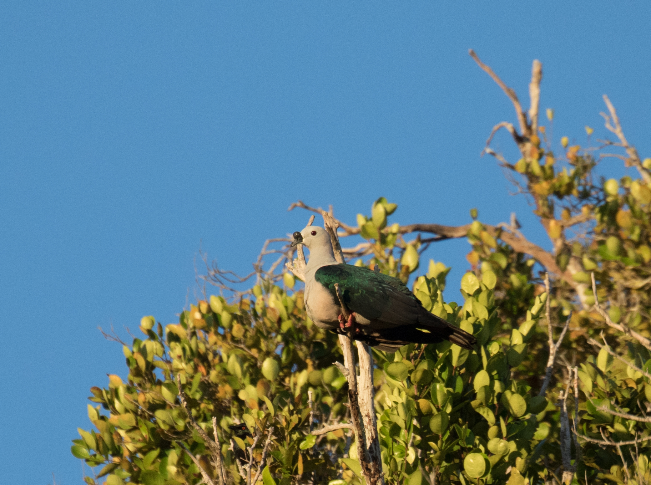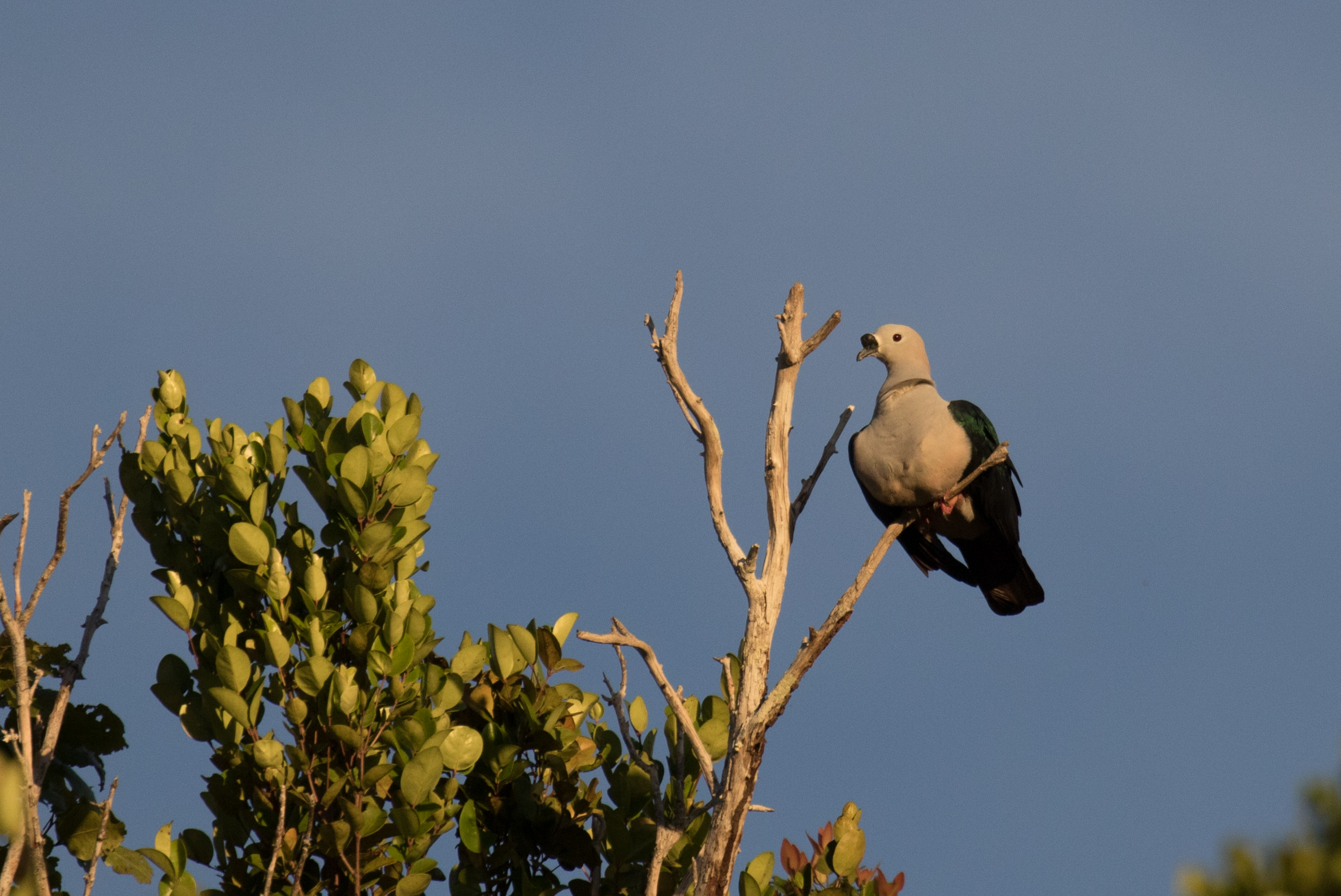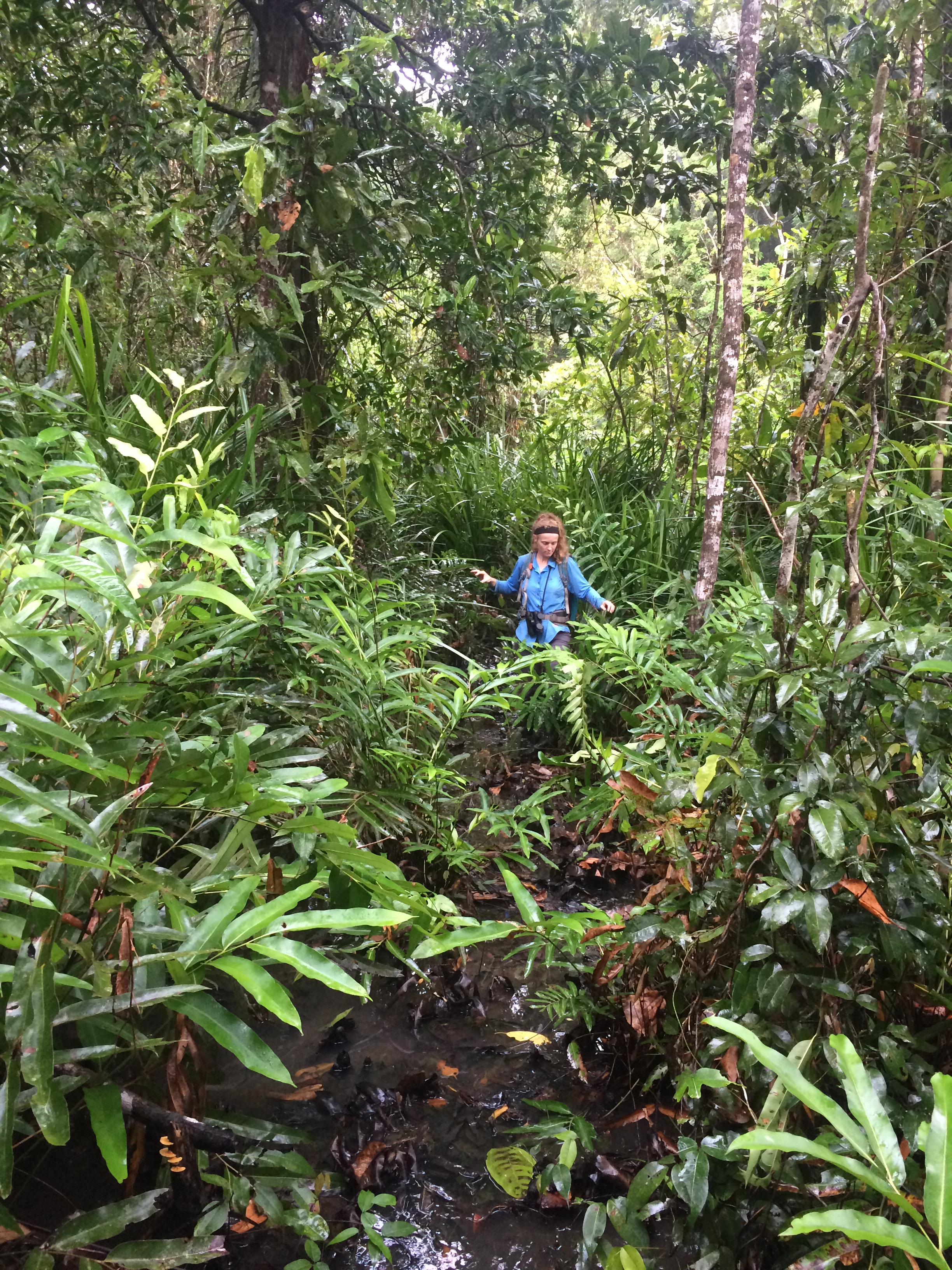 We went back to our hotel room and were happy to report that Stephan and Claudia had arrived in Indonesia and would be meeting us later the next morning for our flight over to Manokwari. The next morning we had a different bemo driver take us to the birding location, drop us off and head to the airport to pick up Stephan and Claudia and bring them to us. Ross and I were super lucky to have views of a Blue-Black Kingfisher perched in the roots of the mangrove trees. (Ross was the one playing tape but I was the one who found the bird and got Ross on it!) This was a good bird for sure and we wanted to not tape too much in the hopes that when Stephan and Claudia arrived we could refind it. Unfortunately we never did, but we did have great looks at Orange-fronted Fruit-dove and Collared Imperial-Pigeon in the scope. Poor Stephan and Claudia only got in a few hours of birding before having to go back to the airport for our next scheduled flight.