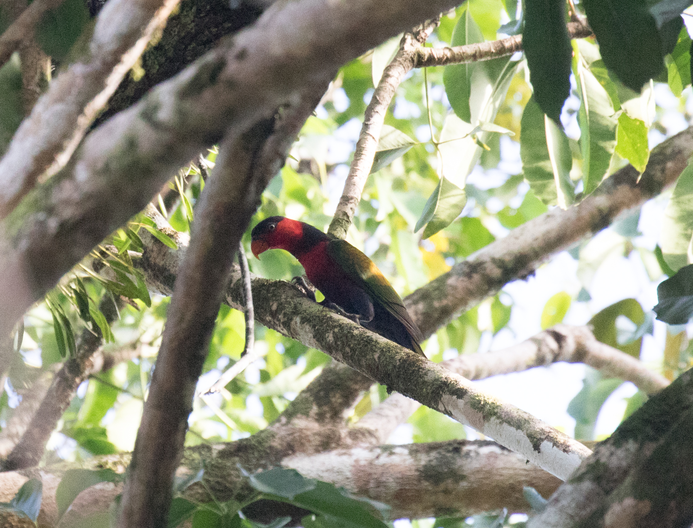 After lunch we headed to what is known as “the lory track” which was essentially a dirt road through a patch of decent forest. It definitely lived up to its name when we found a flowering tree full of lories! We had great views of Black, Black-capped, Coconut, and Red-flanked Lorikeets drinking the nectar from the flowers. Other noteworthy birds should you be interested included Dwarf Fruit-Dove, Yellow-billed Kingfisher (finally seen after hearing a ton in Raja Ampat), Grey-headed Cuckooshirke, and Golden Cuckooshrike. It was a long day of birding for sure and we sort of left a bit early (5PM) so we could get back to town for a good night of rest before doing it all again.