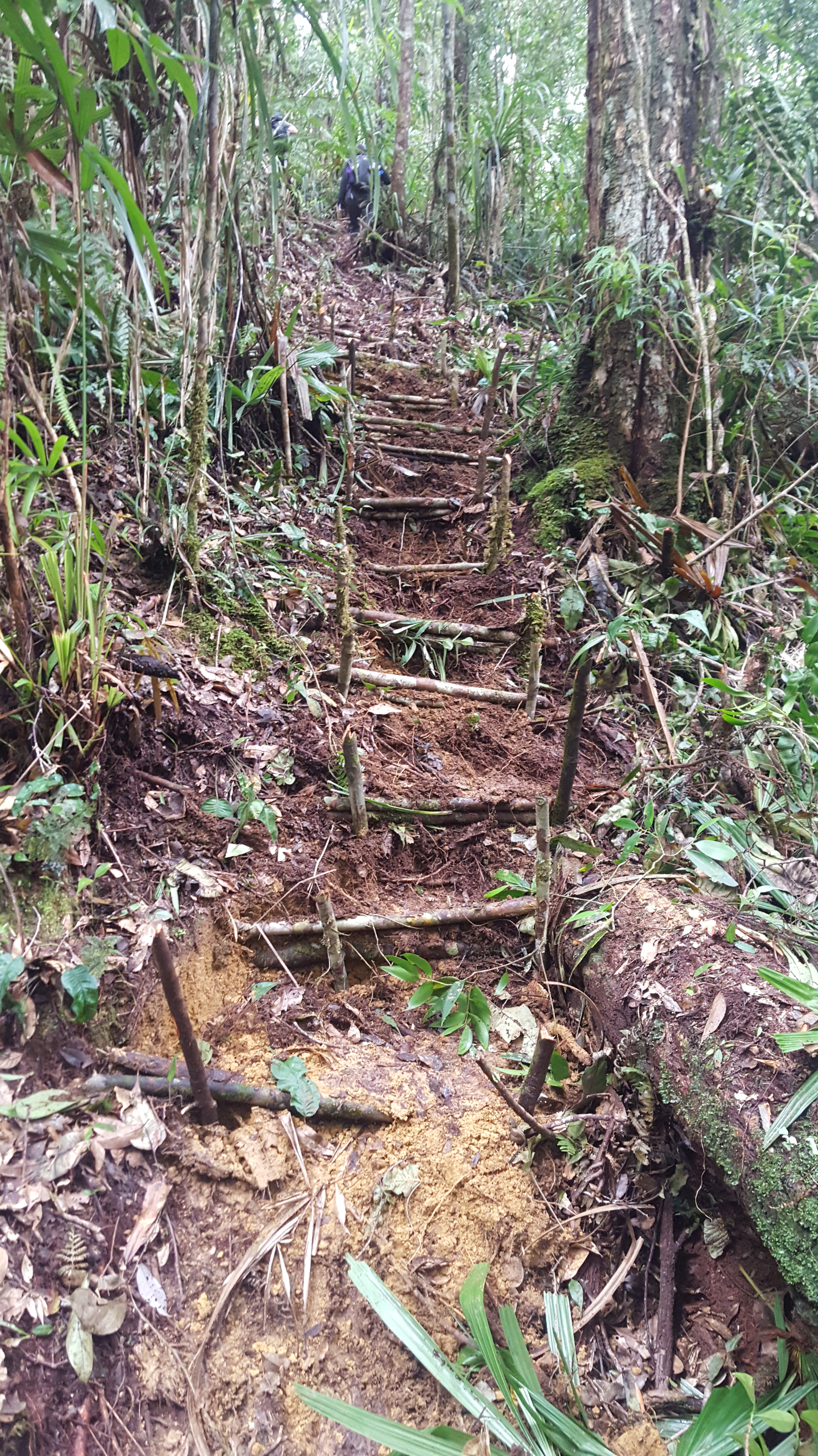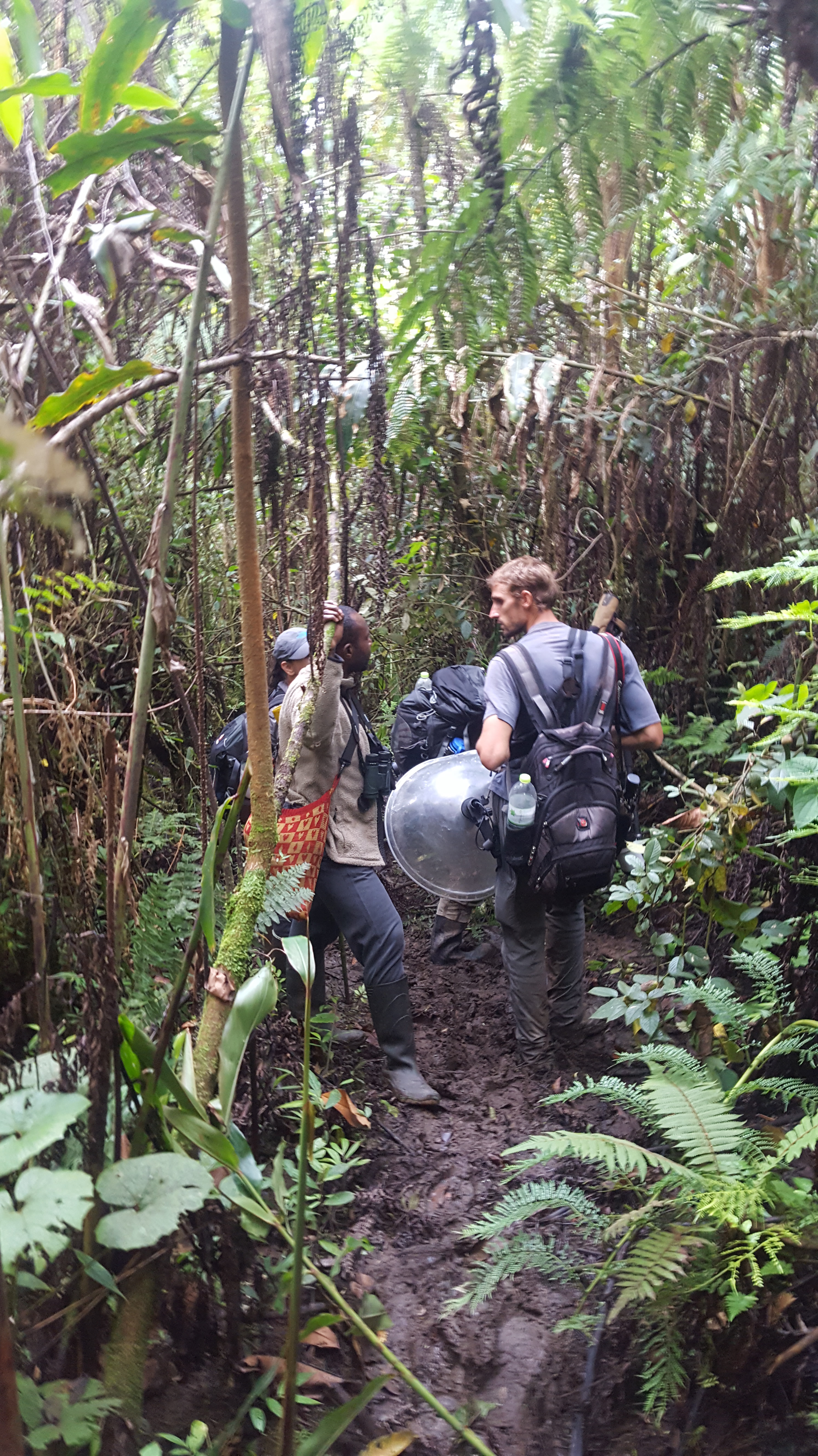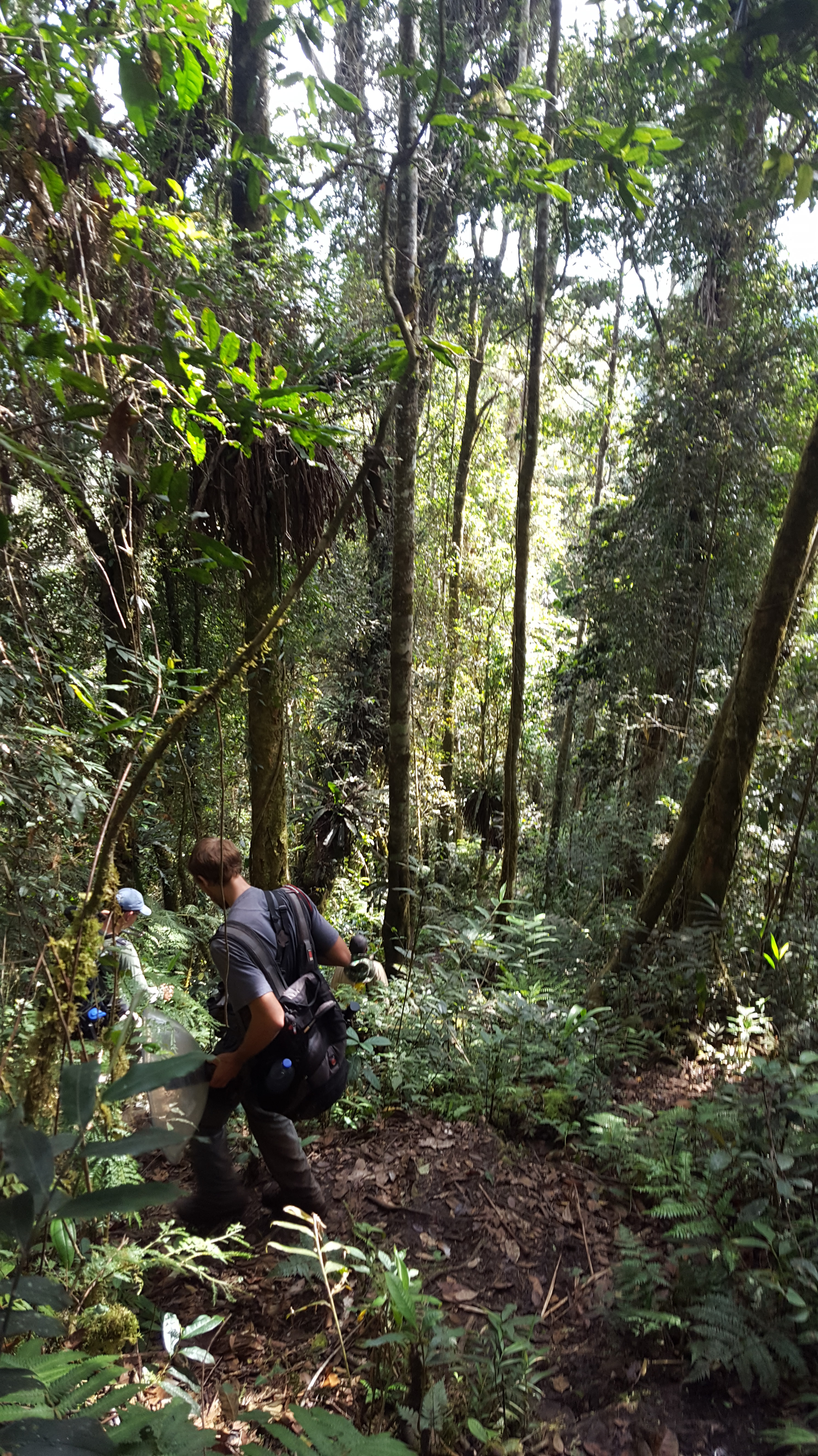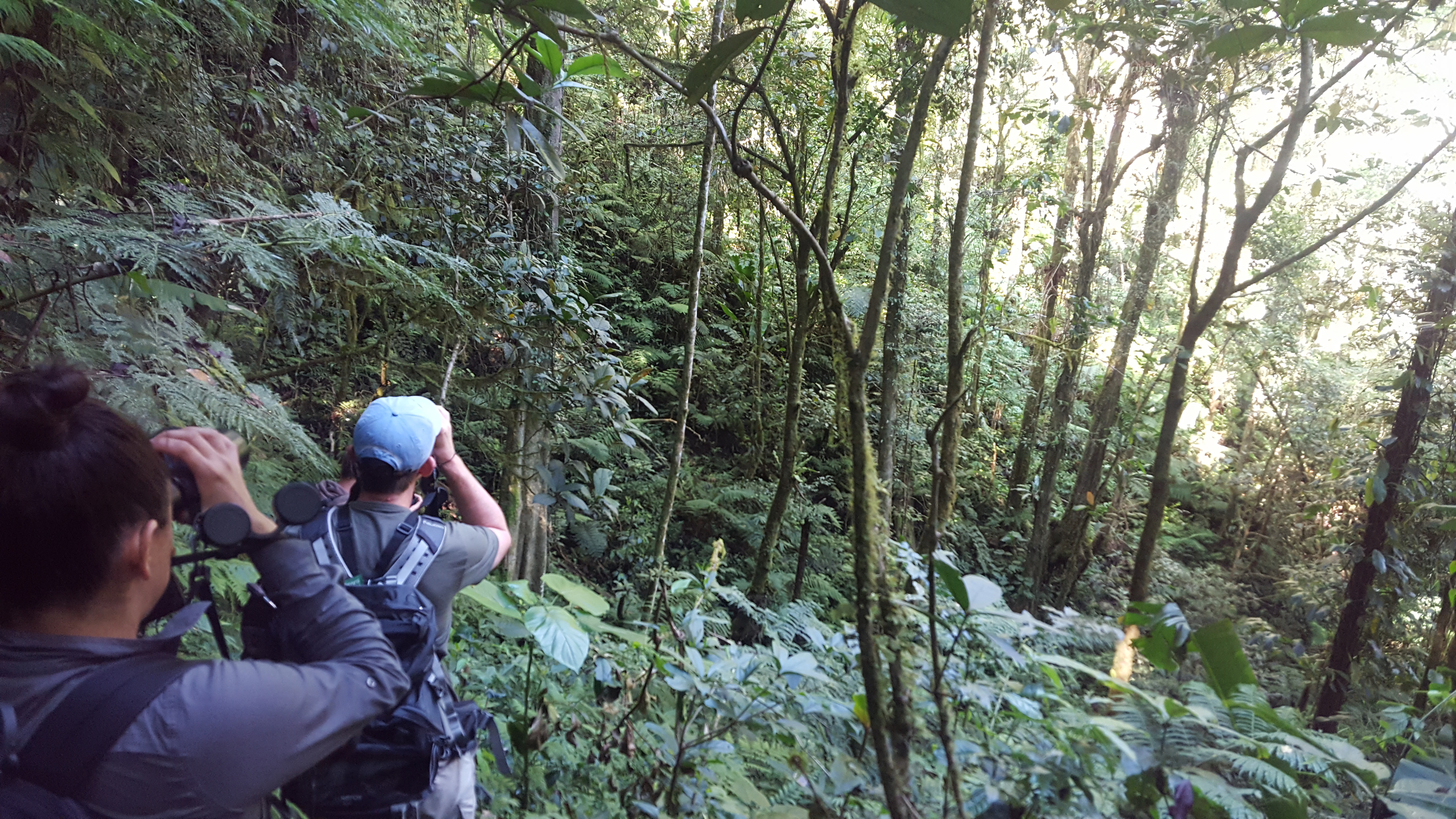 The following morning we headed to a little area called Minggrei. Eliakim for some reason did not accompany us and sent us into the forest with a local man who spoke no English and appeared to not know where to go for the Black-billed Sicklebill. We got to his ‘location’ before dawn and waited until first light for the birds to call but didn’t hear a single sound. We explained to him that Eliakim told us we would be walking for one hour before we got to the spot but he only took us down the trail for 8 minutes. After we continued to repeat satu jam aka one hour he seemed to realize that we wanted to go somewhere else and took us to a different location where we promptly heard a Black-billed Sicklebill call in the distance. Hearing it and seeing it were two different beasts and it took climbing down the hillside and playing the recording that Ross made of the same bird back to it before Stephan finally spots it in a tree. The bird was very responsive but clearly did not want to be seen. The whole time we were trying to the sicklebill the rain was increasing in force. What started out as a very light mist turned to a light sprinkle and then full blown rain.