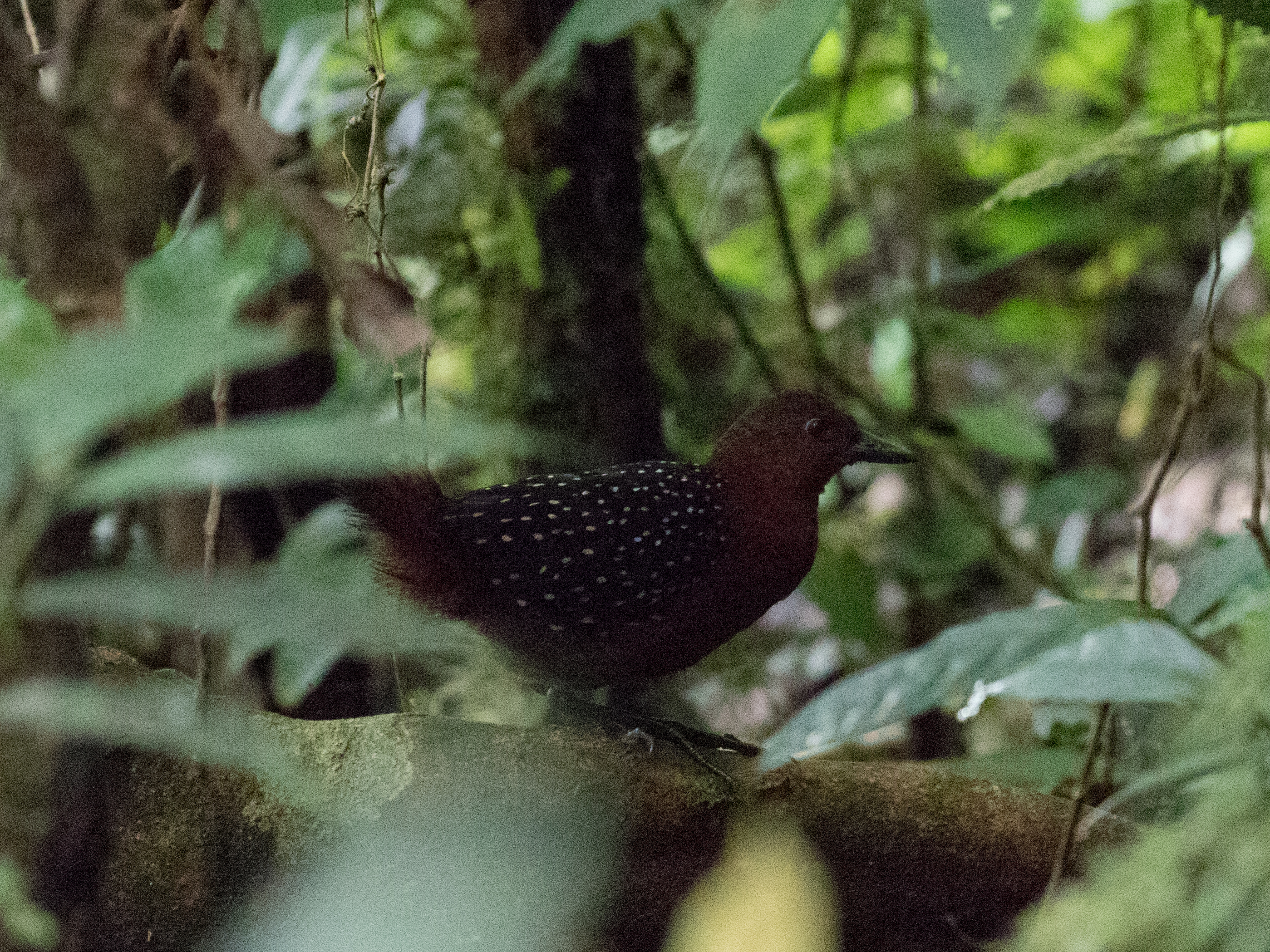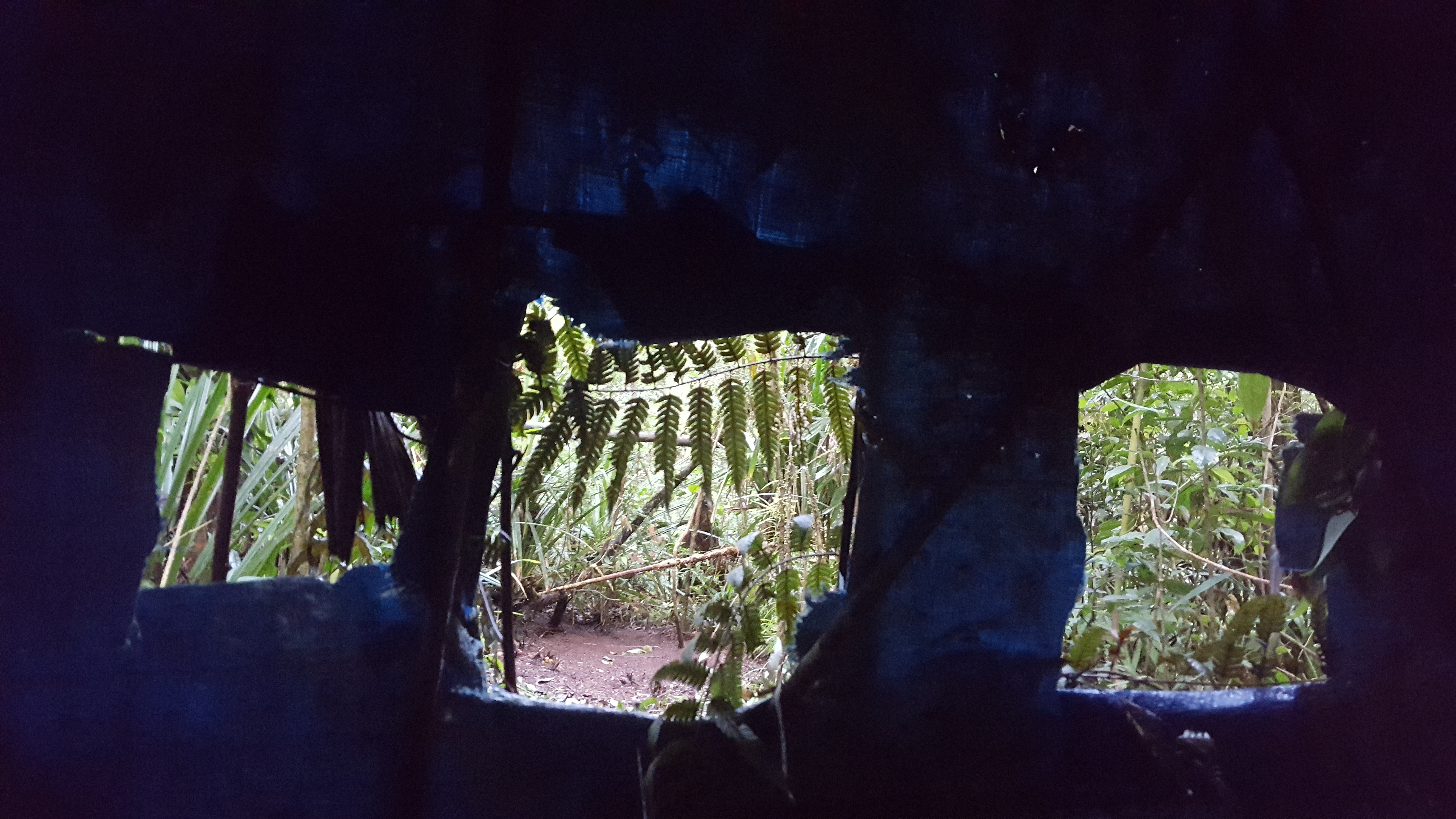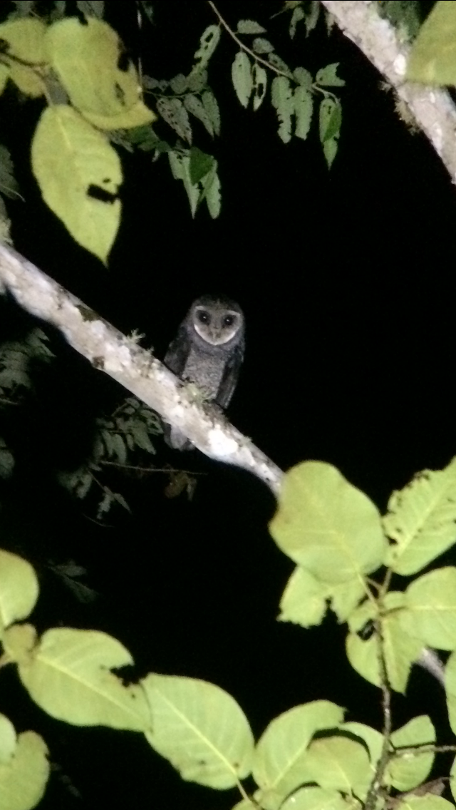 Although we didn’t leave Manokwari until mid-morning, the drive up was very productive was some very good birds including the rarely seen Obscure Berrypecker, the odd looking Vulterine Parrot, and the stunning Masked Bowerbird. It was mid-afternoon when we dropped our bags in the room and Zeth’s brother Eliakim took us out on the trails to get a little birding in. We started our BOP quest by sitting in a blind for Magnificent Bird-of-Paradise. A male Magnificent Bird-of-Paradise came in to make sure his court was clean but did not do a full display. Still, seeing him puff up some of his bright yellow feathers was neat to see up close! We had a Stephan’s Dove come hang out and an unidentified species take a bath in the water from the tarp above us but not much else. Eliakim then took us on to the trail where we struggled to find many more species before dusk, a theme that would become all too familiar is the extremely frustrating forests of West Papua. That night Ross was the only one with enough energy to go owling. According to Ross he was only going to put in minimal effort and therefore did not bring any of his gear with him. Funny then when he had a Greater Sooty Owl overhead calling and perching for photos. When in doubt, digi-bin it! Is that a word yet? Surprisingly this cellphone + binocular combination turned out pretty darn good for what it is, a cellphone photo!