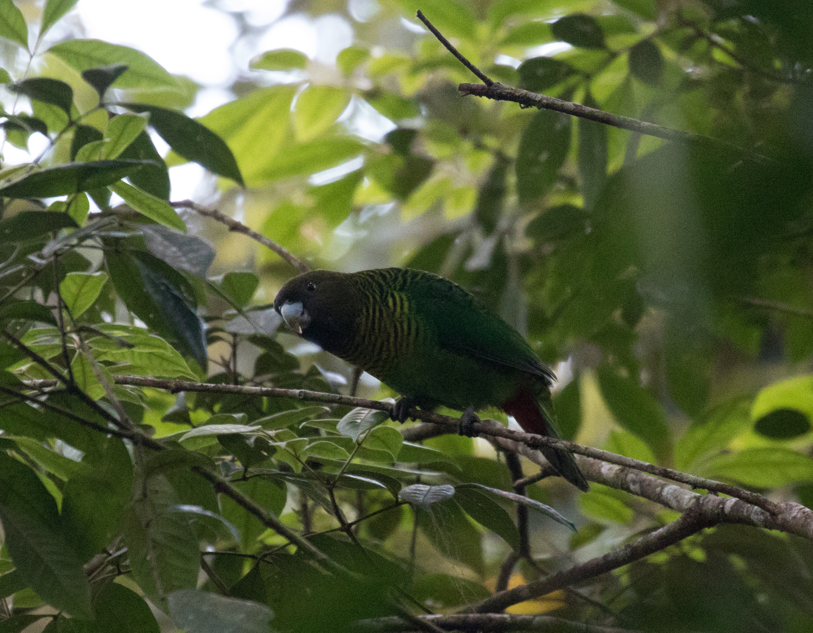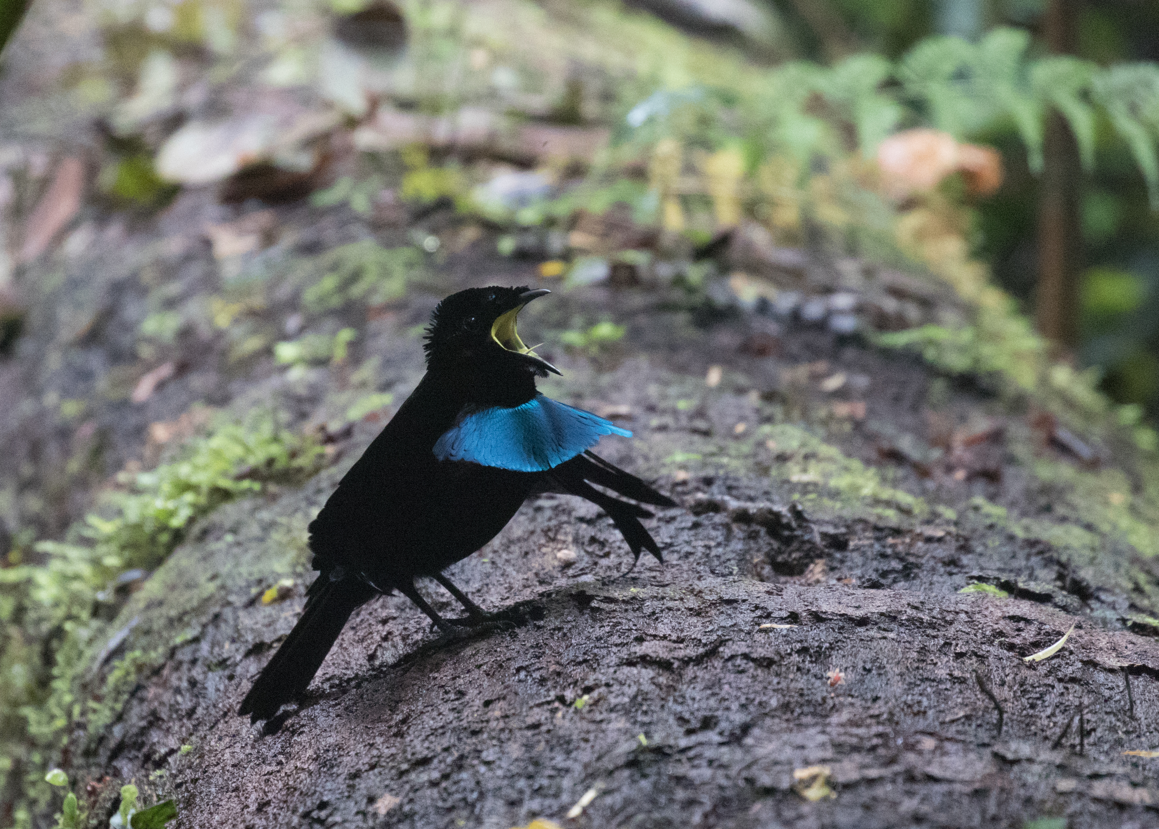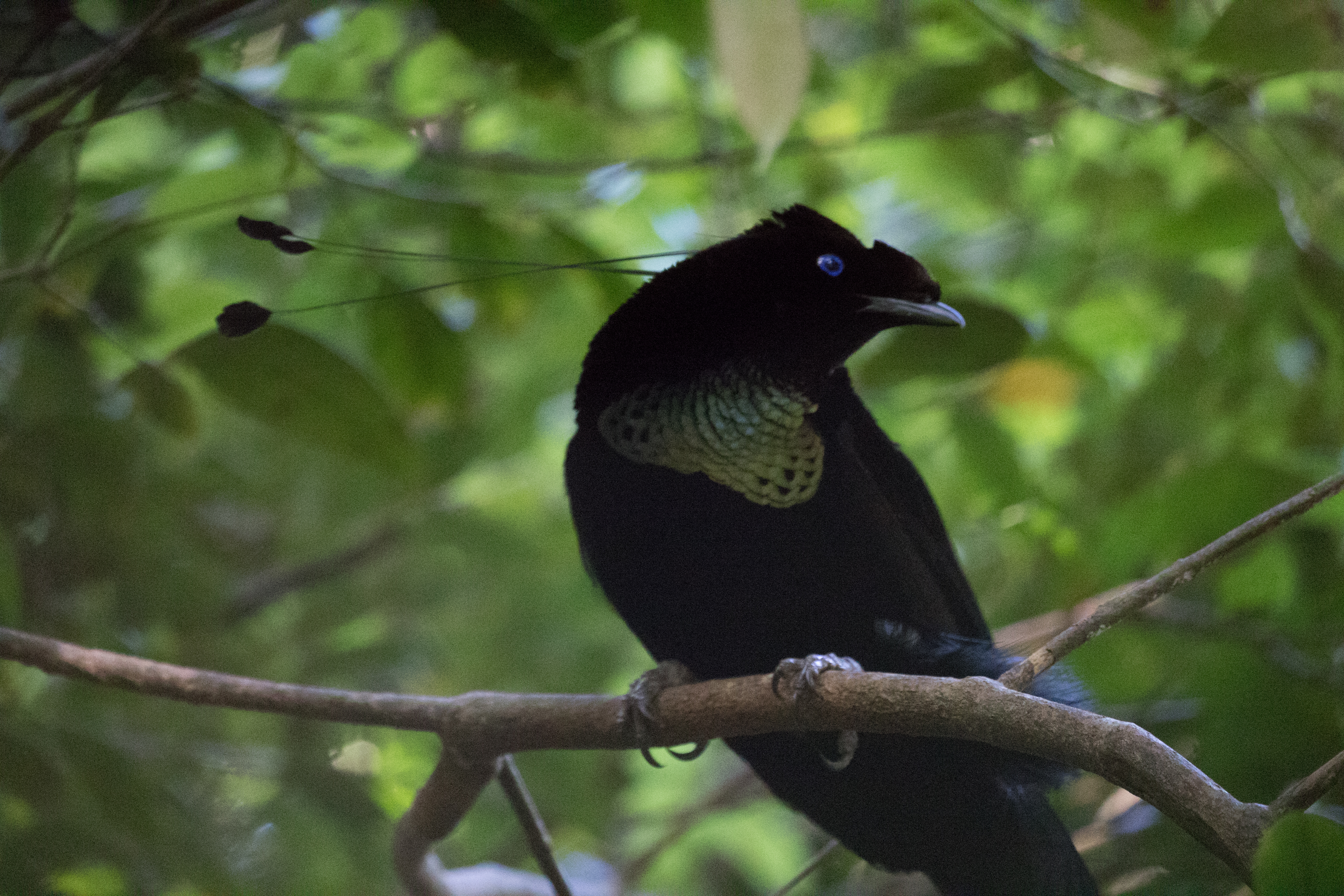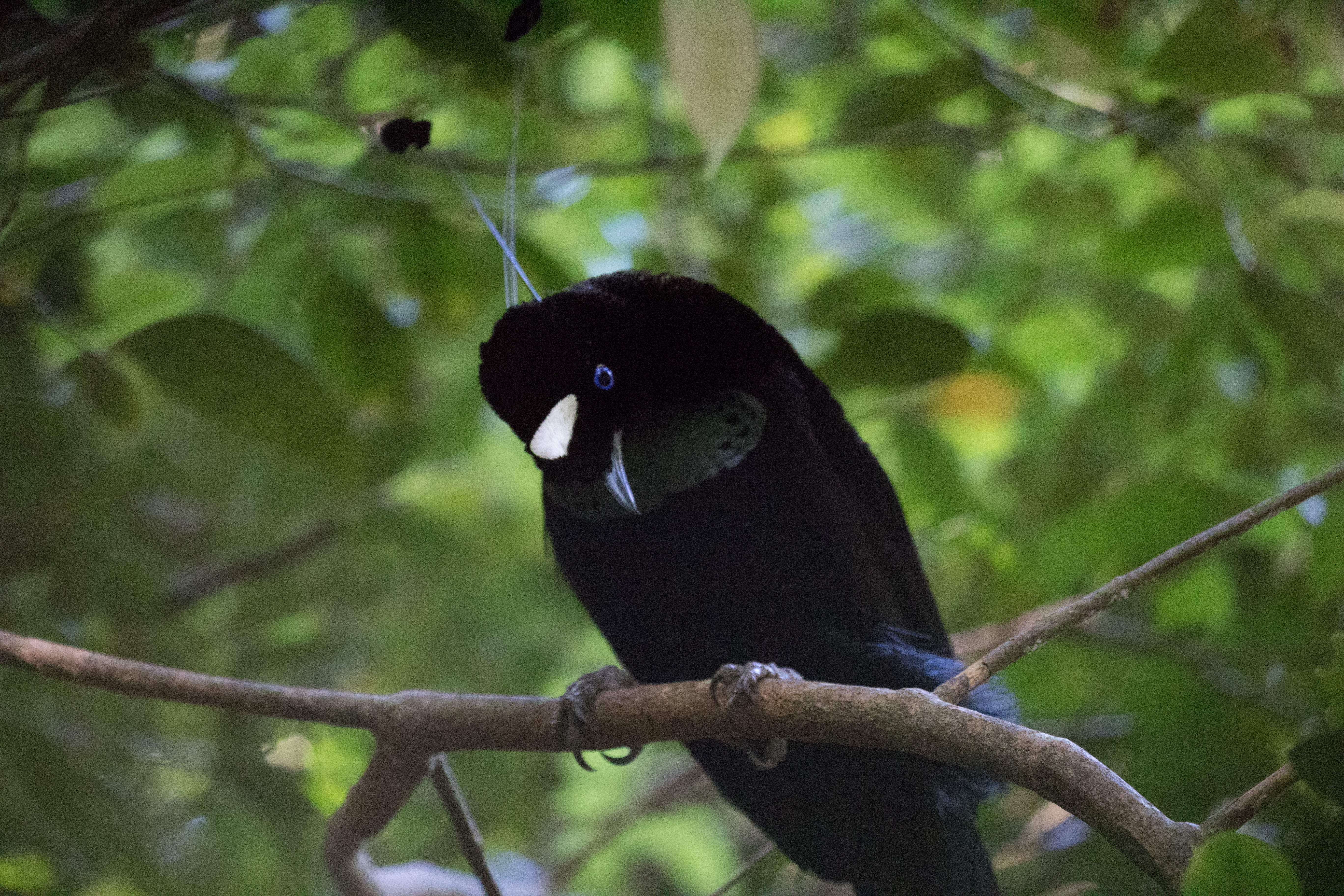 Arguably one of the best birds to get at the elevation of German Camp is Black Sicklebill, a large black bird with a very long tail that displays on the top of trees. There was a group of Korean men filming for a documentary on this bird so they pretty much had the blind booked but we had enough room to sneak in with them and watch as this massive Black Sicklebill came and perched on a broken snag calling at the top of his lungs. He didn’t do any fancy moves but just sheer size and length of tail was impressive enough. From the blind where we sat we also spotted Lesser Ground-robin and had perched views of a Modest Tiger-parrot who came into the exact area where the sicklebill was sitting. From the blind we hiked up a bit higher in elevation to an area known as ‘Japanese Camp’ but this camp is nothing more than a small clearing that may have once served as a campsite. The main target for this area was Arfak Astrapia and after about an hour of looking we finally saw a single Arfak Astrapia. We spent most of the day in the area around Japanese Camp and had a number of other good birds including Brehm’s Tiger-Parrot, Papuan Lorikeet, Cinnamon-browed Melidectes, Regent Whistler, Black-throated Robin, Smoky Robin, and a Spotted Jewel Babbler sitting on a nest. Despite finding many new birds we never had even a glimpse of Dwarf Cassowary which is very shy and very rare.