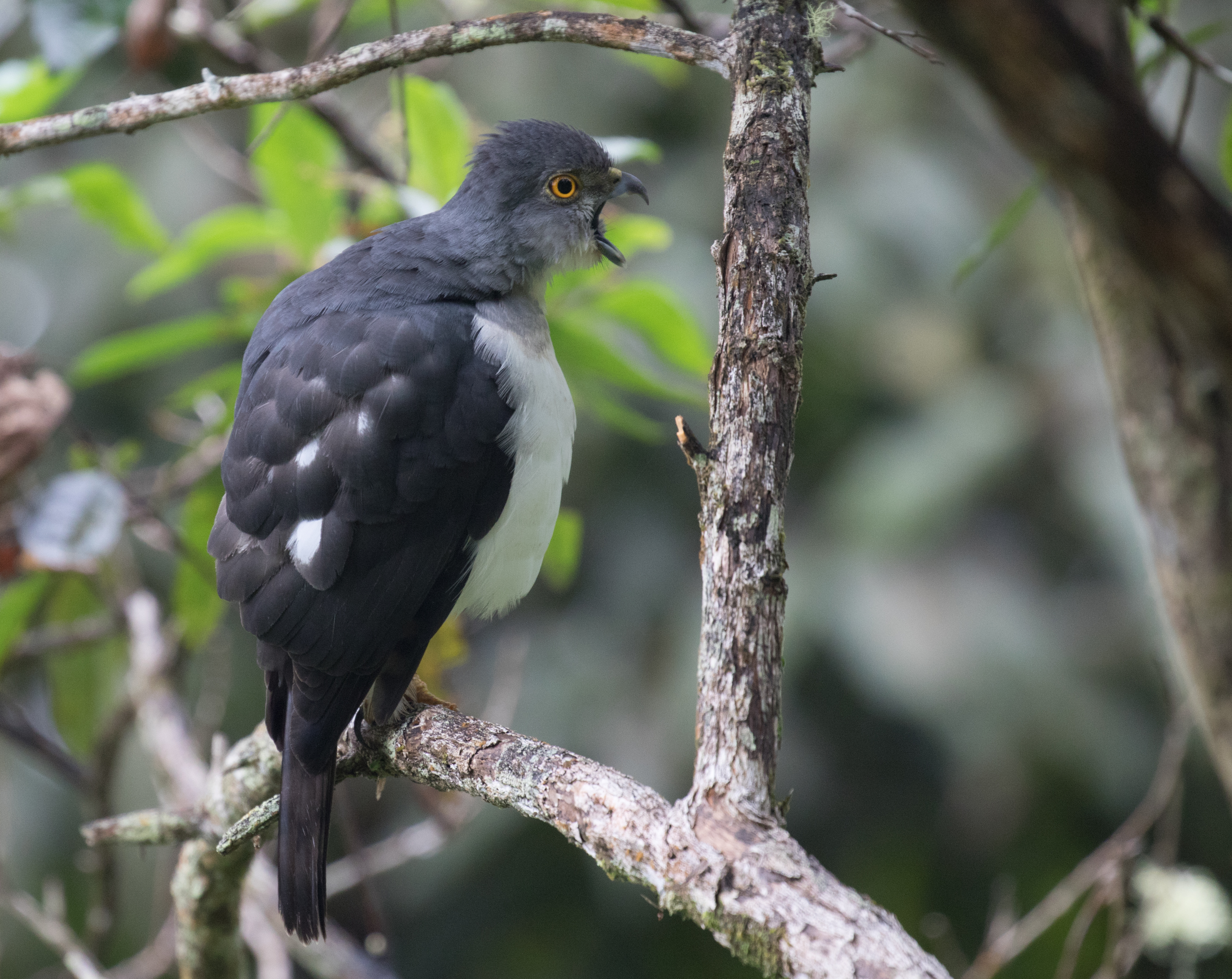 0330 came quickly and as we departed the hotel, the disco that had been raging all night was still going strong. We arrived in Moya about 30 minutes before first light and quickly made our way up the trail in the dark in hopes of trying for the scops-owl before dawn. We got to the spot where Patrice had seen it the week prior and after a little bit of playback, an Anjouan Scops-Owl called back loudly and landed on a nearby branch. We were able to get great looks, but unfortunately I wasn’t able to get a picture. As dawn approached, the owl moved off to roost and we walked another 25 meters up the trail to an overlook to spend the morning scanning for Anjouan Sparrowhawk and Anjouan Cuckoo-Rolloer, arguably the two rarest birds on the island. As we sat around playing tape and scanning, we started to find a few of the more common endemics such as Anjouan Thrush, Anjouan Sunbird, and Anjouan White-eye. We were pretty surprised when we heard a sparrowhawk start to call (after all this bird was considered extinct just a few years prior) and soon we had tracked down a pair of Anjouan Sparrowhawks in the valley below us. We were quite excited by the find and luckily this pair ended up hanging out in the area all day long providing amazing views at times only 10 meters away. Below are arguably the best photographs of this species.