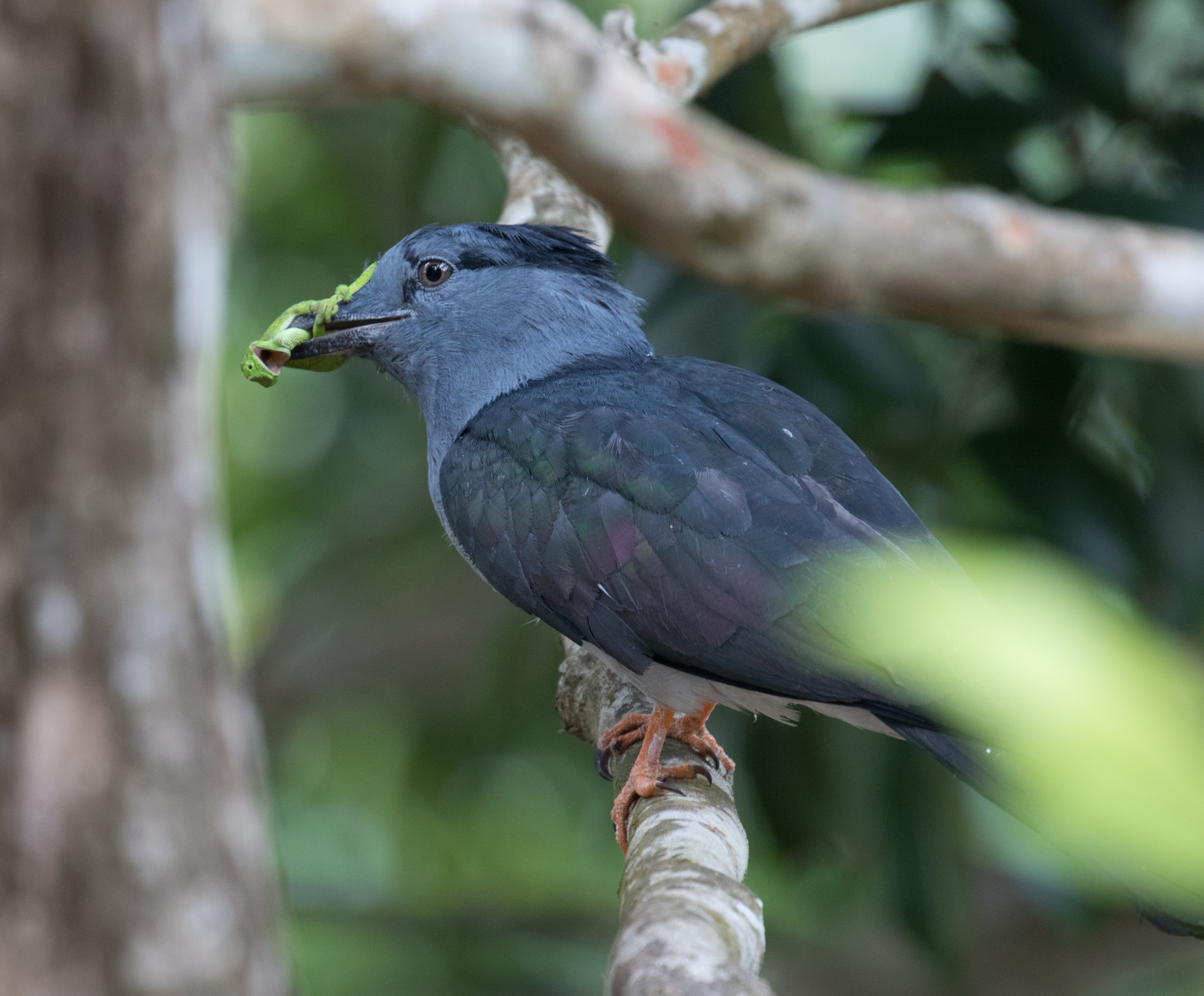 It had been raining off and on since daybreak so by late morning we decided to head back down to the road in order to take a midday break and then return for the afternoon and evening (hopefully with improved weather). On the walk down, we finally heard the distinctive call of the Anjouan Cuckoo-Roller resonating from the valley below us. We hiked down a side trail and soon had point-blank views of a male Cuckoo-Roller calling loudly. Having now seen all of the island’s endemics except the rather lackluster fody (who would have thought this would be our hardest bird?!) we decided to head down to our hotel for lunch and nap. We took about a three hour break and then headed back up to the trail to look for the fody.