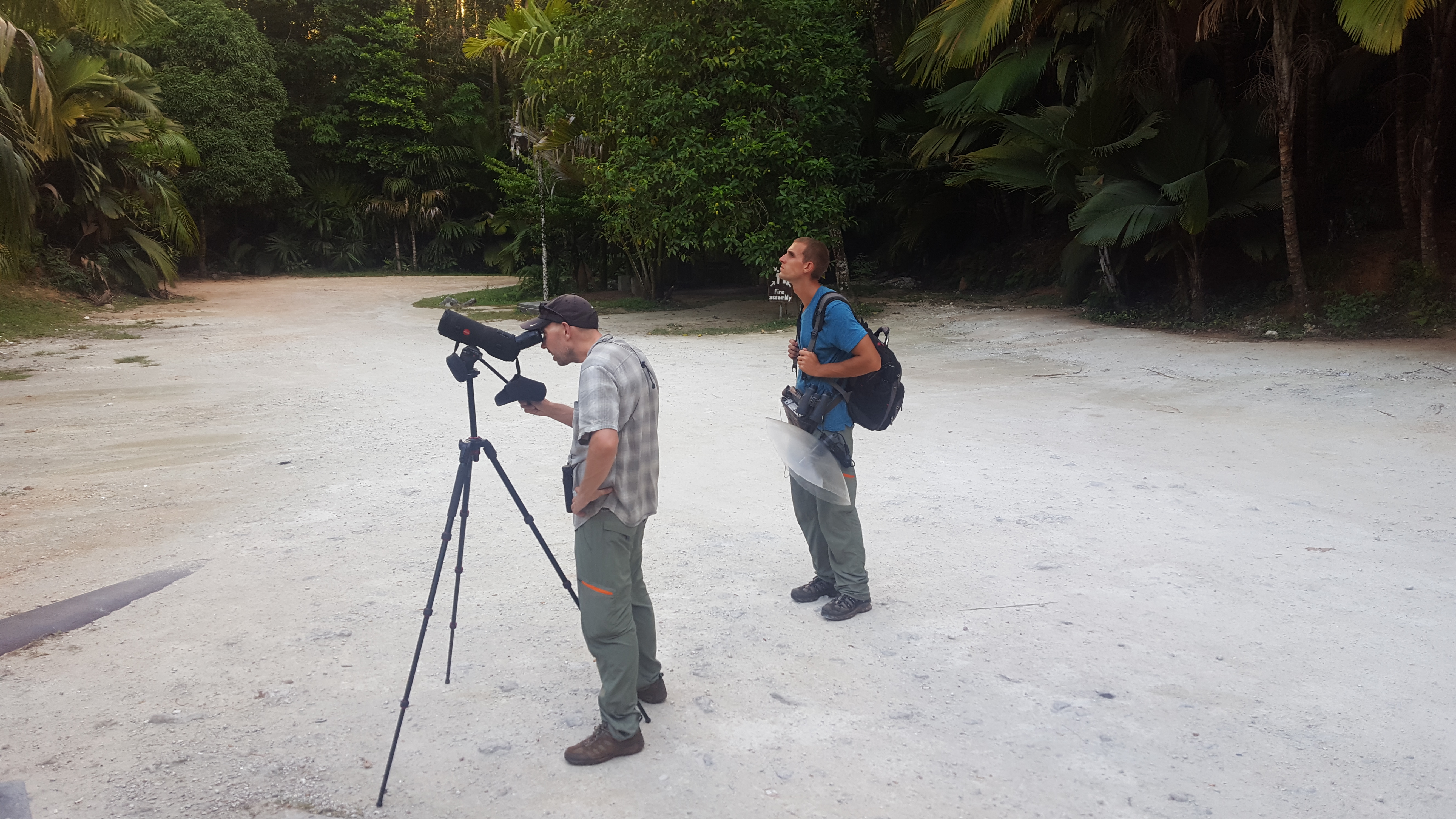 We arrived back on Mahe having seen all of the target birds on our first stop. The birds that people found difficult and missed, we didn’t have any trouble with. So for now, our only plan was to check in to our AirBnB and pray that the wifi actually worked so we could get caught up on some much needed research. Oh, and squeeze in another beach. We opted to rent a car for one more day so we could have a little more freedom to get around. Papaya guesthouse is located along the same cross-island road as the Seychelles White-eye, a convenient place for us to stay if we didn’t have a car and wanted to walk to the white-eye. We dropped our bags off at the guesthouse, and soon thereafter got back in the car driving along the southern edge of the island stopping at whatever beaches caught our eye. We scanned for shorebirds as much as we could and picked up the likes of Common Greenshank, Ruddy Turnstone, Black-bellied Plover, and Whimbrel. We ended our afternoon in the exact same location as where we slept on that first night, the Mission Lodge Historical Site. We knew a pair of Seychelles Kestrels roosted in an overlook shelter, we just didn’t realize it that first night. We decided to go back and proceeded to watch the sun set and the birds go to roost. We had views of a single Seychelles Kestrel perched up on the rafters for bed. Unfortunately he never called and Ross never managed to get a recording of this species. That night we went back to our homestay, ate a quick dinner and went to bed.
