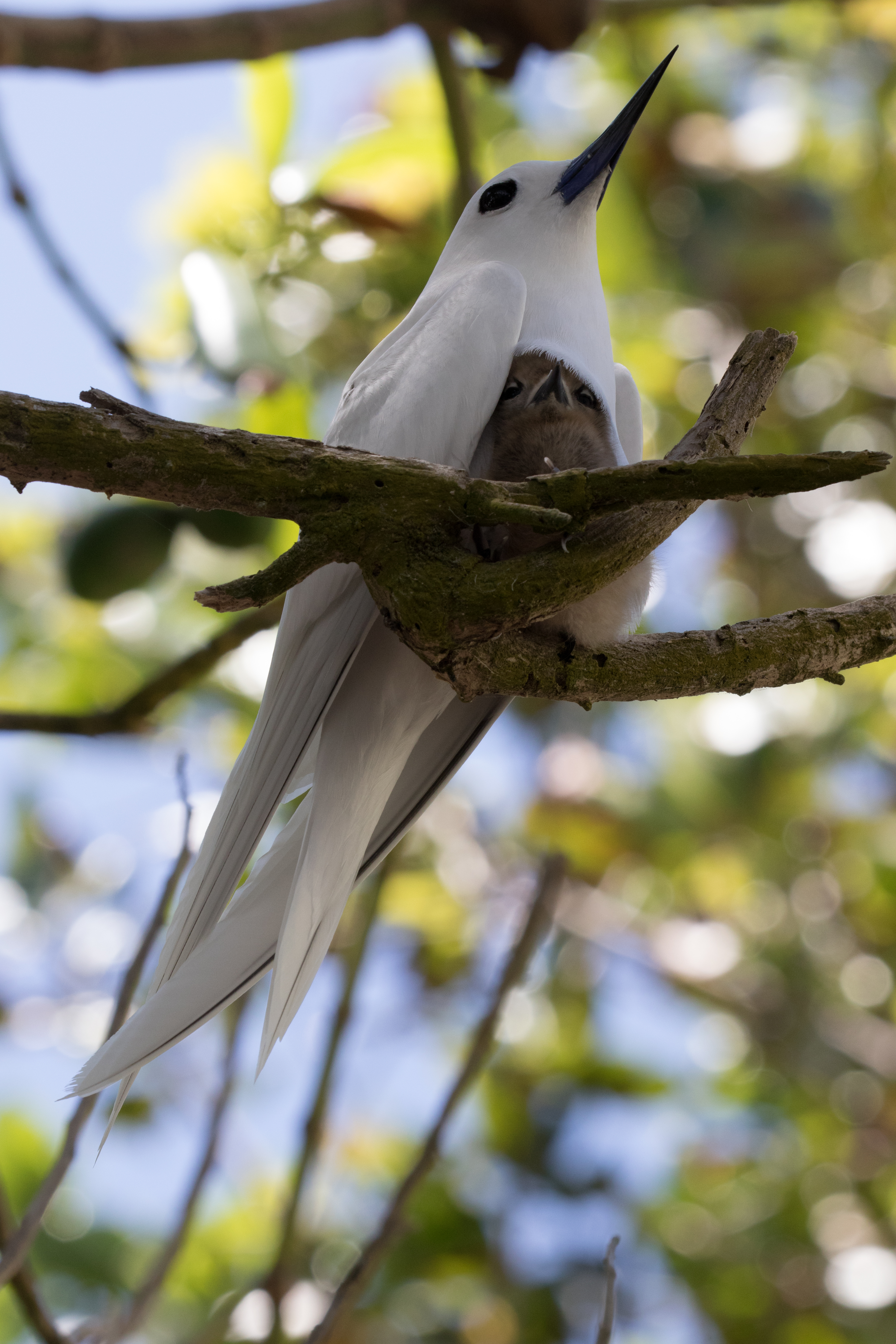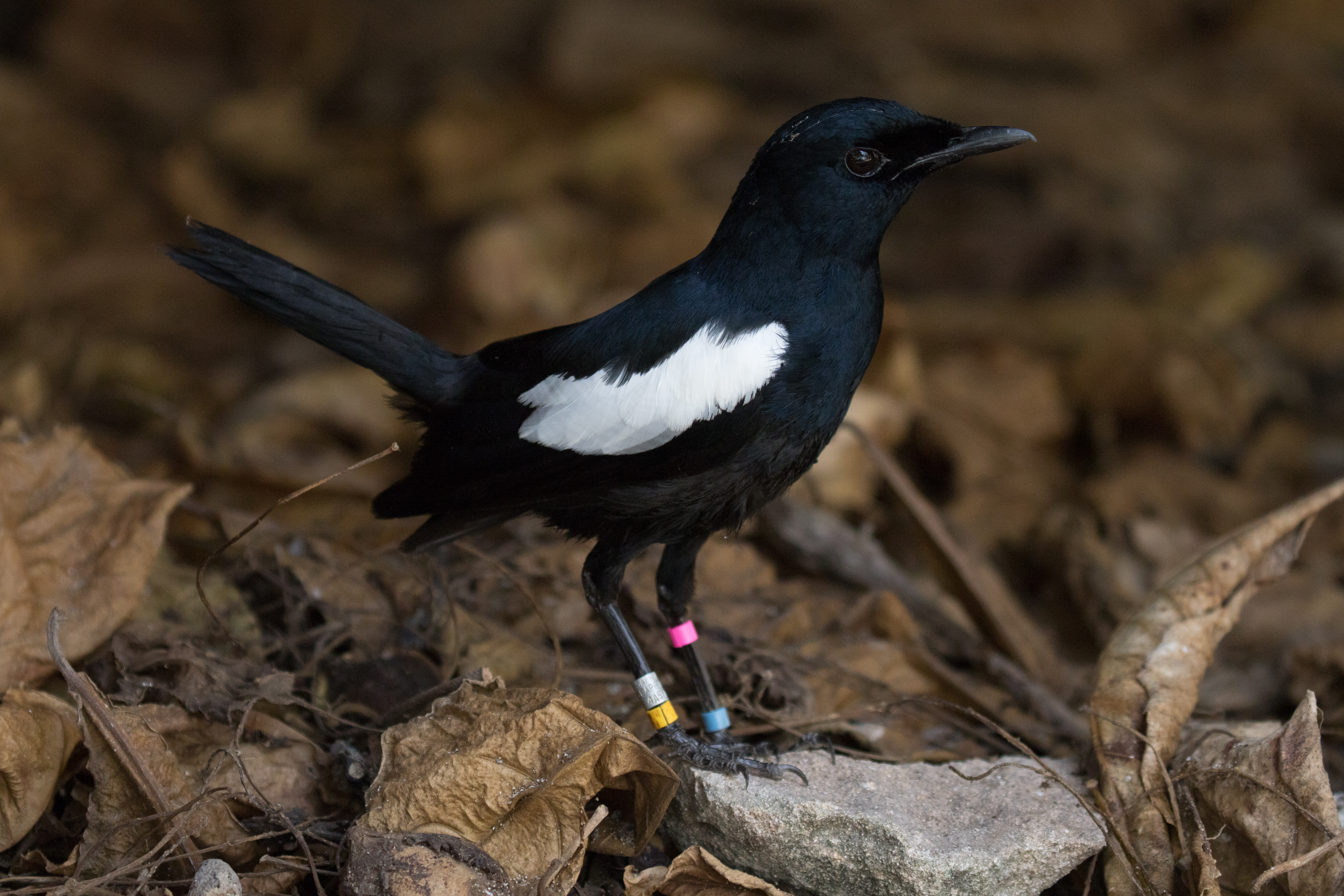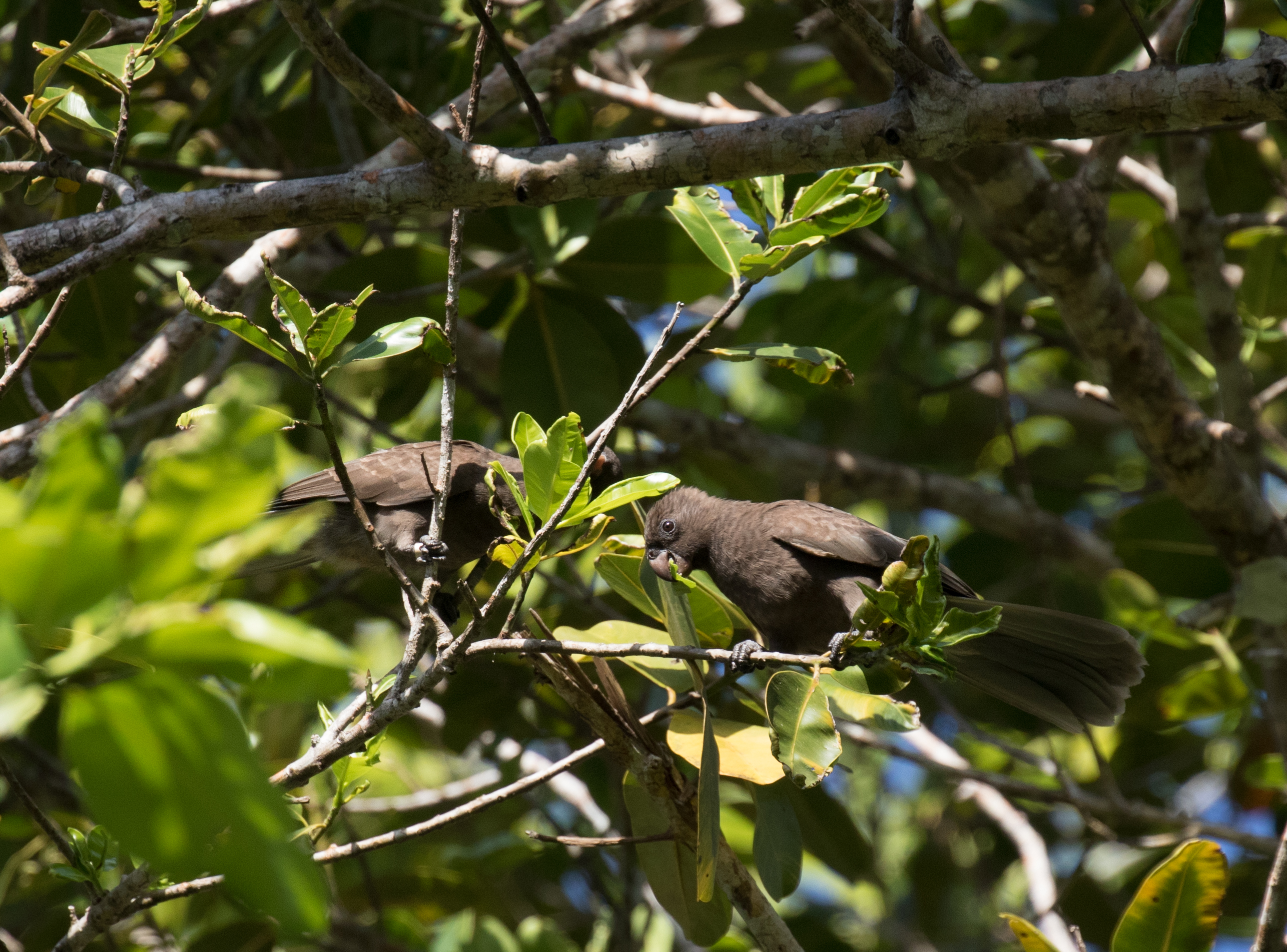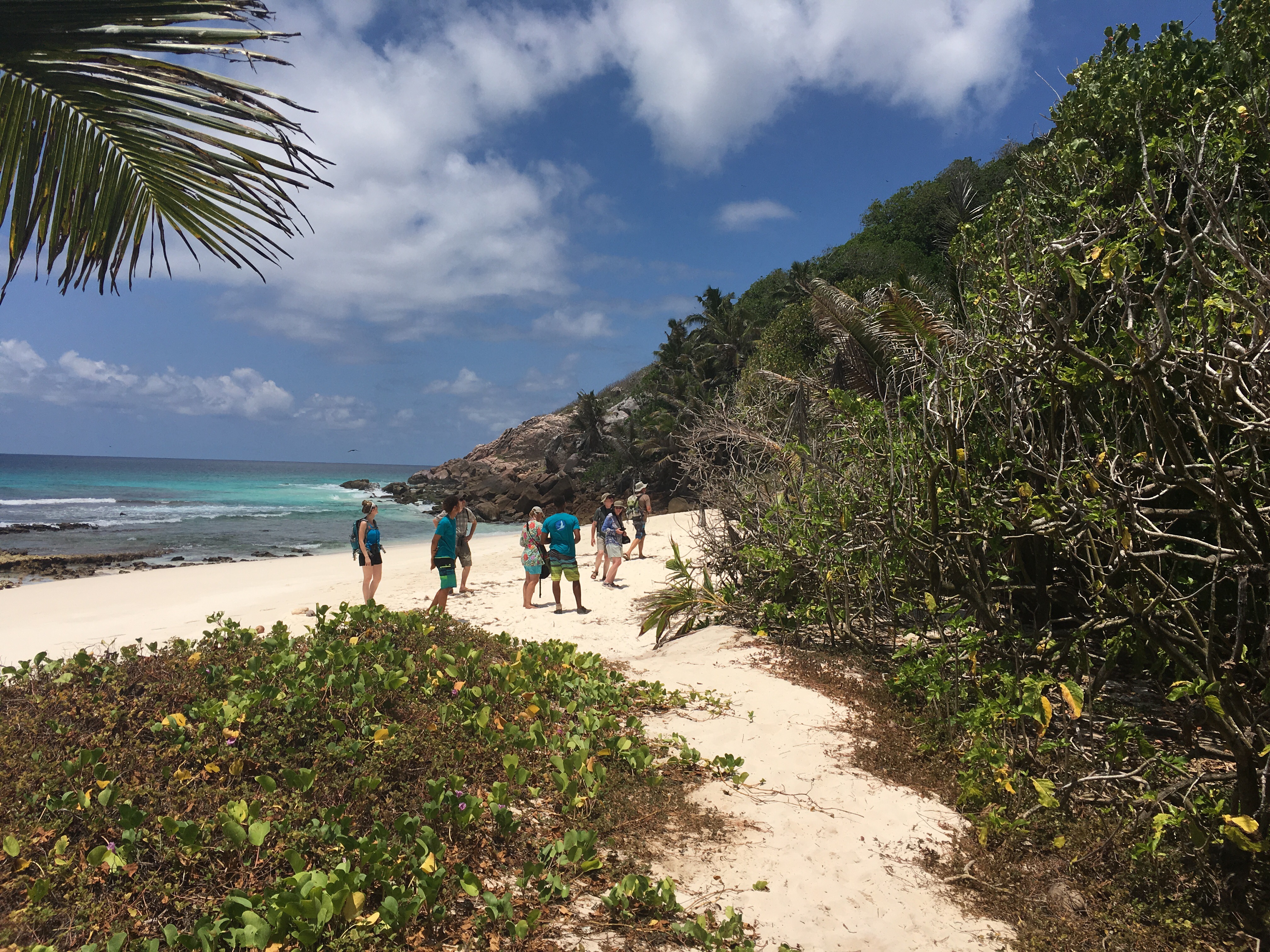 The ups and downs of the Aldabra conversation made the already quick 20 minute boat ride to Aride that much faster. Before we knew it we had arrived. Thankfully making good time because if you are late they often will not even let you come on to the island! There are no docks on Aride so the only way to land is via beach landing. The orange raft that came and picked us up boatside soon was charging full speed ahead at the white sandy beach of Aride. Once we arrived, we joined a small intimate group as we toured the nature reserve. It really was better than we had imagined. Nesting seabirds numbered into the hundreds of thousands and along with Brown Noddy, Lesser Noddy, Fairy Tern, Sooty Tern, White-tailed Tropicbird, Great Frigatebird, Lesser Frigatebird, Wedge-tailed Shearwater, and Little Shearwater, we did have our target LBJs (little brown jobs), Seychelles Fody and Seychelles Warbler. Seychelles Magpie Robin, whose numbers on the island sharply declined to only 10 individuals a few years ago, are now being raised in captivity and released as adults. These black and white birds were very friendly and allowed us to get very close. They were however silent while we were there (likely due to time of day/time of year), so xeno-canto will have to wait for some other hardcore recordist to get the first ever public recordings of this species.
