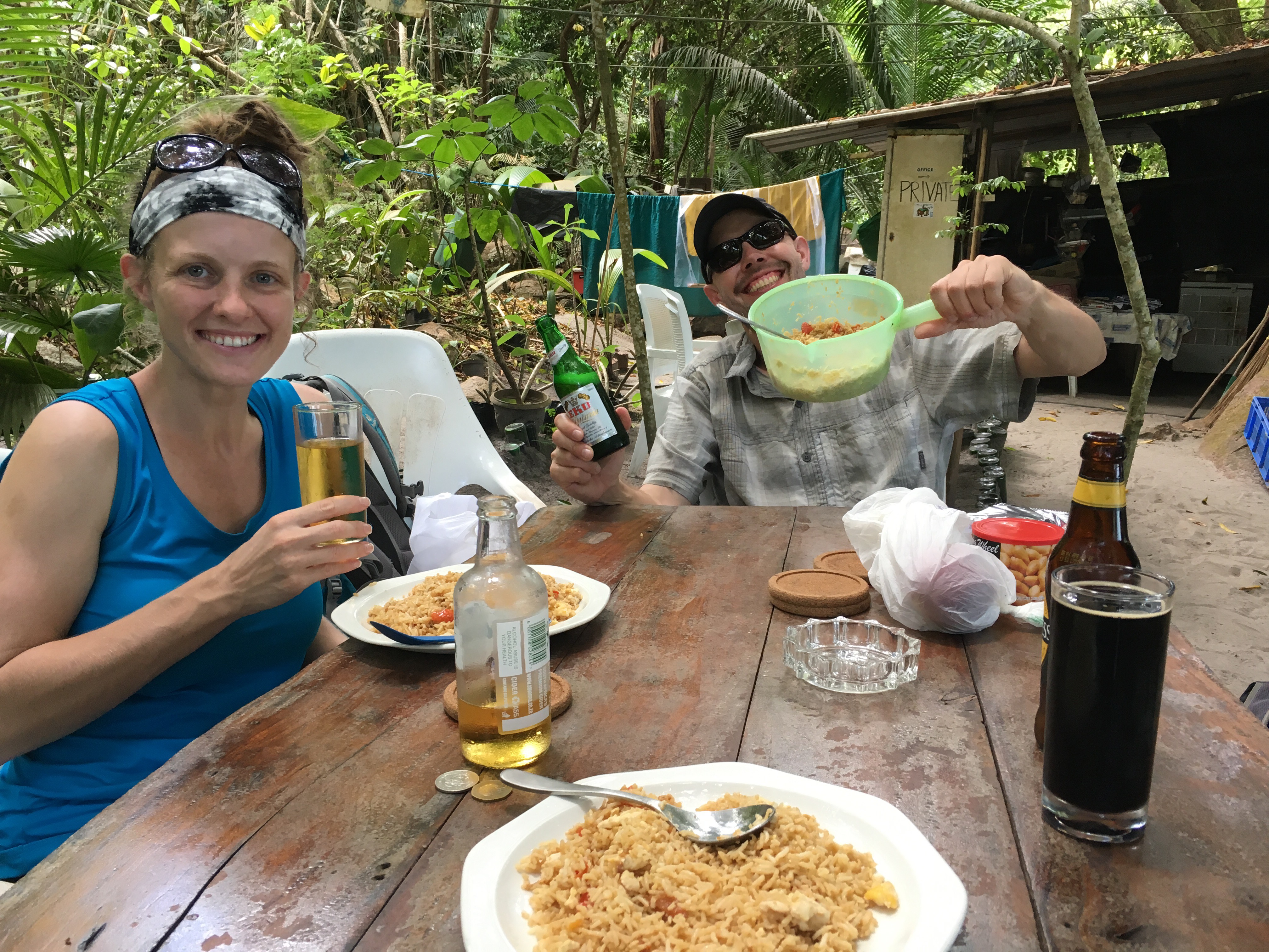 That afternoon, from the main town of Victoria, we took a ferry to the island of Praslin. As I mentioned, accommodation can be rather expensive, but when you book through AirBnB you can often stay for much cheaper. Ross found a small house along the same road as Valle de Mai, a birding location, and booked a room. This location likely wouldn’t be ideal for many tourists but because we needed to see the endemic parrot that is most commonly seen at Valle de Mai, it was perfect for us. We arrived, dropped of our bags and took a bus up to the park where we found that standing in the parking lot across from the reception center was more than sufficient to tick Seychelles Black Parrot and from there we also managed to see Seychelles Kestrel. That night we headed back to our AirBnB and cooked up a lovely fried rice dinner. The sautéed vegetables and chillies made the whole house aromatic. If you’ve ever cooked with chilies before you know that they can permeate the air. Although it smelled delicious, we effectively had smoked out our AirBnB co-habitants! We had to laugh but dinner was super yummy.