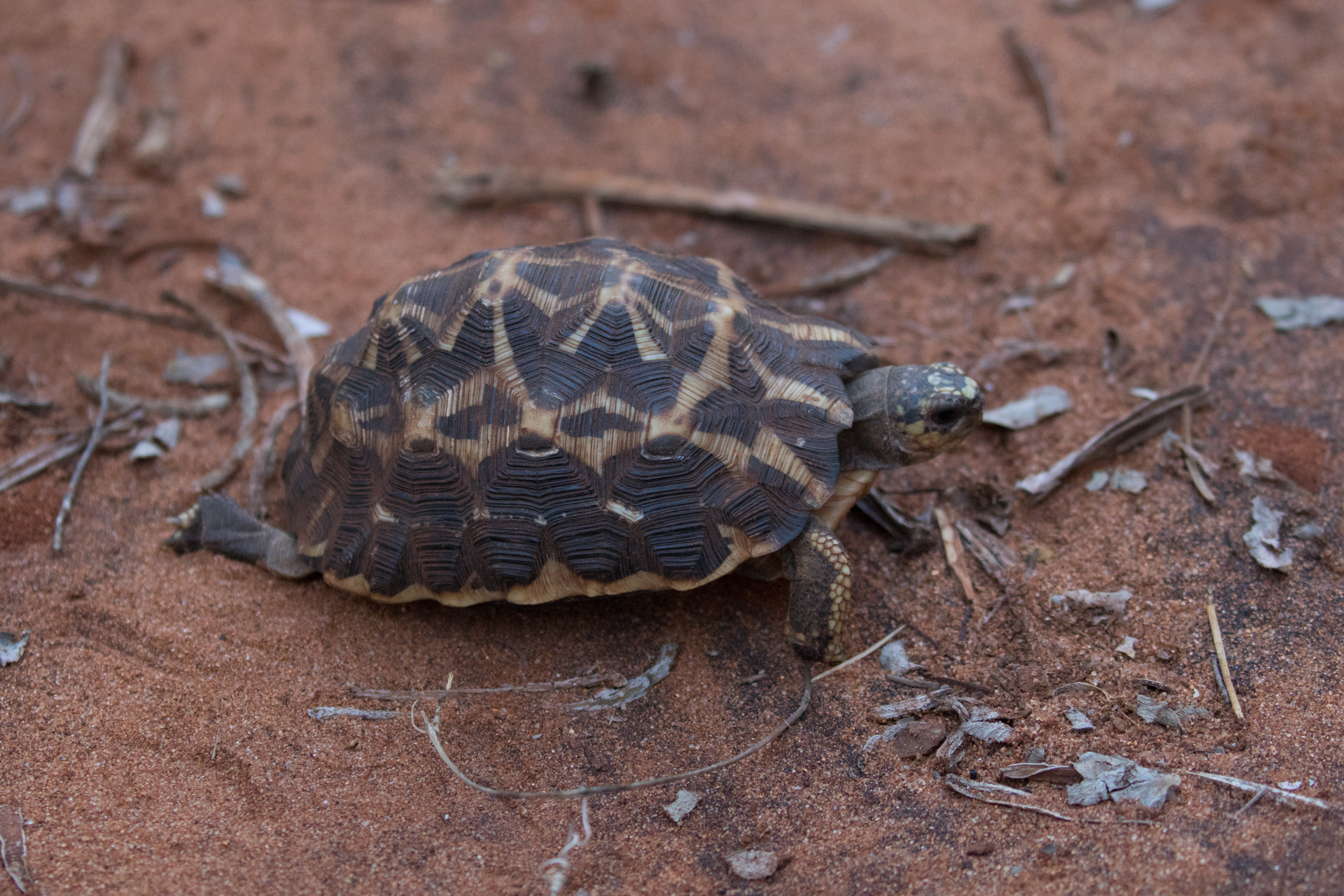 Ross and I did a walk that first afternoon and soon were joined by Josh but Geoff opted to stay back and rest, fully cashing in on this reprieve from long days out in the field. We didn’t see much but did have nice views of a nesting Madagascar Cuckoo Hawk. Our guide showed us to the trails and we had nice views of Giant Coua and learned that not much conservation is being done with the native species. Apparently several dozen Spider Tortoises and RadiatedTortoises are kept in pens but are never re-released to the wild. Also two crocodiles are in small cages and there’s been rumors that the owner at one point wanted to bring in Gorillas to really add to his zoo. Thankfully that horrible idea never came to fruition. After our walk about where we had views of Madagascar Flying Foxes (large bats) and day roosting Totoroka Scops-Owls, we took a break for lunch and met back up that afternoon to visit the spiny forest and search for Running Coua. The spiny forest at Berenty was not nearly as picturesque as the forest in Andohahela but was enjoyable nonetheless. Perhaps this was due to the fact that the octopus trees weren’t greening up yet. We managed sightings of a Subdesert Brush Warbler before finally catching up with a Running Coua, which Geoff and Josh had seen in Andohahela but Ross and I still needed to see. The evening ended with views of slightly more wild Verreaux’s Silfakas, and rarest of all a wild Spider Tortoise! Only very lucky visitors will stumble upon one of those, or so our wildlife guide book says.