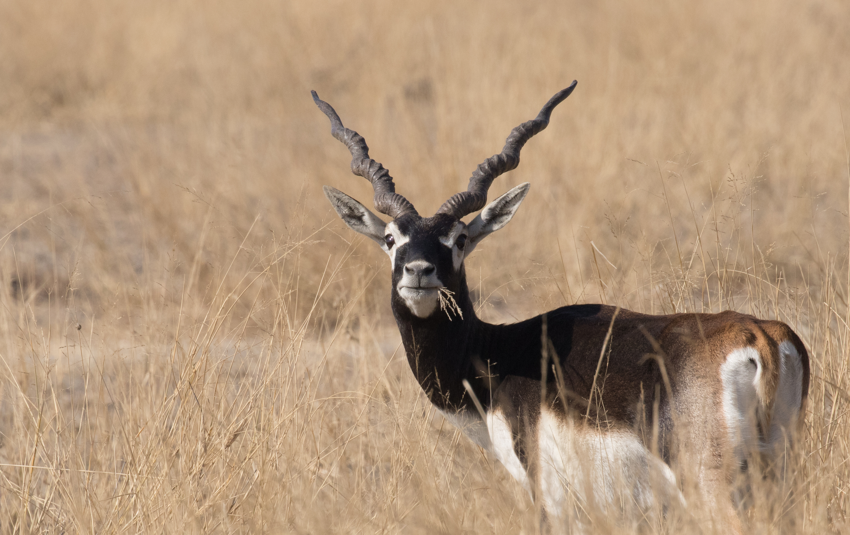 Our next target on the agenda was Indian Spotted Creeper, an Indian endemic with a patchy distribution in central India. Once we arrived, we spent our morning walking around a sandy habitat bordering a small village of houses searching for our main target, Indian Spotted Creeper. The birds are known to occur amongst Khejri Trees (prosopis cineraria) where they feed on insects found in the bark. We were very fortunate to have one fly by somewhat early on, although at the time we weren’t sure if it really was what we thought it was, so we spent the better part of another hour or two attempting to relocate it for much better views. Eventually Julien ended up spotting a bird in almost the exact same spot we had first seen one and in the end the Indian Spotted Creeper showed quite nicely on a heavily pruned Kherji Tree. Why the locals completely annihilate the branches and turn the tree into nothing more than a stump with a few limbs is beyond me. Makes for good firewood I guess? Over the course of the morning we accumulated quite a following of local children as we walked and we did our best through charades to explain that this bird was special in their area. In fact, I wouldn’t take a selfie with them until they took a picture of the Spotted Creeper page in our bird book so they could remember the special bird found in their backyards. Truly the Indian people are some of the nicest I’ve ever met. Some other highlights from the area included Yellow-crowned Woodpecker, Spotted Owlets, Rufous-fronted Prinia, and great looks at the common Rose-ringed Parakeets that were flying around all over! It was so nice to see parakeets so common and unharassed, but sadly if this was Indonesia they would all be in cages! By 9AM we had all we needed so we made the hour drive to the Black Buck Reserve at the edge of Tal Chappar.
