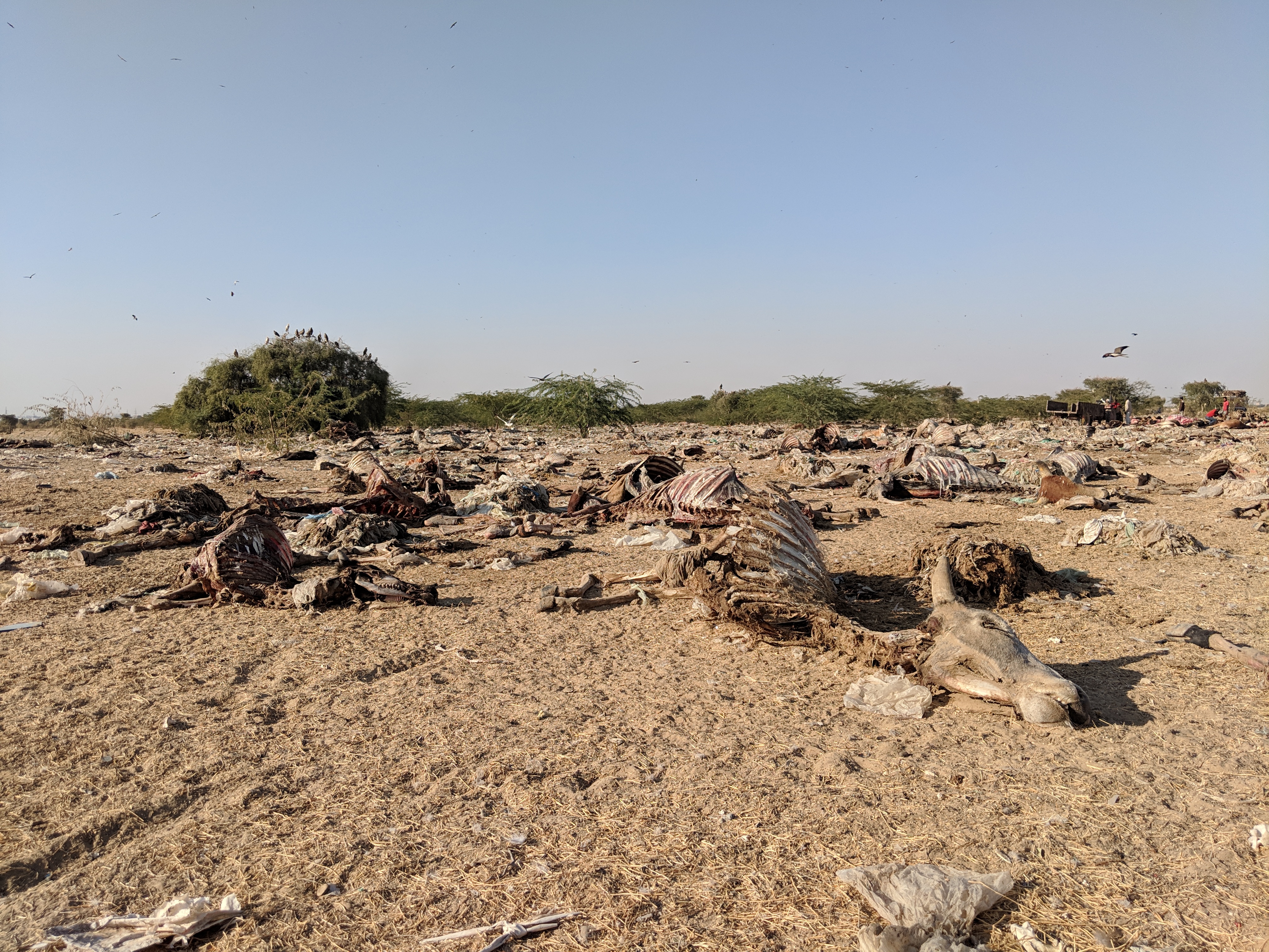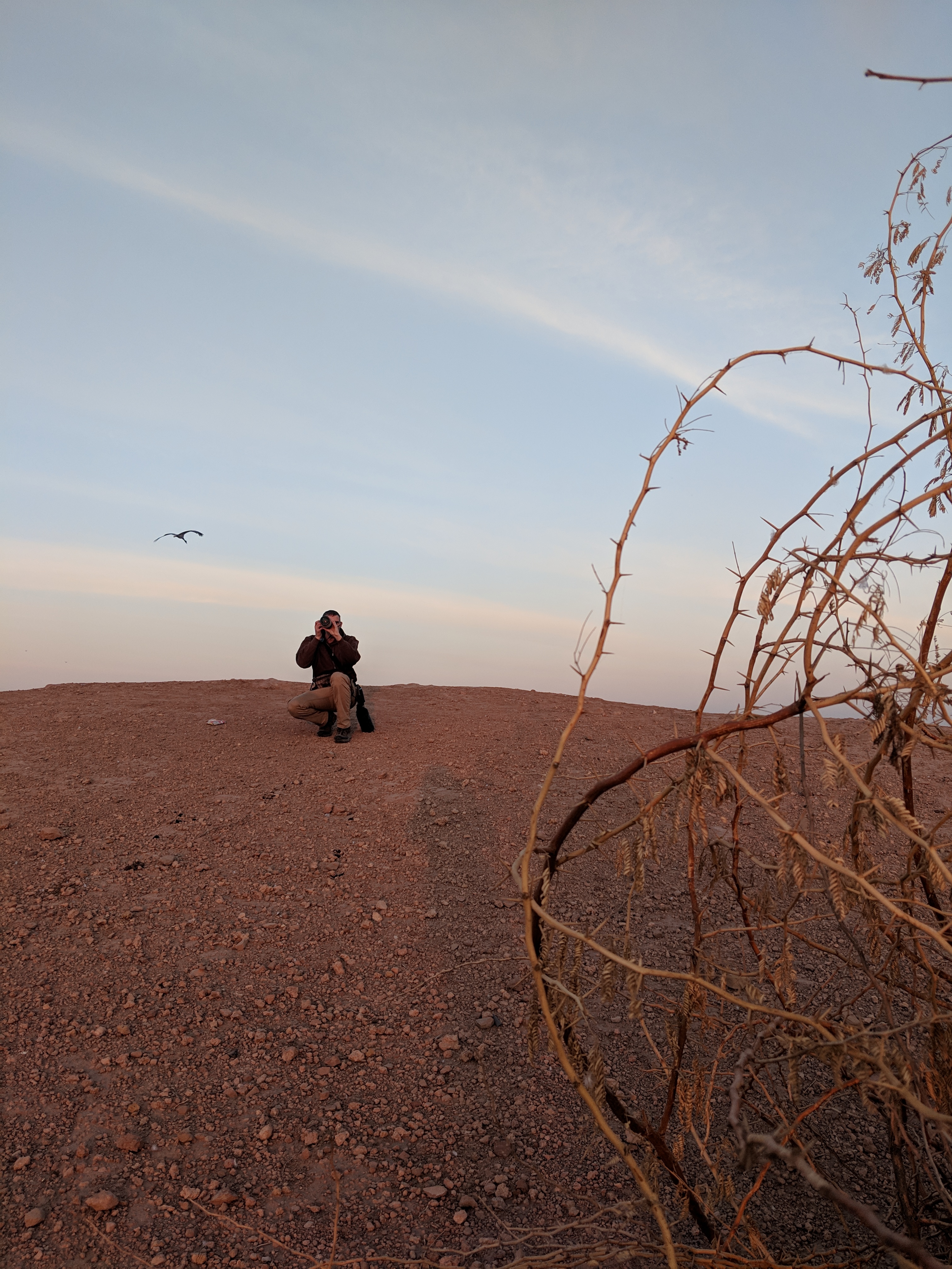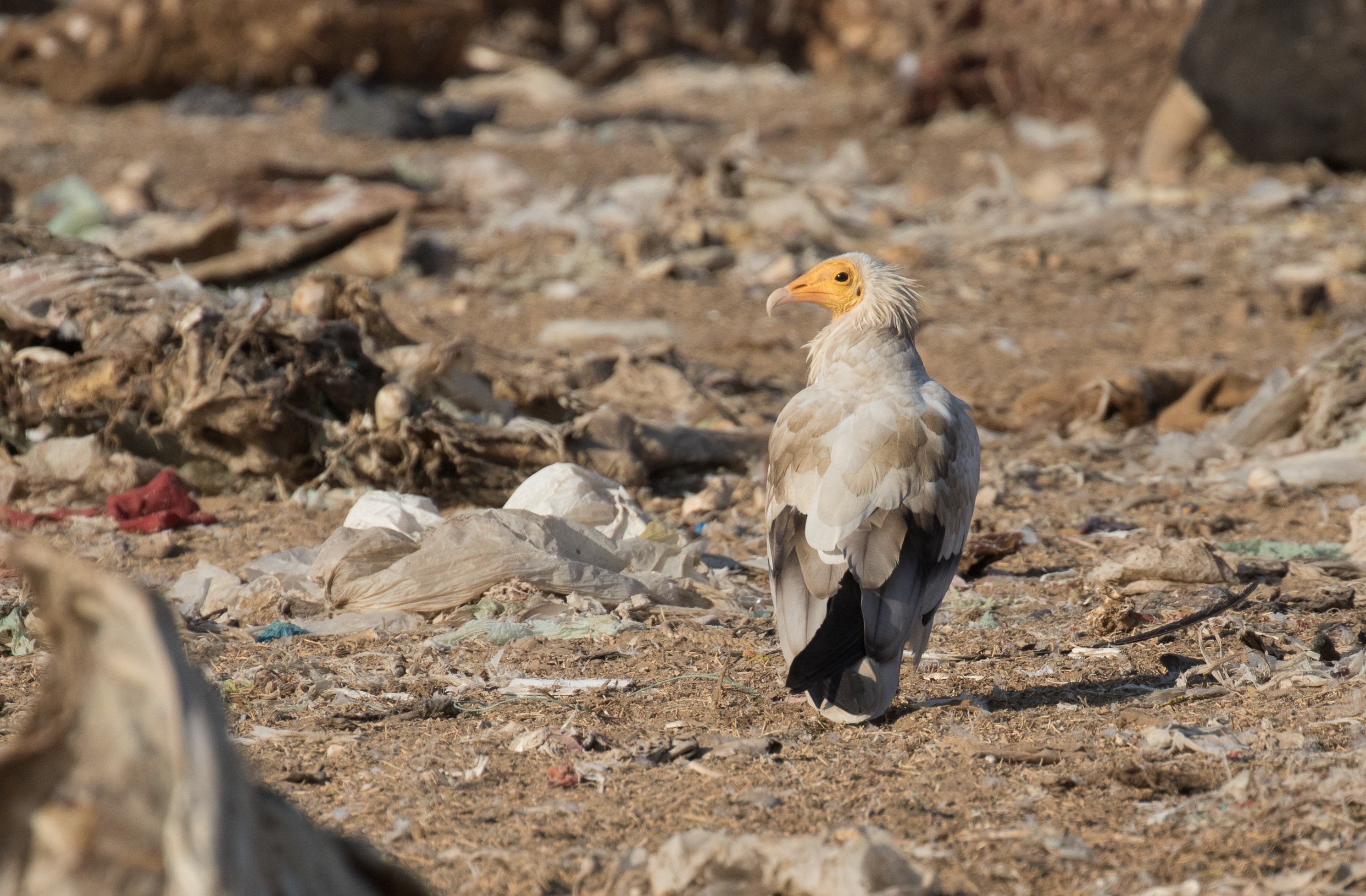 We finished up our day at the carcass dump which smelled just as bad as you would imagine rotting flesh in the heat of the day to smell. Luckily the stench was only potent while standing amongst the carcasses and really not bad if you were upwind. Our stop just outside of the dump where we ticked Yellow-eyed Pigeon hardly smelled at all. The carcass dump is a known raptor and vulture hang out for obvious reasons, but we came specifically for our yellow-eyed lifer pigeon and we were surprised to find that they numbered in the high hundreds if not thousands. We then wandered amongst the dump, first noting the speed and skill with which the men skinning the cows possessed, and then at the sad, primitive, and tortuous lives of the packs of dogs living in the park and the doomed fates of the puppies born into such squalor. The dogs we passed really had resorted back to digging dens and hanging in packs. One may have to strain to admire the landscape but it was very enjoyable to see Egyptian, Griffon and Cinereous Vultures up close as they came to feed on the rotting flesh. We were sure to keep an eye out for the pale-tipped bill subspecies, N.p. ginginianus of Egyptian Vulture. Along with all the vultures, a number of other raptors were present including dozens of Steppe Eagles and a few Shrika, Eastern Imperial Eagles, and Laggar Falcons.