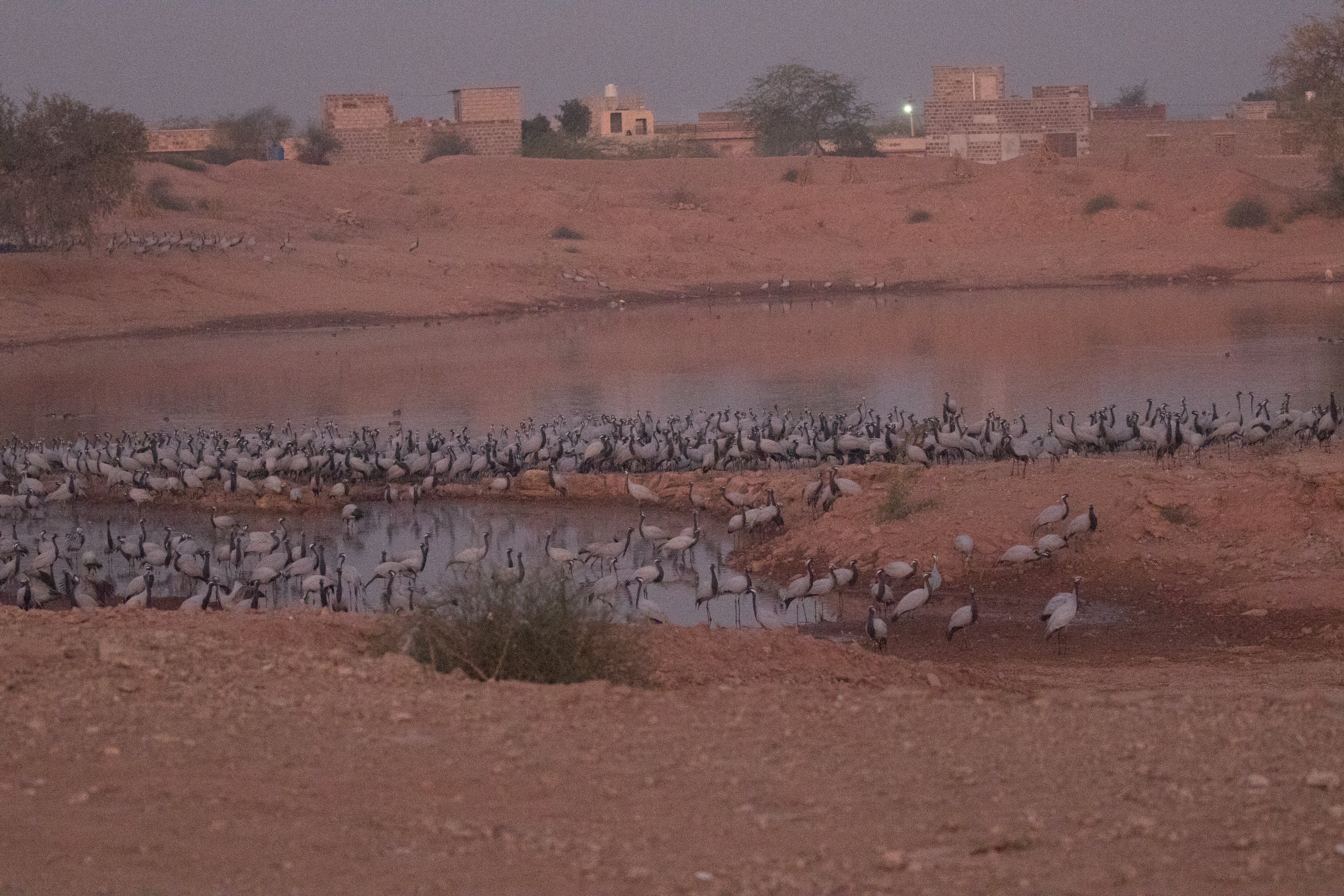 The following morning we arrived at Khichan before sunrise to watch the world wake up around the Demoiselle Cranes that had roosted on the lake the night prior. We estimated at least two thousand cranes were inhabiting the small lake so you can imagine how loud they were and how fun a spectacle such as this can be for birders. In hindsight, this location is not completely necessary to visit as we saw Demoiselle Cranes at several other locations, but it was pretty cool. We hung around for a little while, snagged a few decent photos and then hit the road, getting ever closer to our number one target of the trip, Great Indian Bustard.